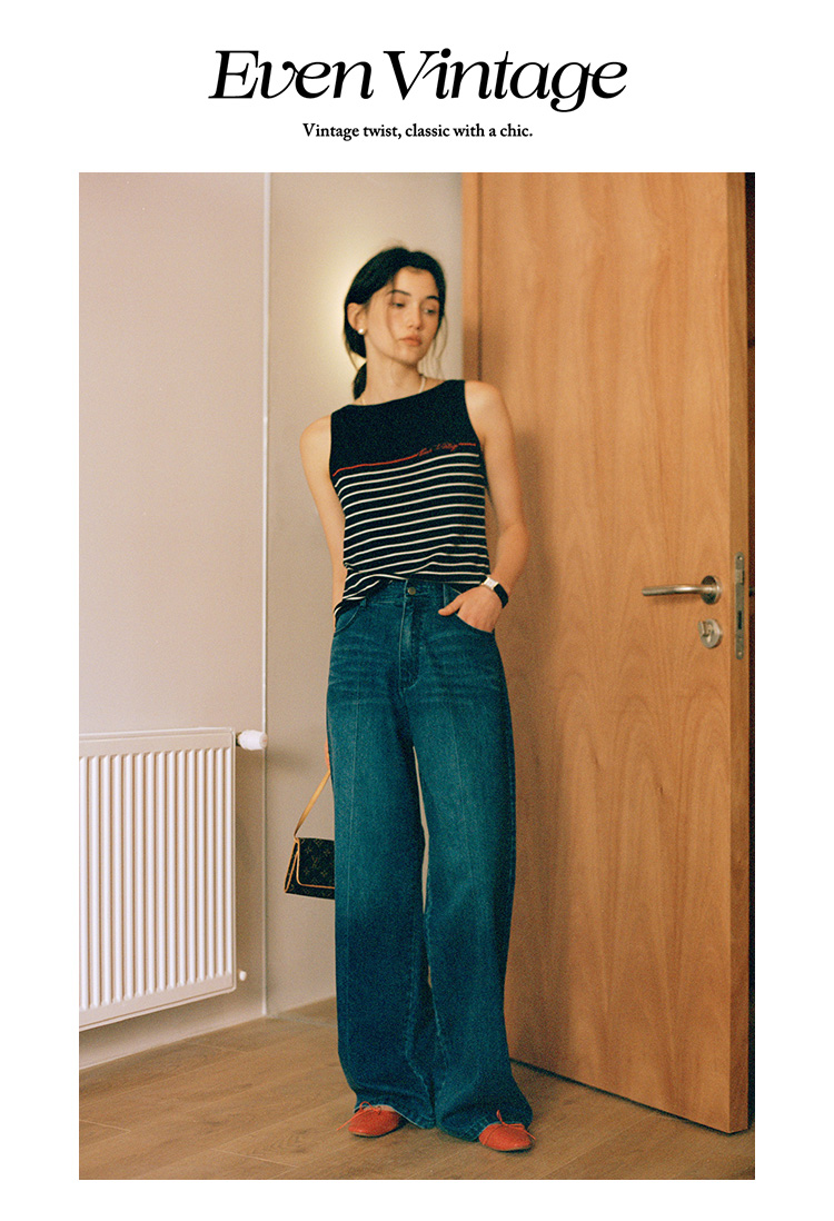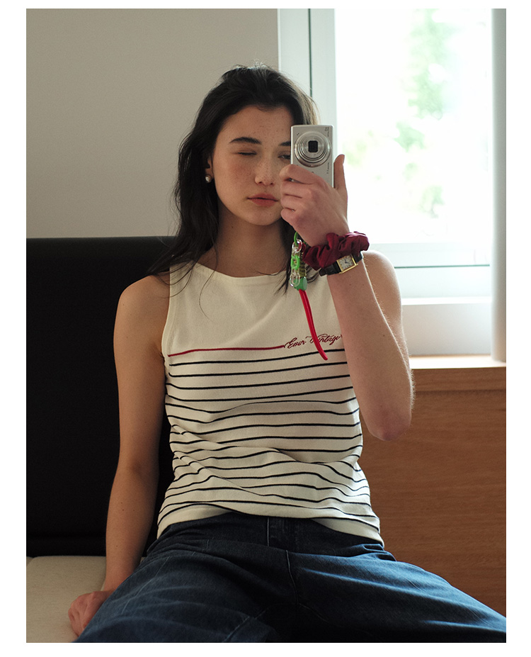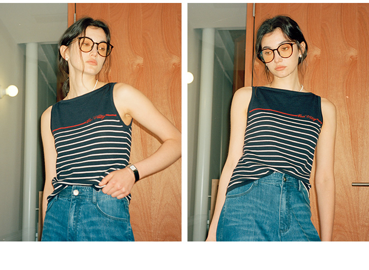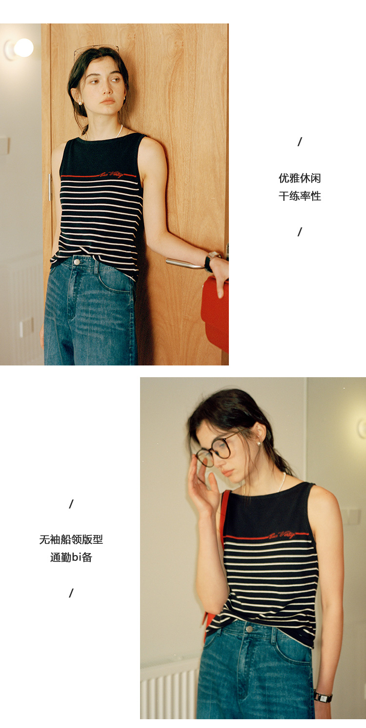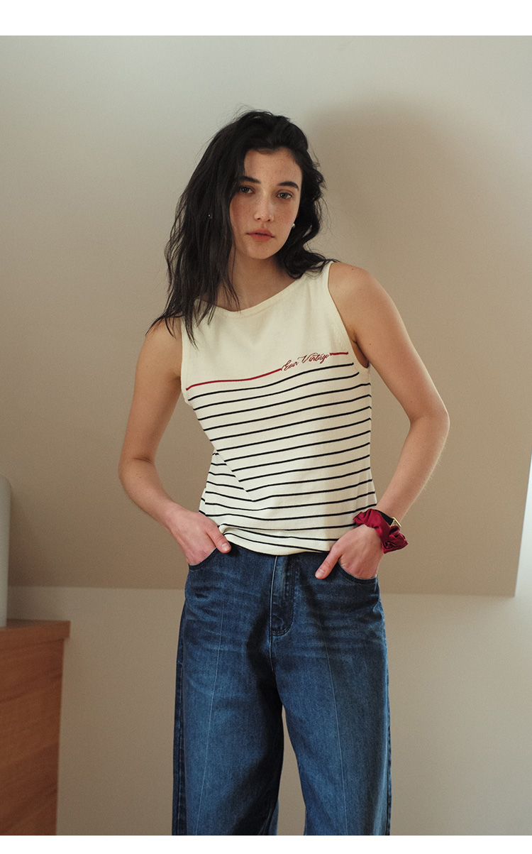 Even Vintage | 简约百搭 复古条纹宽松经典气质纯棉背心上衣女夏