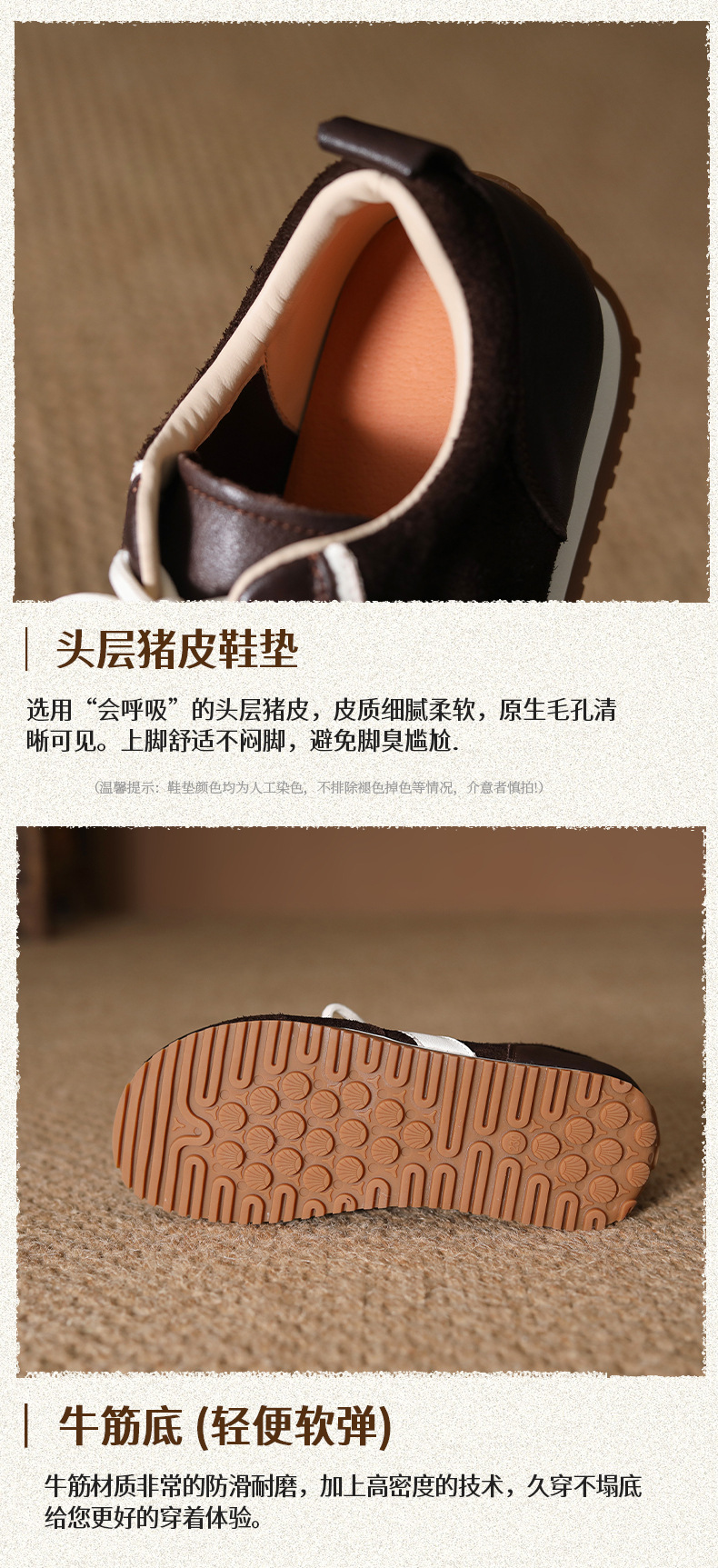 FR 85095韩版复古真皮德训鞋拼色芭蕾搭扣阿甘鞋 商品图4