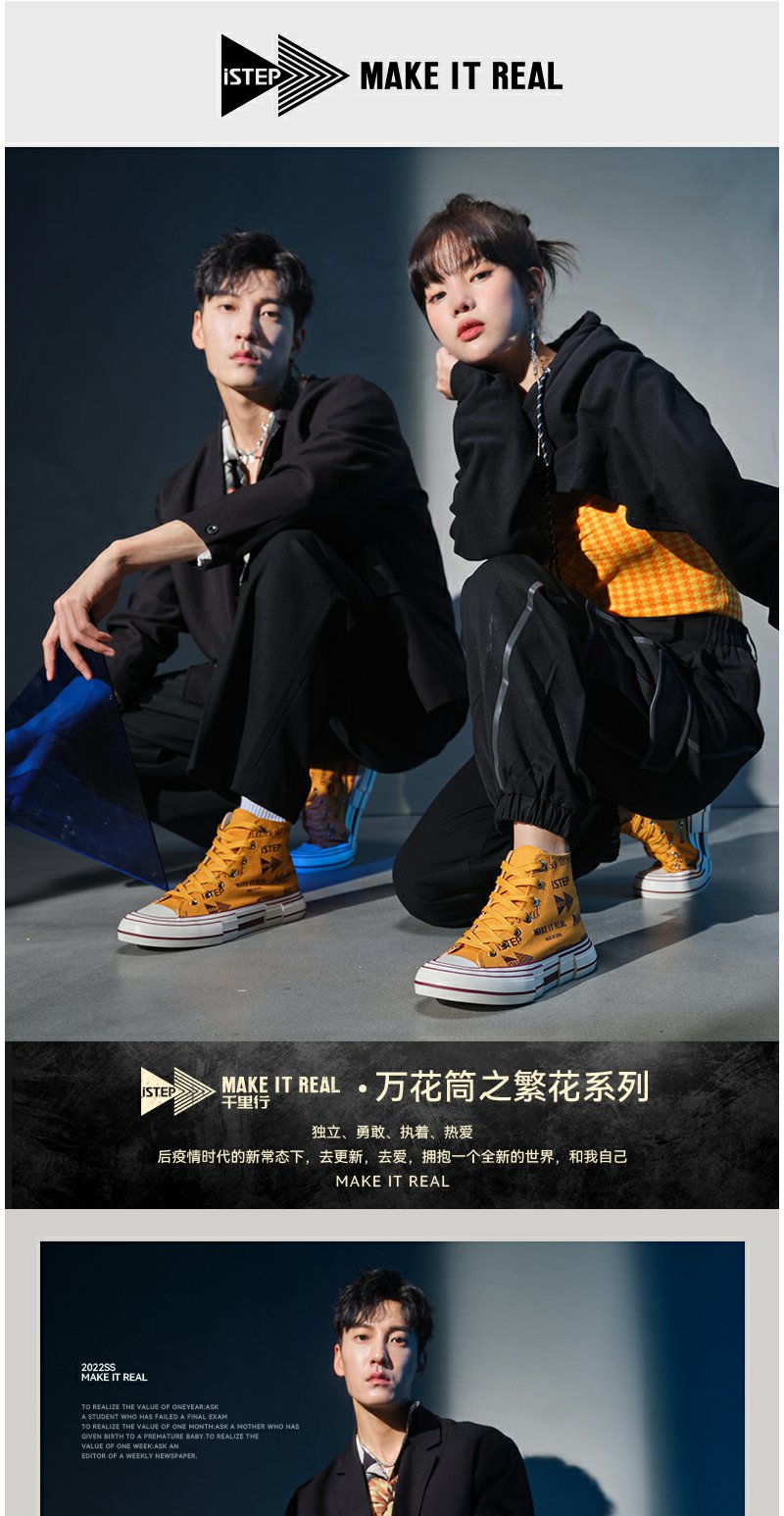 iSTEP原创解构高低帮帆布鞋涂鸦休闲潮牌男女情侣运动鞋好物
