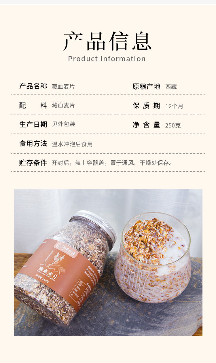 藏血麦片 优质原粮 含有丰富膳食纤维 低GI食品 做法多样 适合各种人群