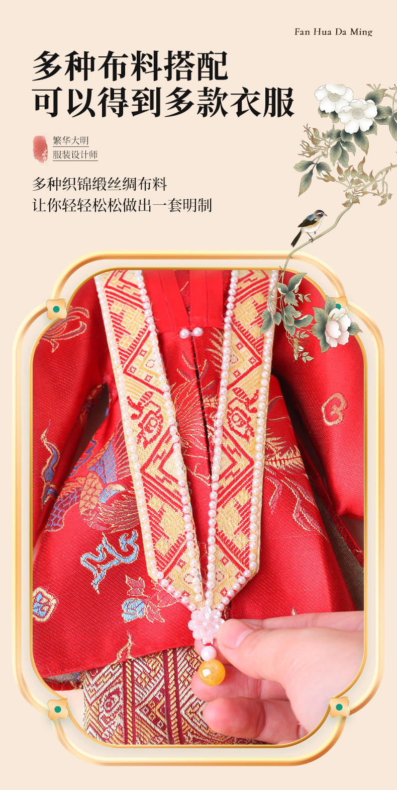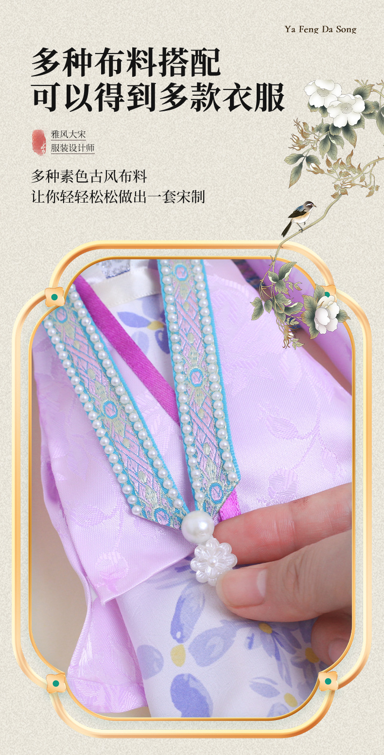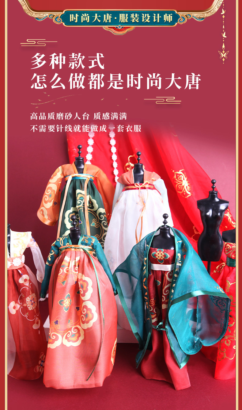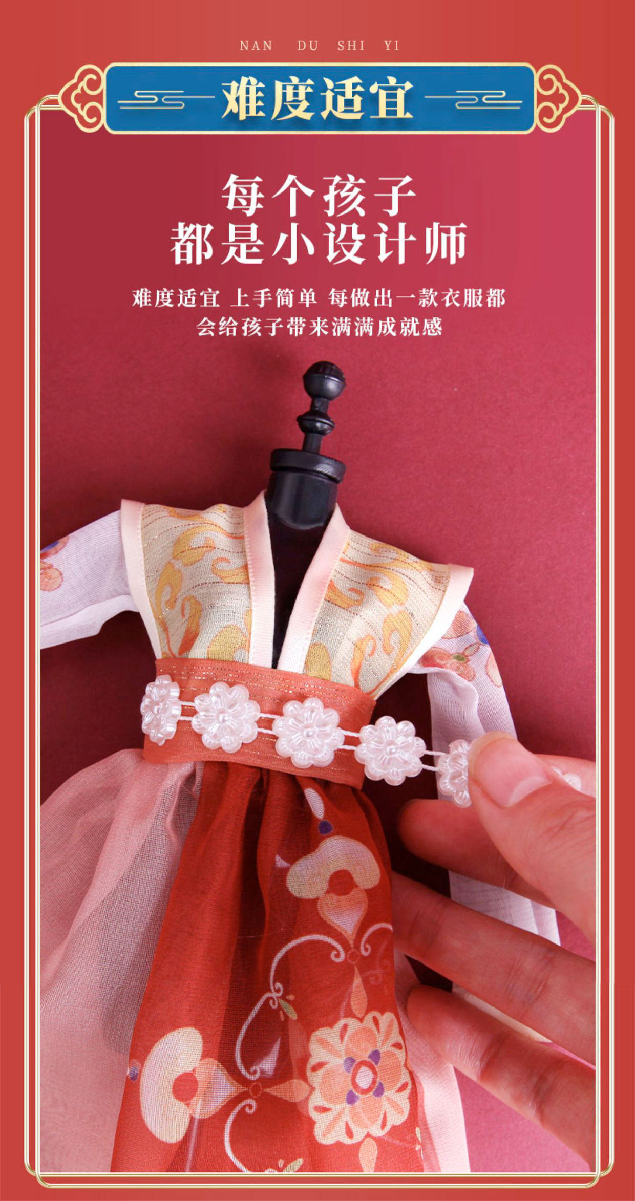 儿童国风春节 唐宋明代服装设计DIY手工制作套装 玩具先生儿童人台面料工具材料包