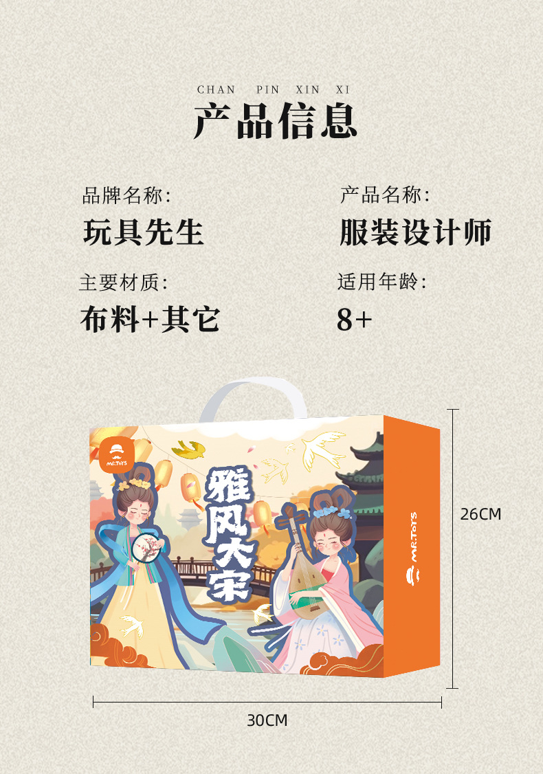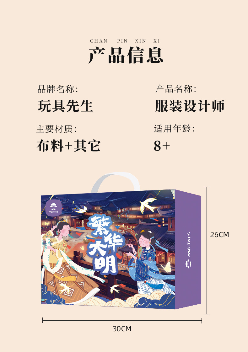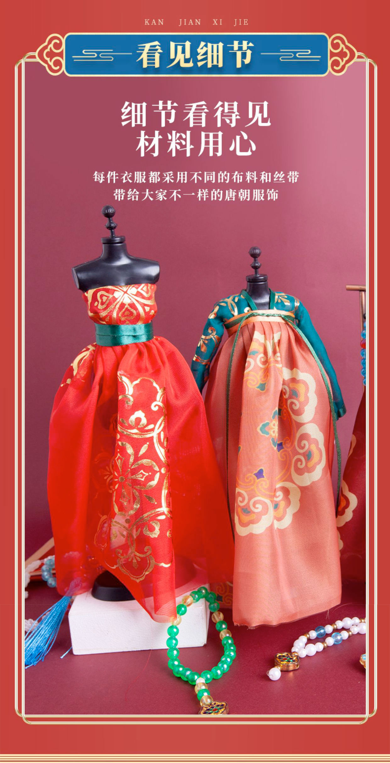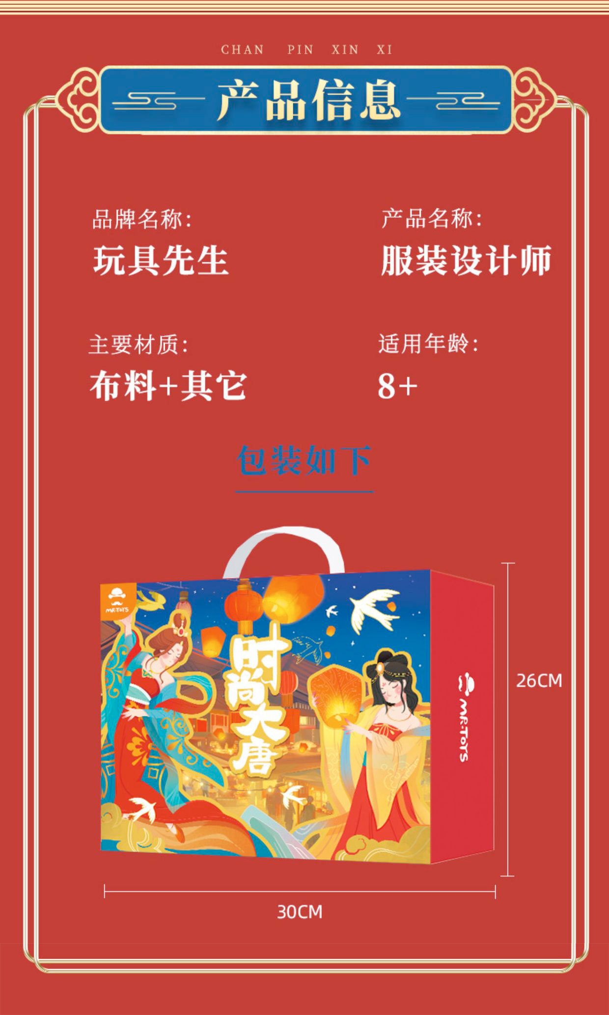 儿童国风春节 唐宋明代服装设计DIY手工制作套装 玩具先生儿童人台面料工具材料包