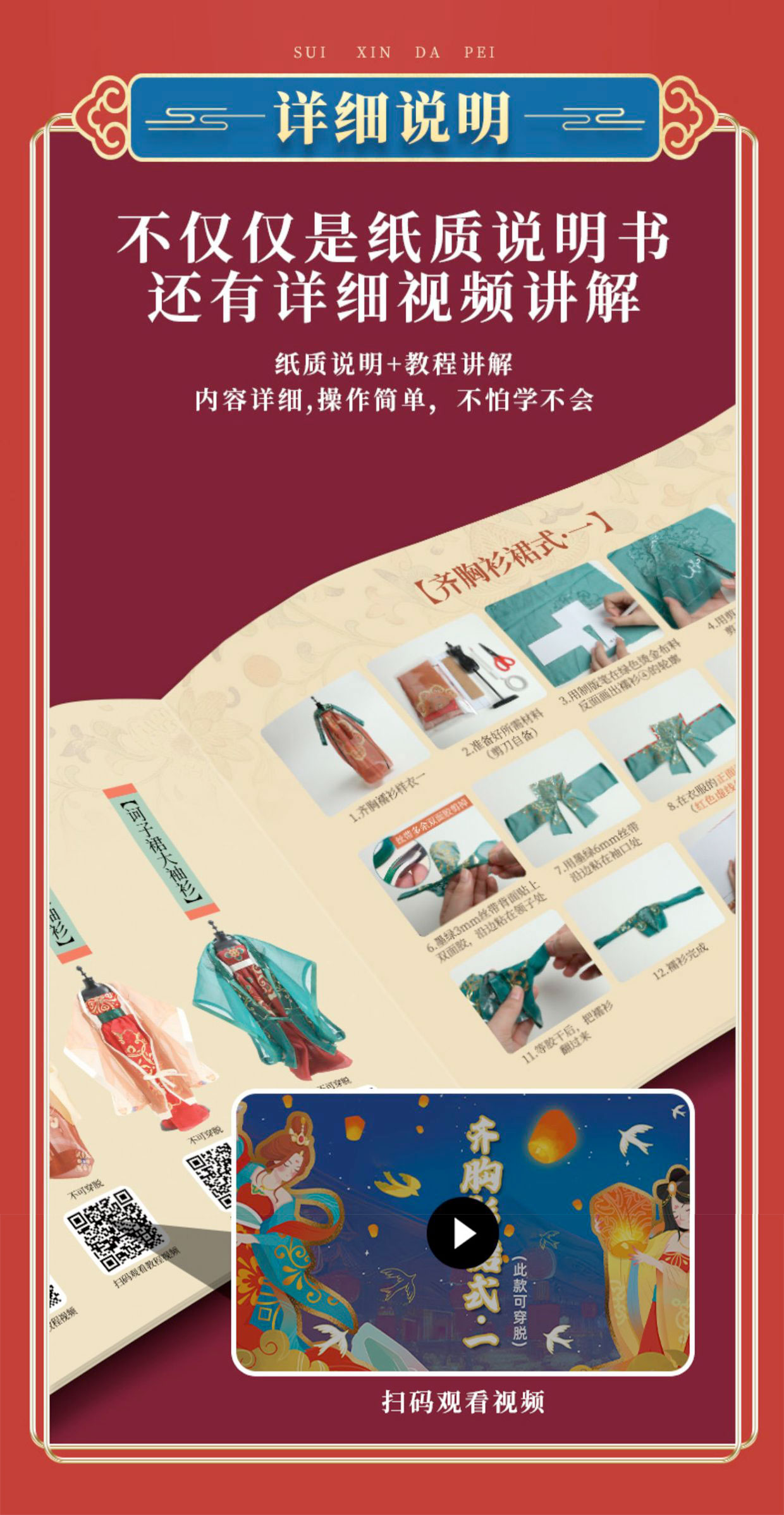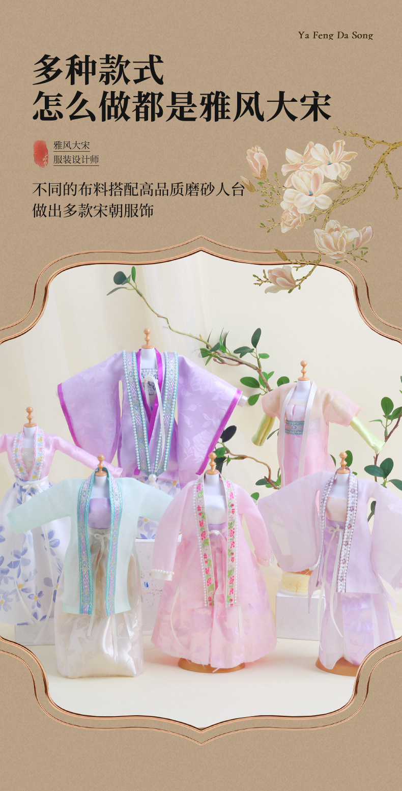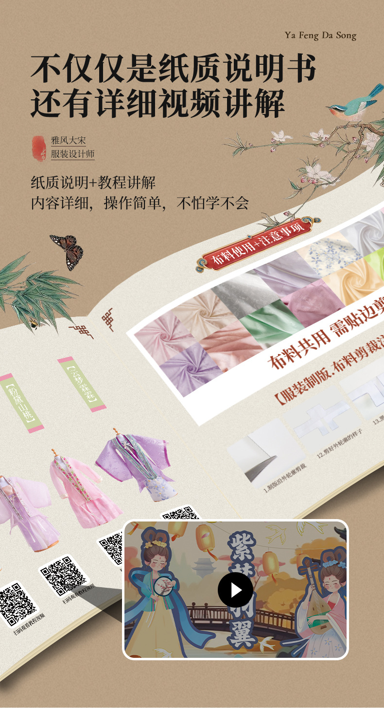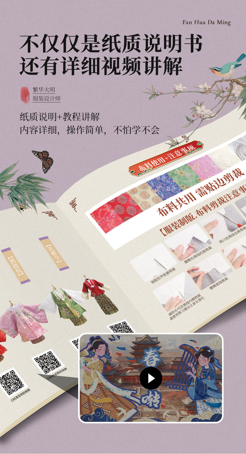 儿童国风春节 唐宋明代服装设计DIY手工制作套装 玩具先生儿童人台面料工具材料包