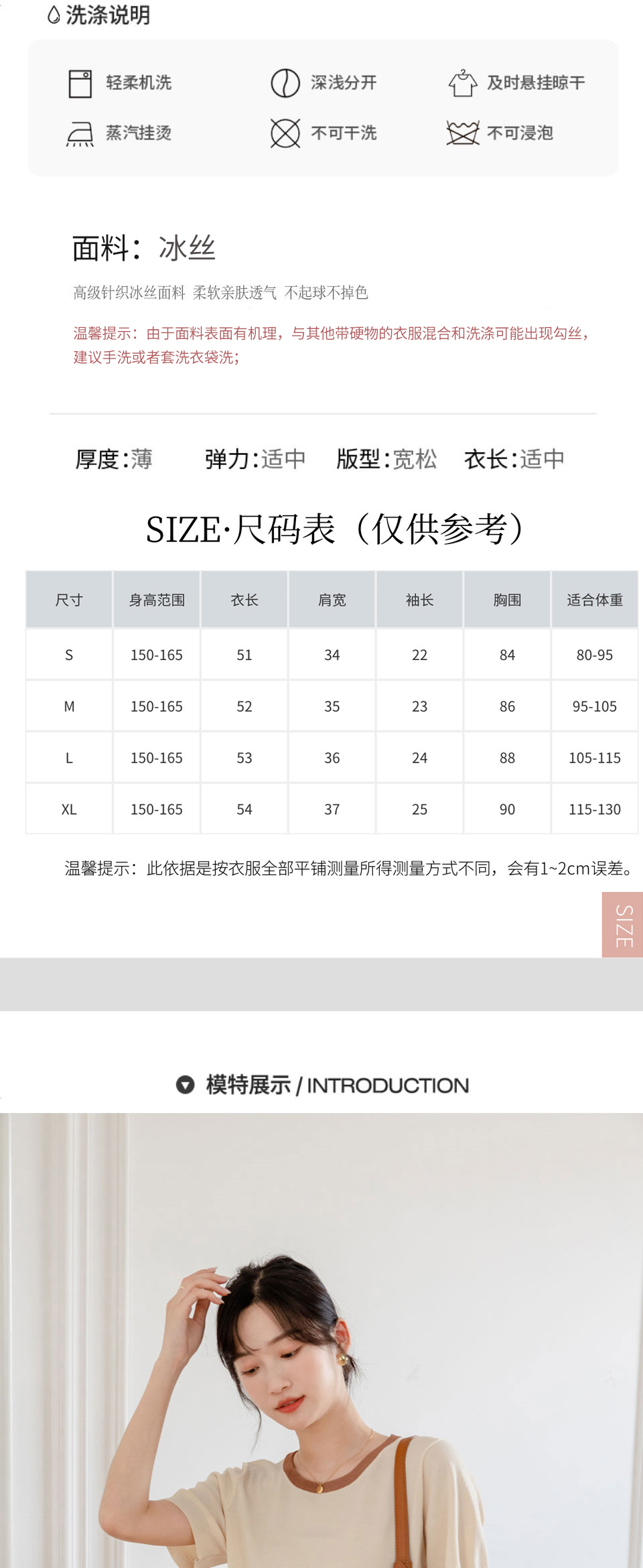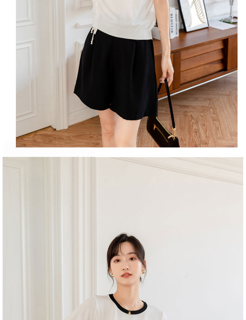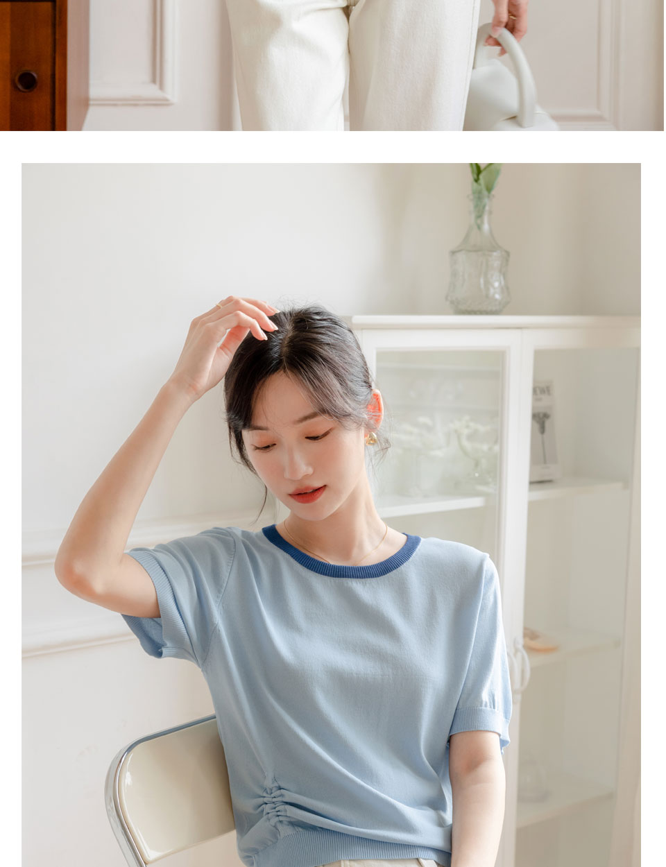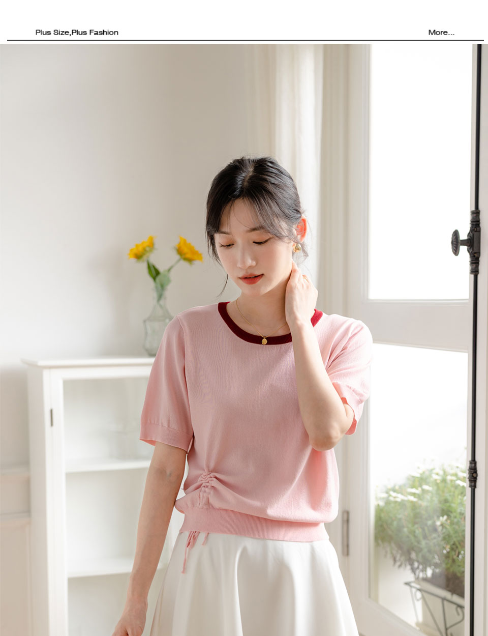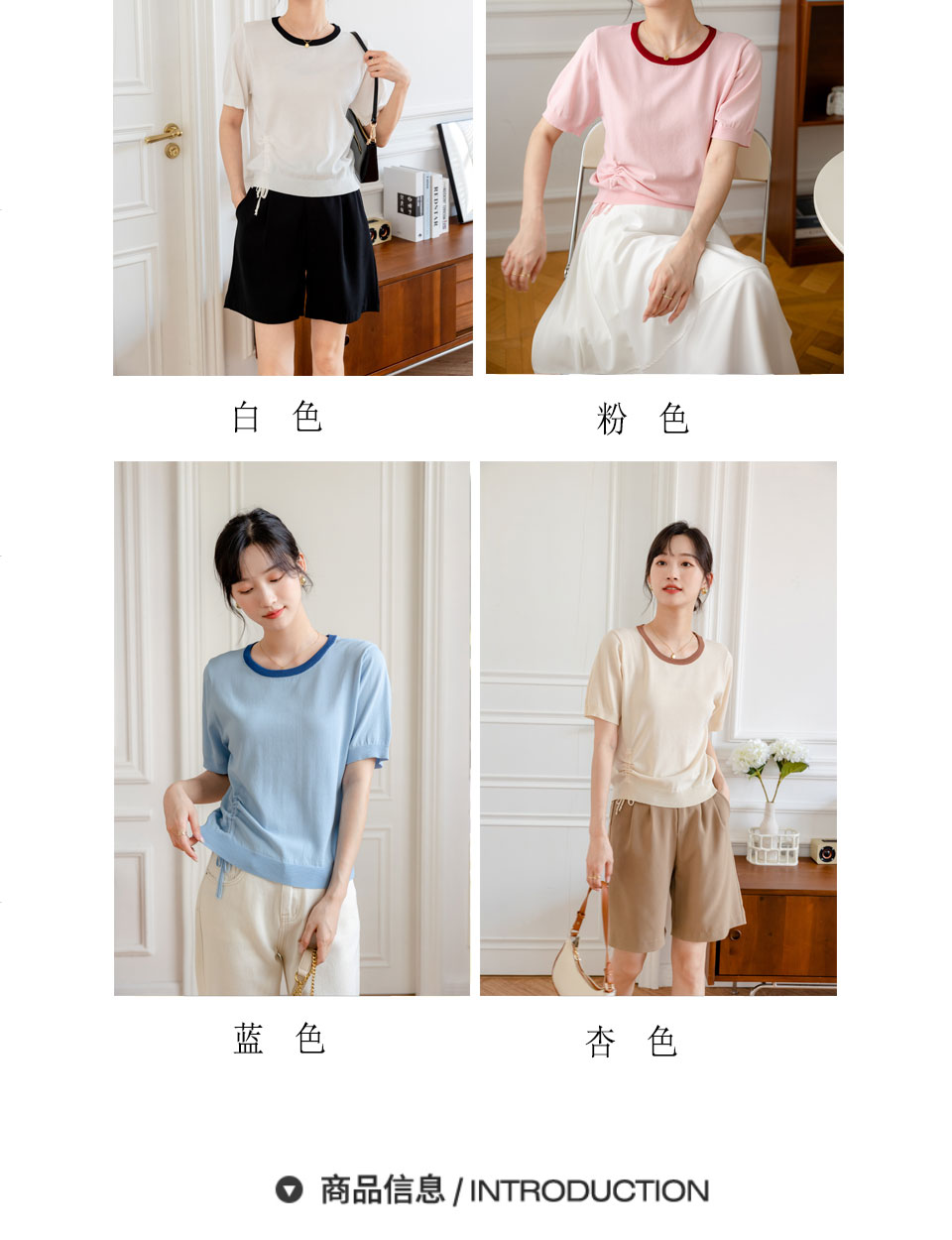 【两件立减19元】夏季针织衫薄款女冰丝上衣圆领抽绳设计透气短袖多色
