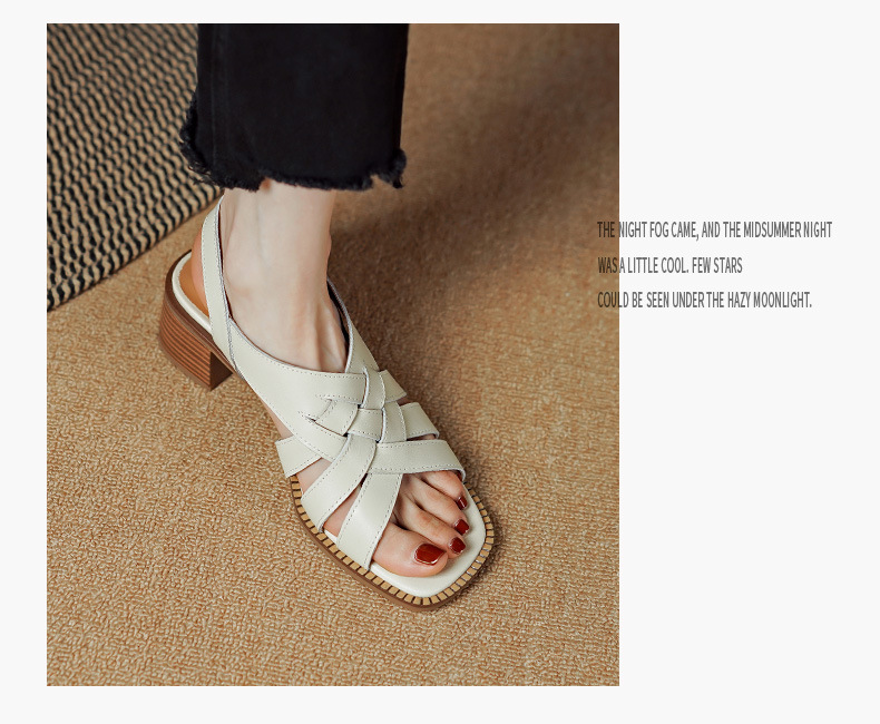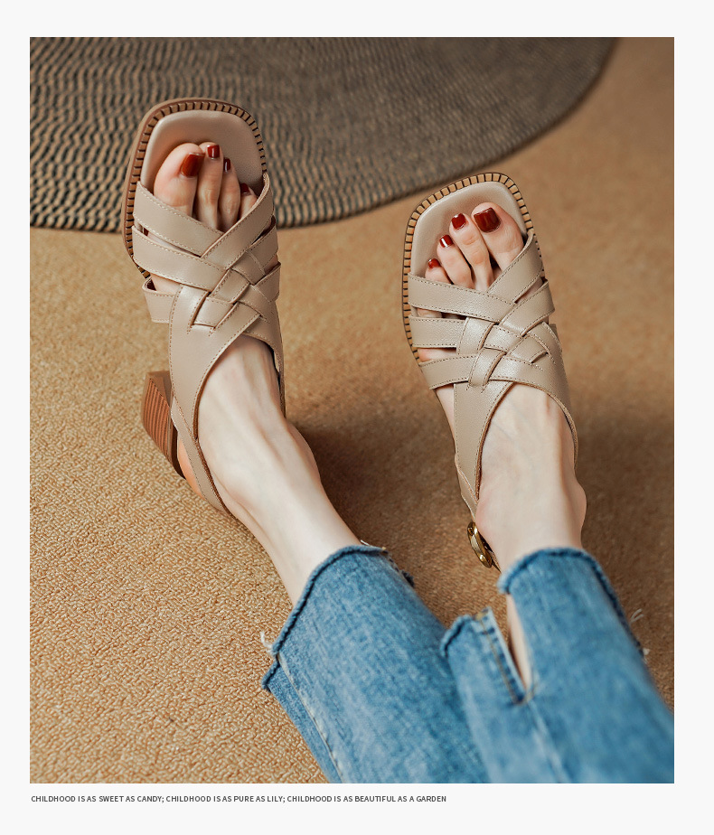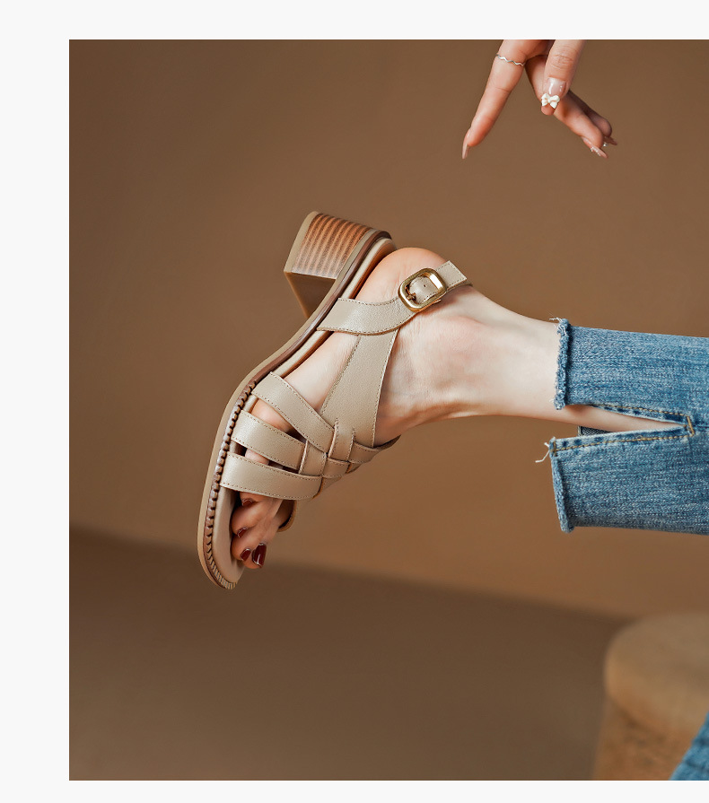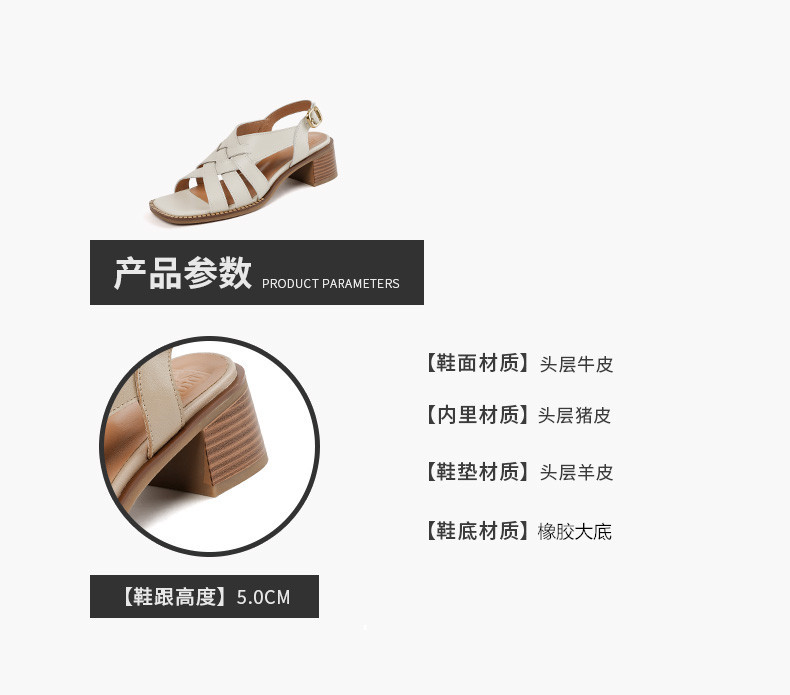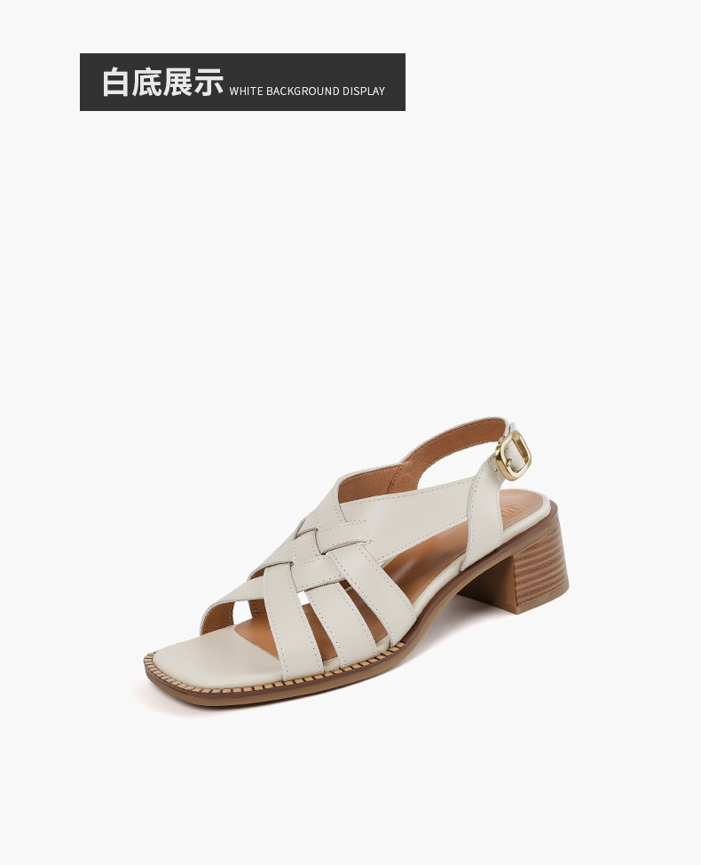 粗跟方头,露趾头罗马凉鞋YT-808-3