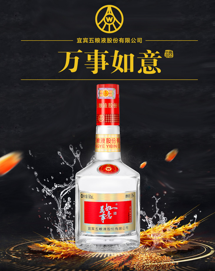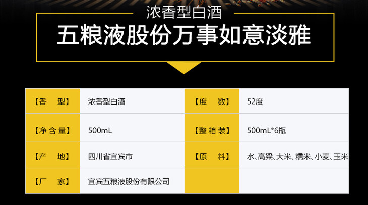 【推荐】五粮液股份 万事如意淡雅 52度 浓香型白酒 500mL*6