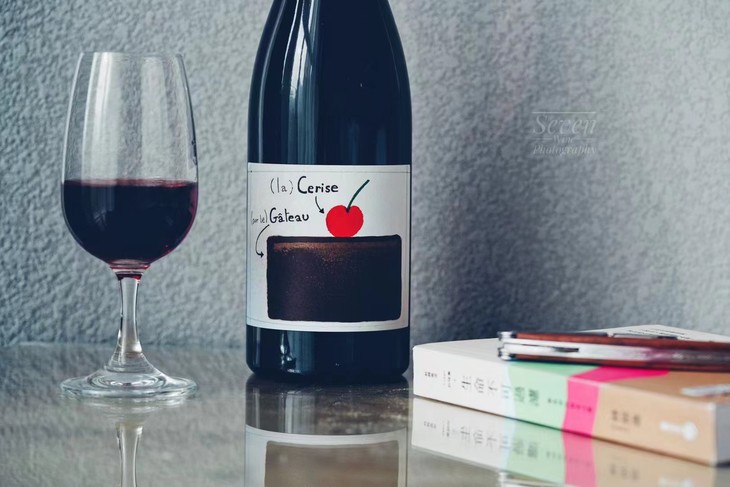 博若莱产区不止有新酒也是有很多优秀的传统干红,这款蛋糕上的樱桃就是其中之一的村庄级干红。颜色上有着明显的紫色调的偏石榴红,有着靓丽的光泽;香气闻起来和博若莱新酒很像,但多了一些深沉和复杂度,呈现出多汁的莓果类香气,特别是草莓和红树莓的香气,看到酒标,突然又感觉多一些樱桃的果香,符合出一些泡泡糖的香气,果香之后有着明显的摩卡咖啡的香气和一些奶油香。喝上一口,首先感受到的是清新跳跃的酸度,之后是悦人的果味,单宁量虽然不是很多,但很细腻。酸度、单宁、果味给予酒一定的结构,在口腔中的回味多出很多来自橡木桶的香气,增加了不少的复杂度,咽下之后,感觉真的太好喝了,而且明显比博若莱新酒多了很多内容和回味,非常推荐,对很多新酒友或者女士酒友特别友好。