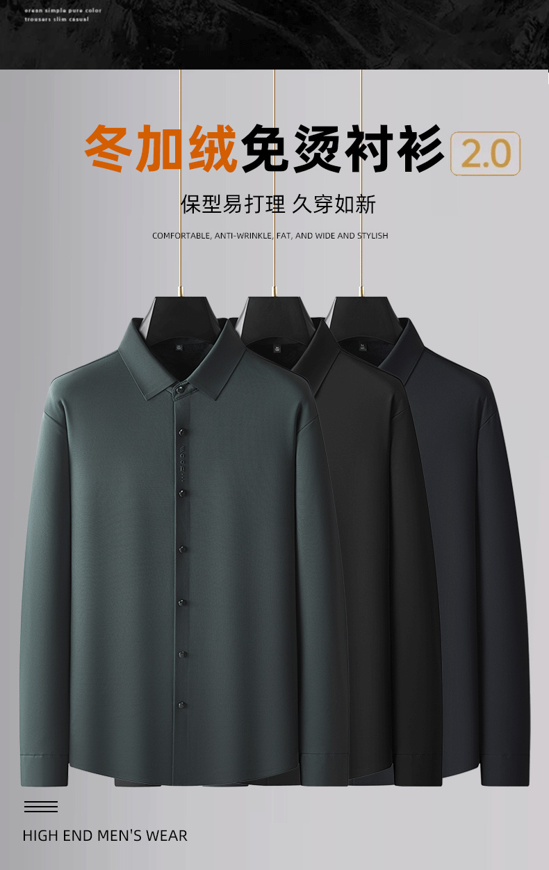 【羊毛】大依优型大码男装加绒翻领长袖衬衫休闲上衣男士300斤秋冬免烫