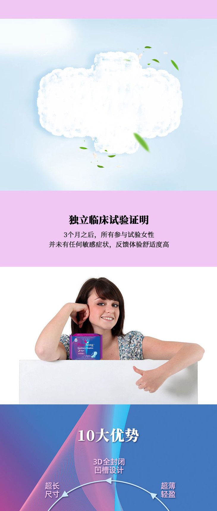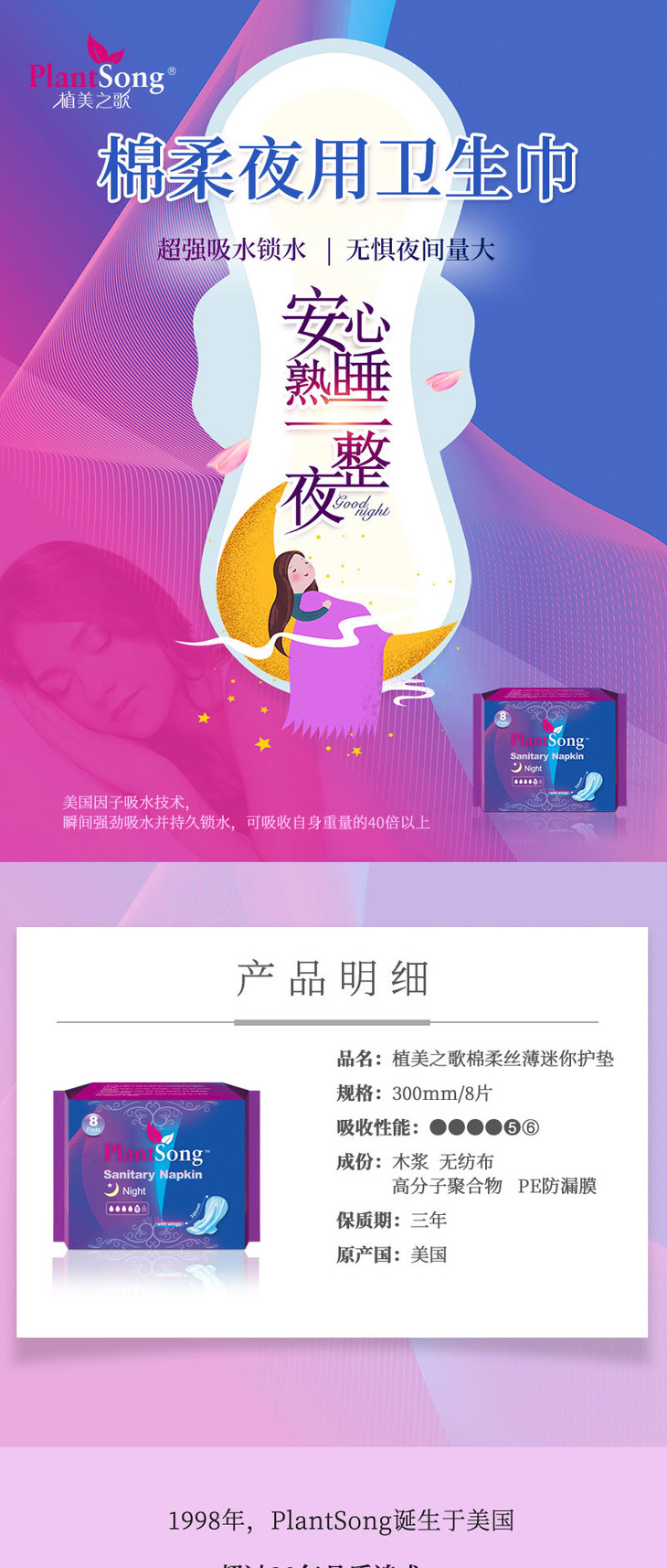 植美之歌棉柔夜用卫生巾300mm8p