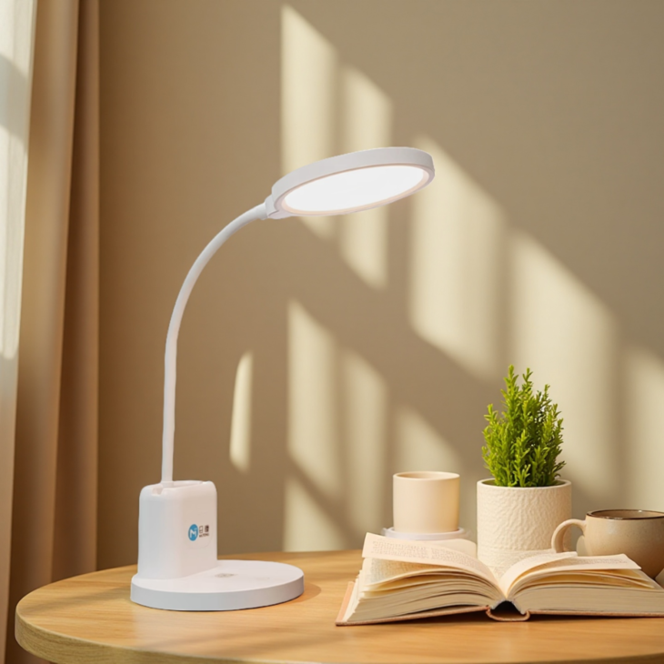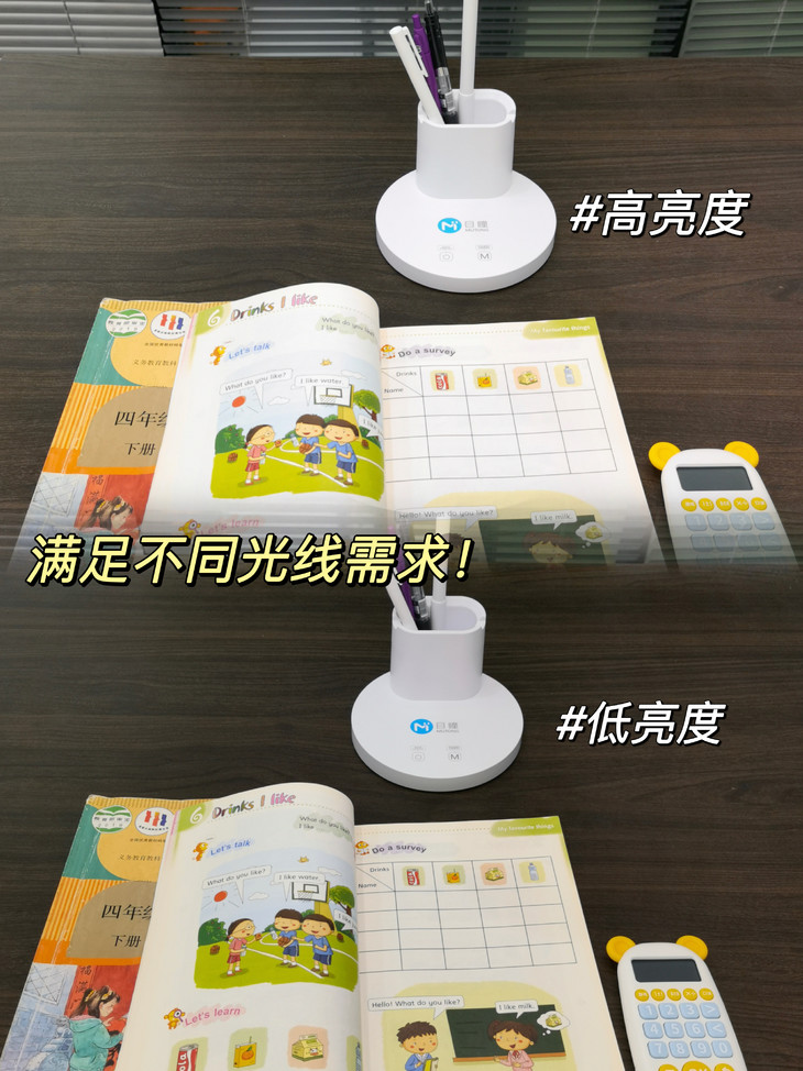 一打开,暖白的灯光铺满桌面,看东西清晰、舒适,几个小时不累。