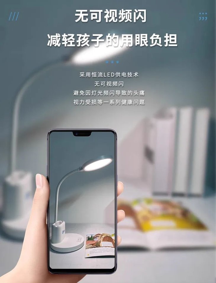 普通的灯都会有频闪,肉眼察觉不到,却暗藏伤害:会头晕疲劳、近视眼、注意力不集中。