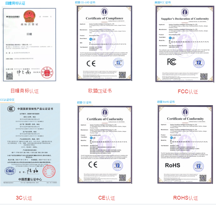 多项荣誉证书,护眼灯十大品牌,315诚信企业,国家知名品牌,全国消费者满意品牌,检测质量合格产品,大家可以放心用。