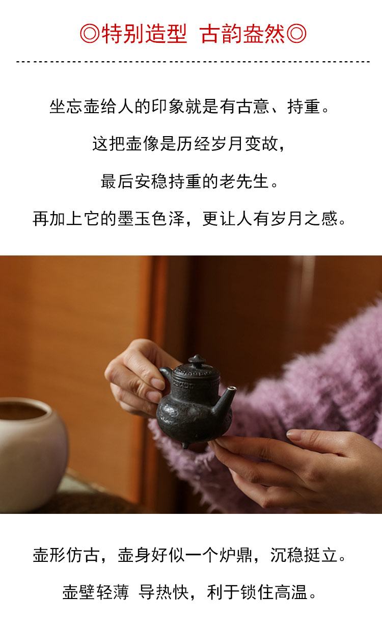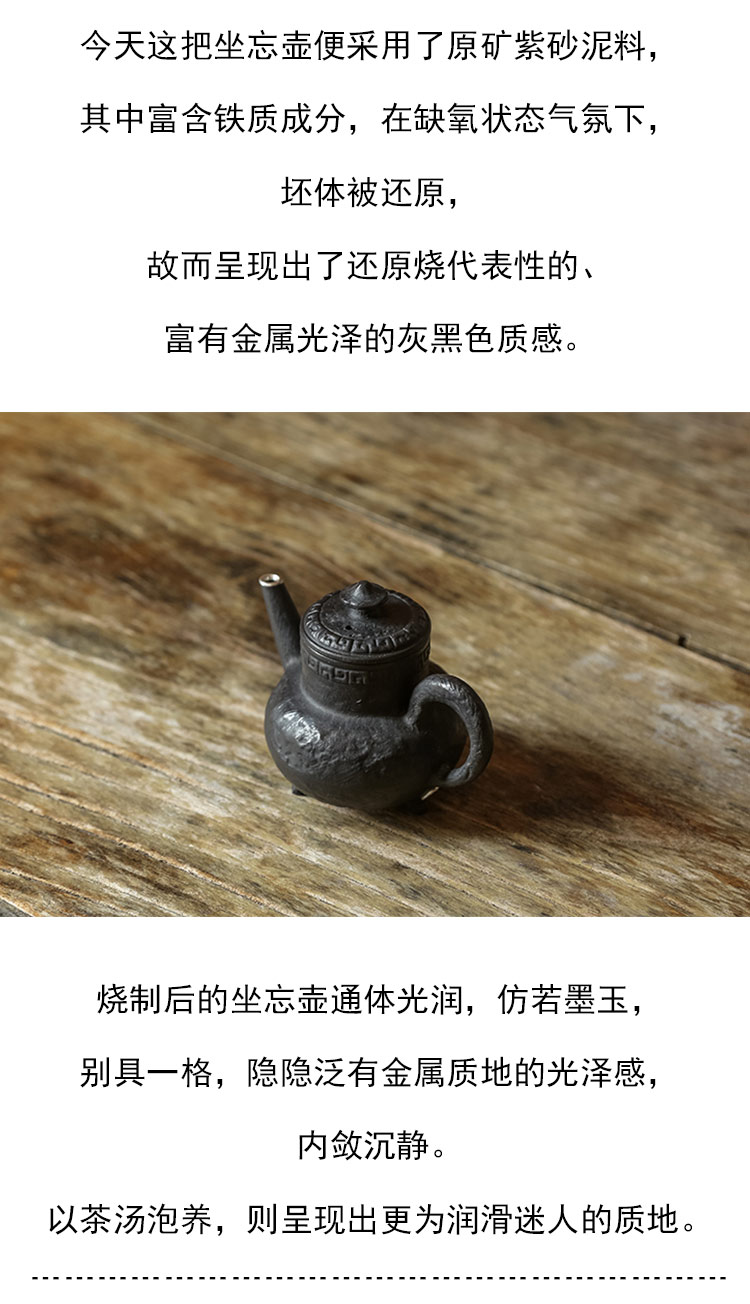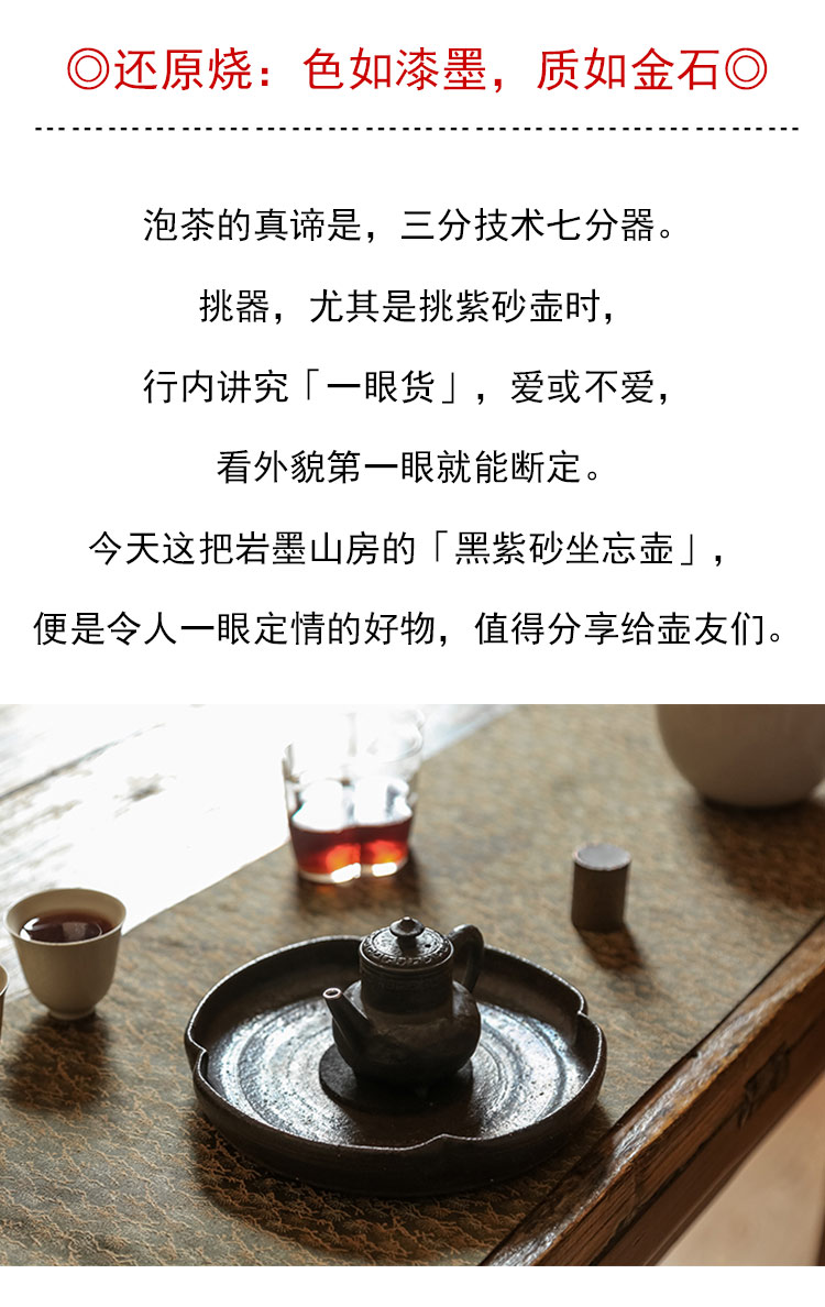 茶香记 黑紫砂坐忘壶 还原烧 色如漆墨 古韵盎然 细节到位 好用