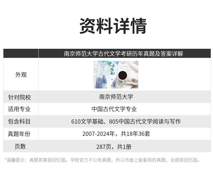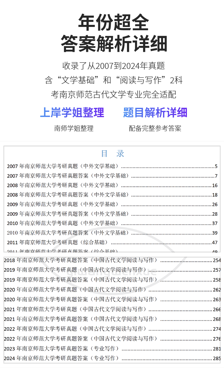 2026版南京师范大学古代文学考研真题及答案详解2007-2025年含视频课程全年答疑
