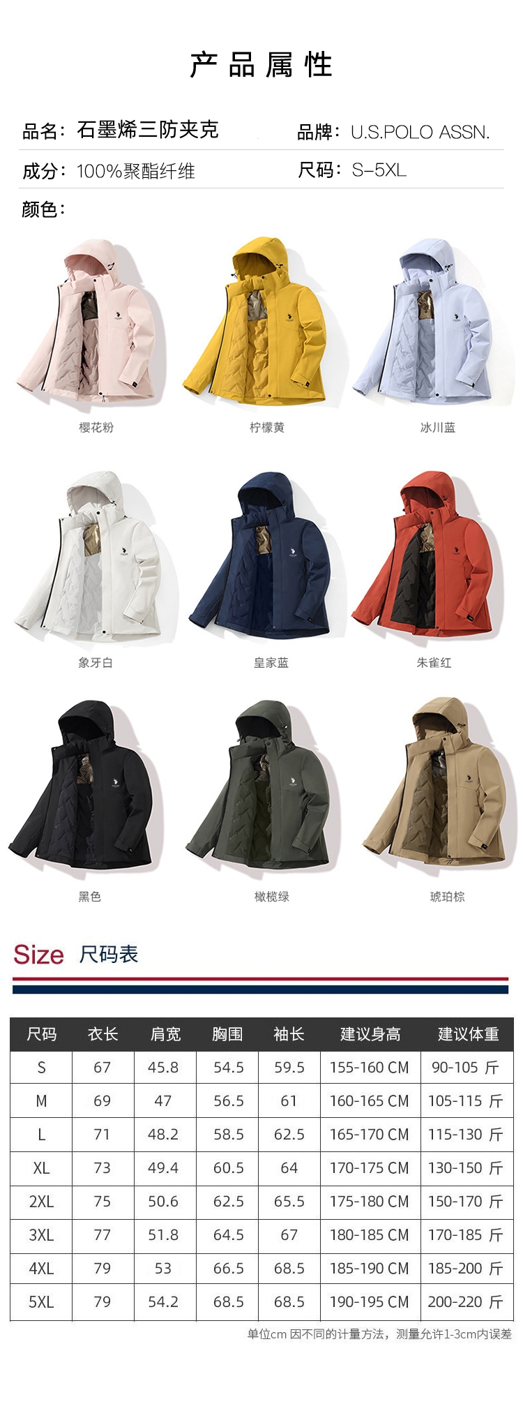 「U.S.POLO ASSN石墨烯三防夹克厚外套」,是今年的新设计款、夹棉款,现在秋季新品上市,品牌优惠活动力度很大,非常适合秋冬穿,入秋bi囤。