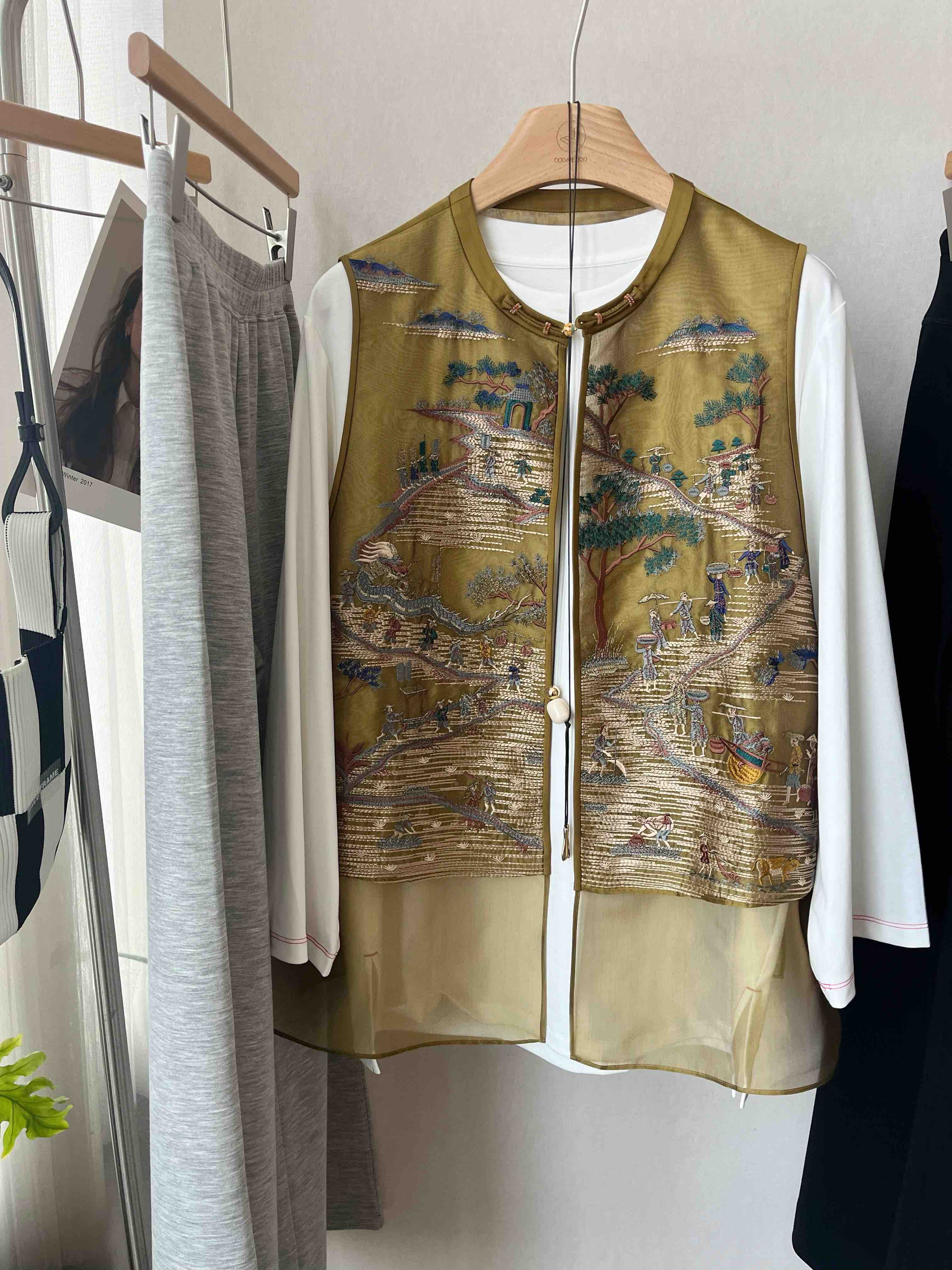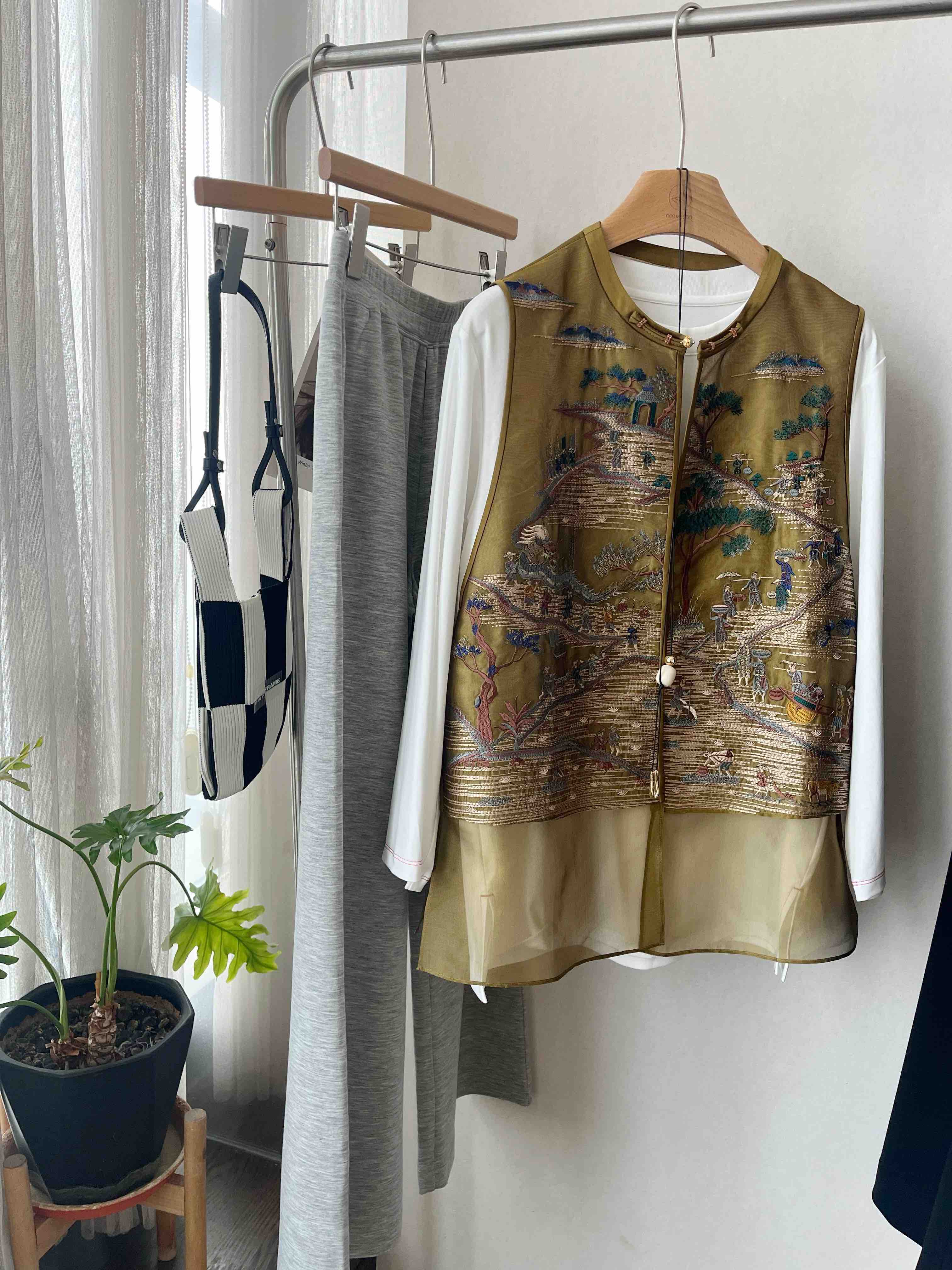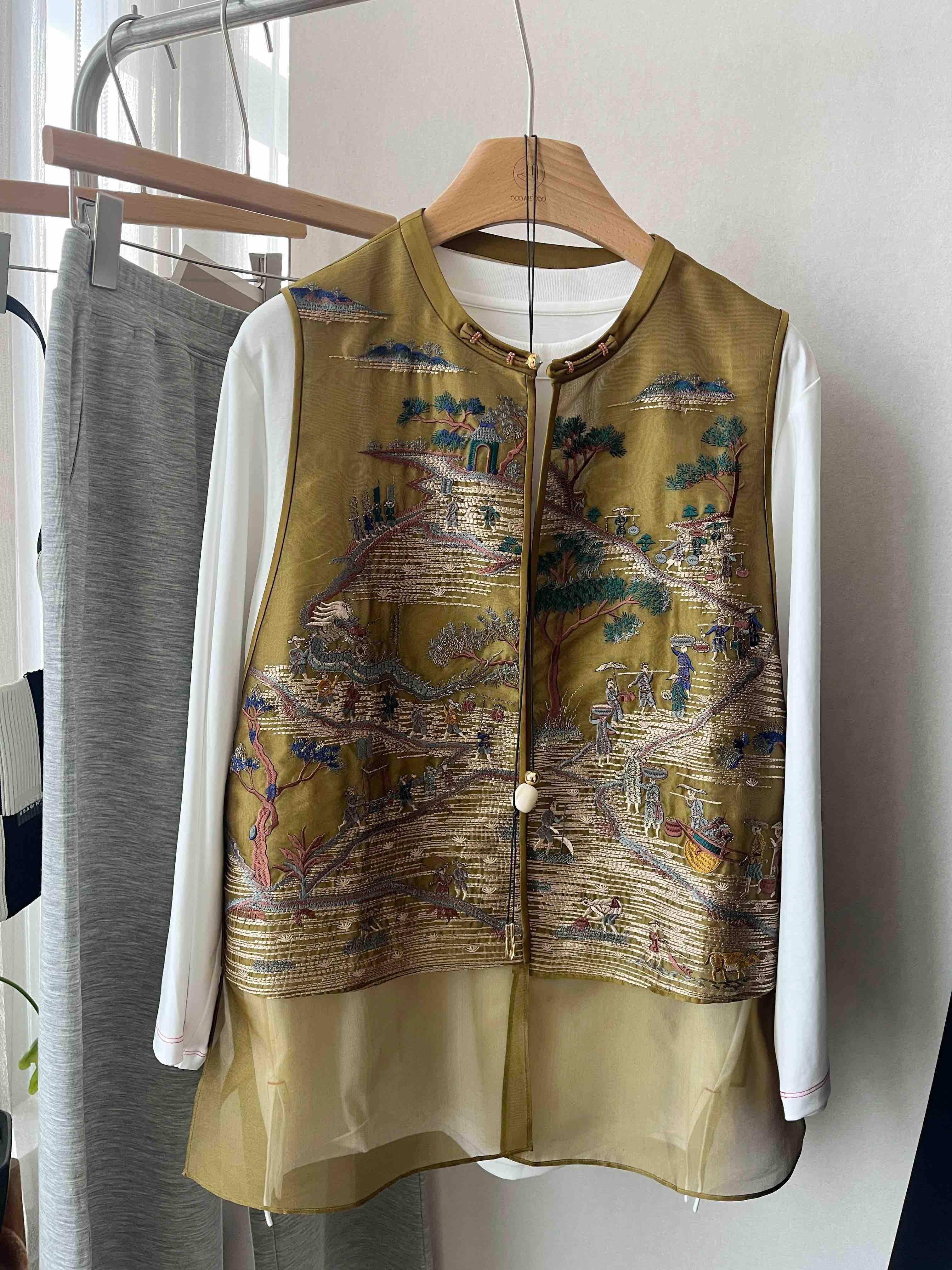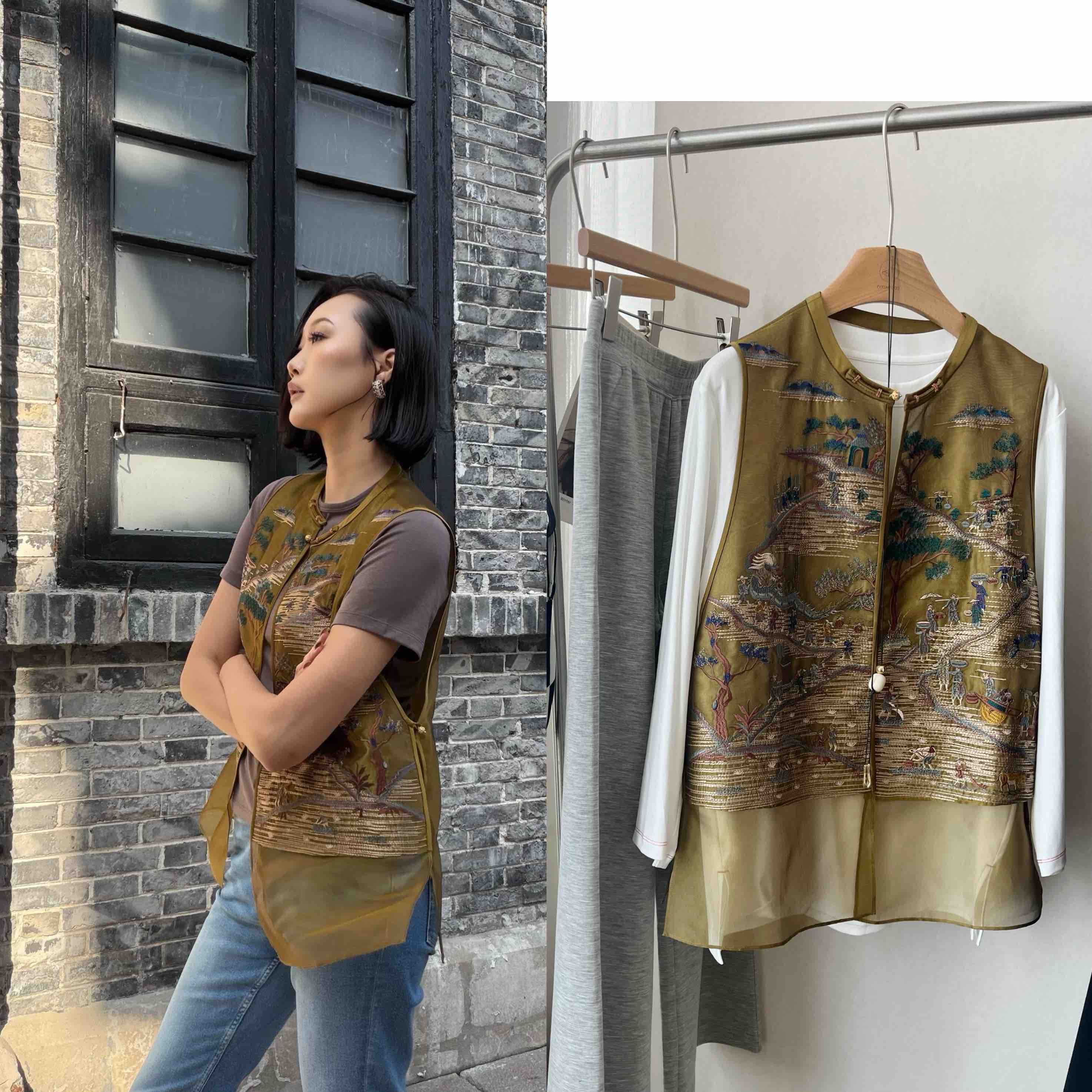 中式美学 #真丝马甲 #刺绣细节 #飘逸灵动 #百搭新中式