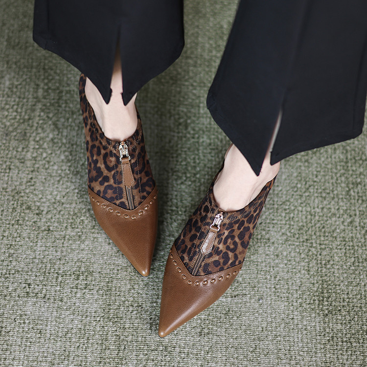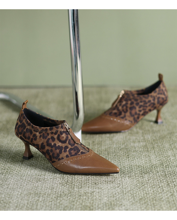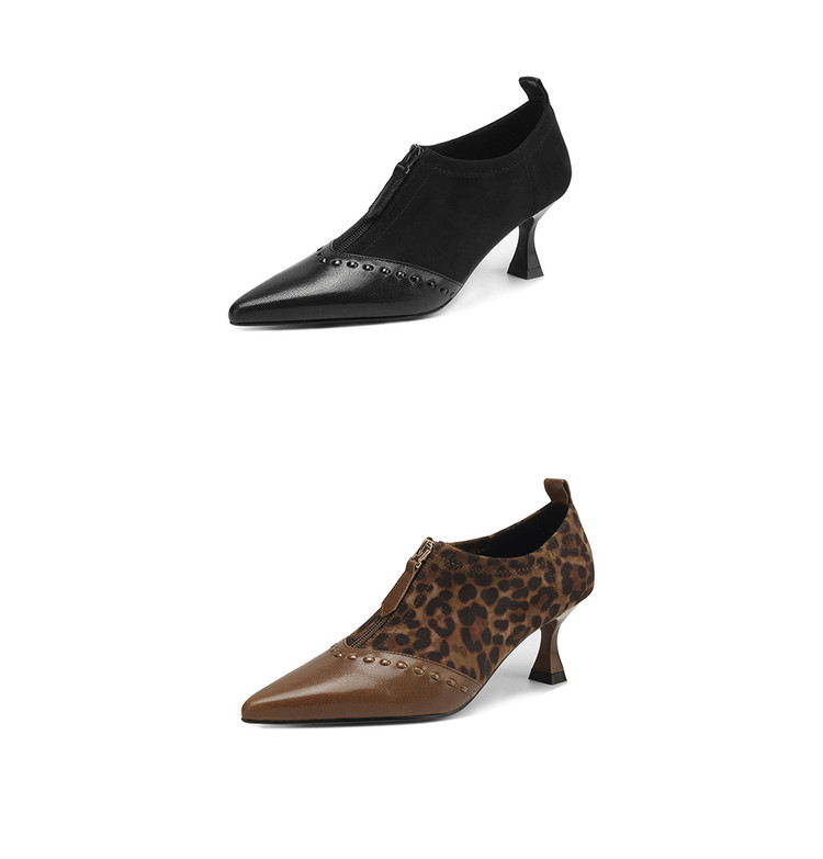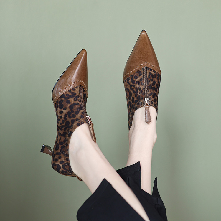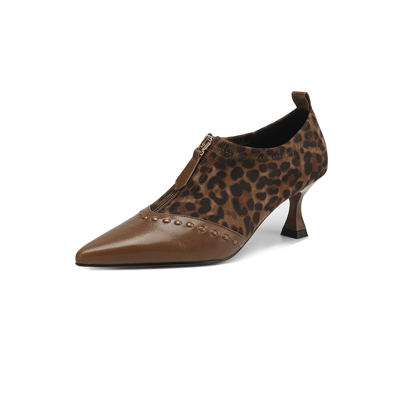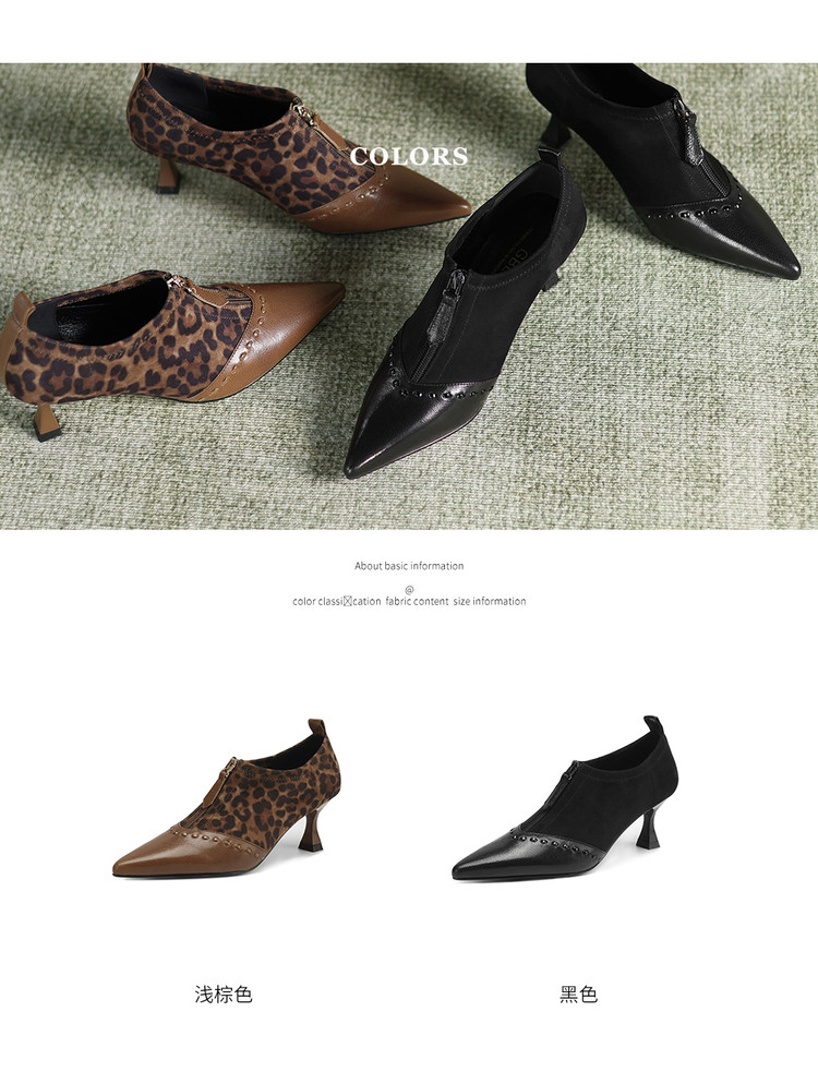 【鞋面材质】头层羊皮/豹纹进口弹力