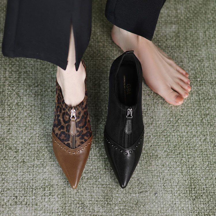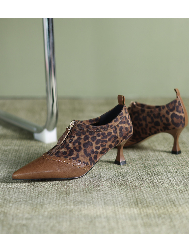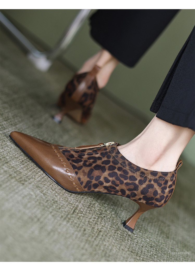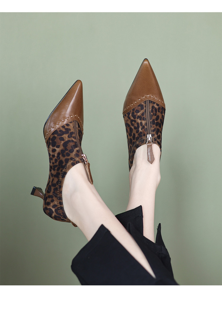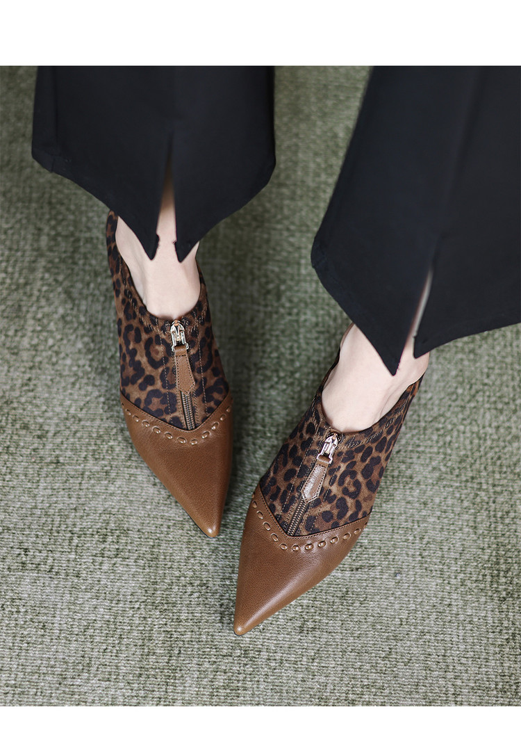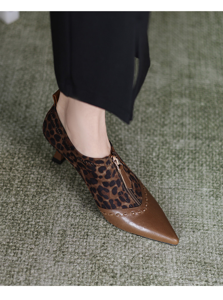 【鞋面材质】头层羊皮/豹纹进口弹力