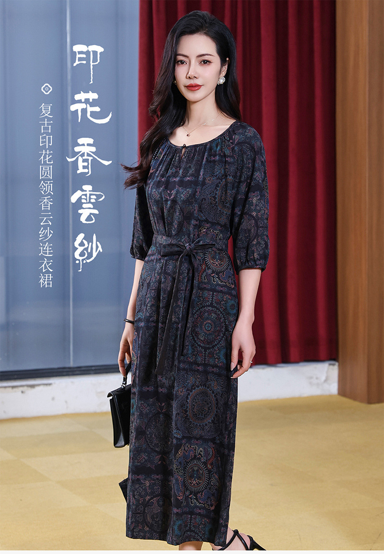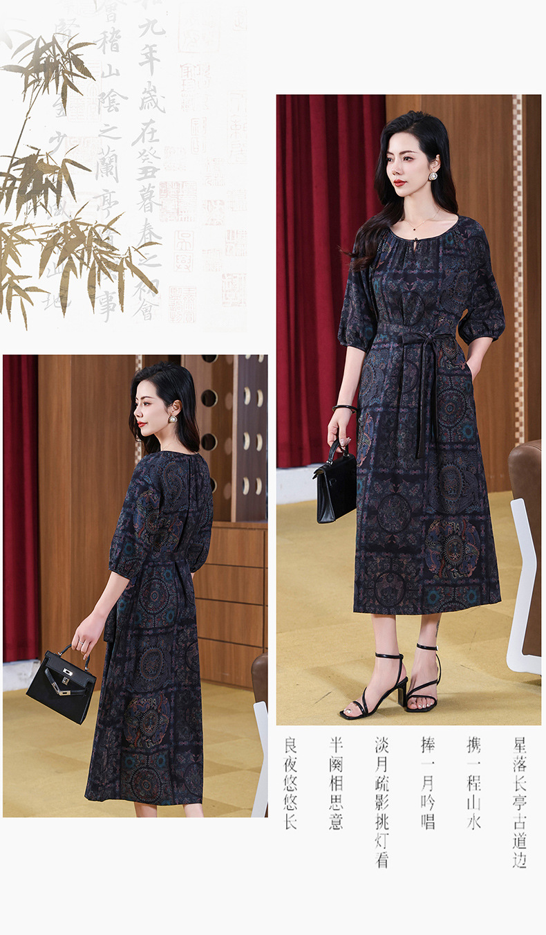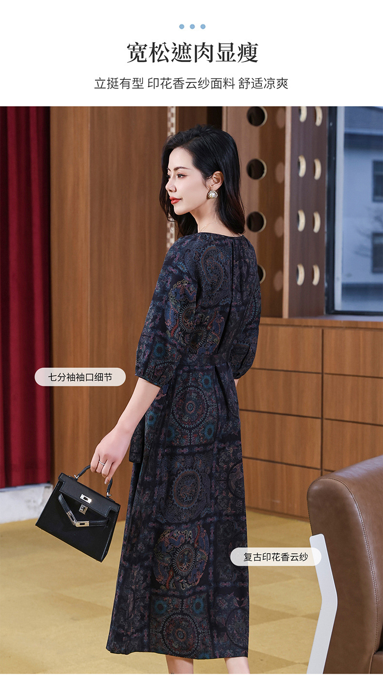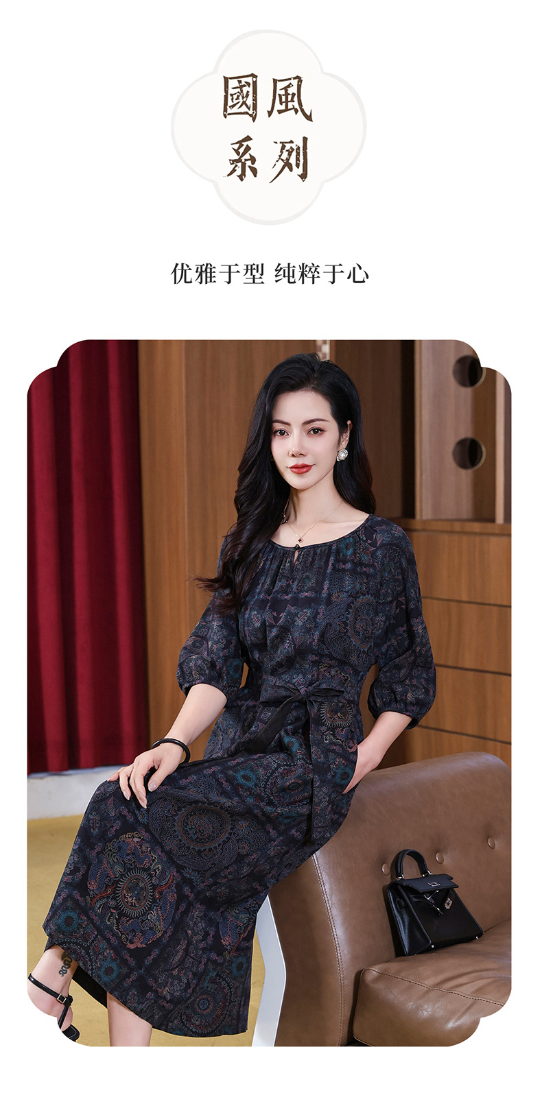 KQ-221880花罗香云纱真丝连衣裙女中长款夏季时尚气质新中式显瘦桑蚕丝裙子