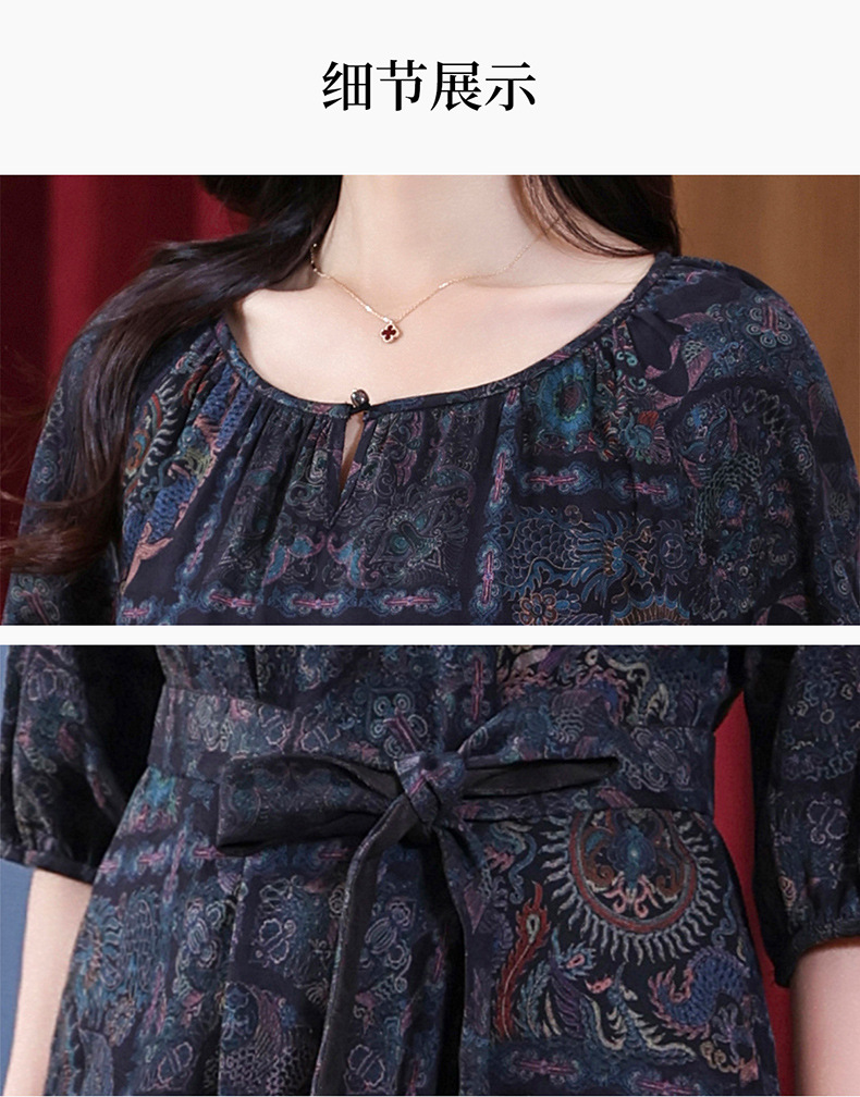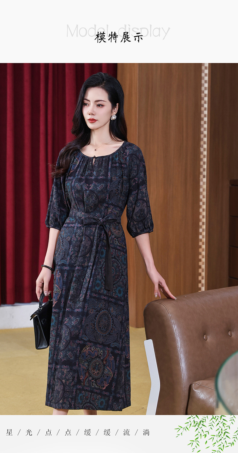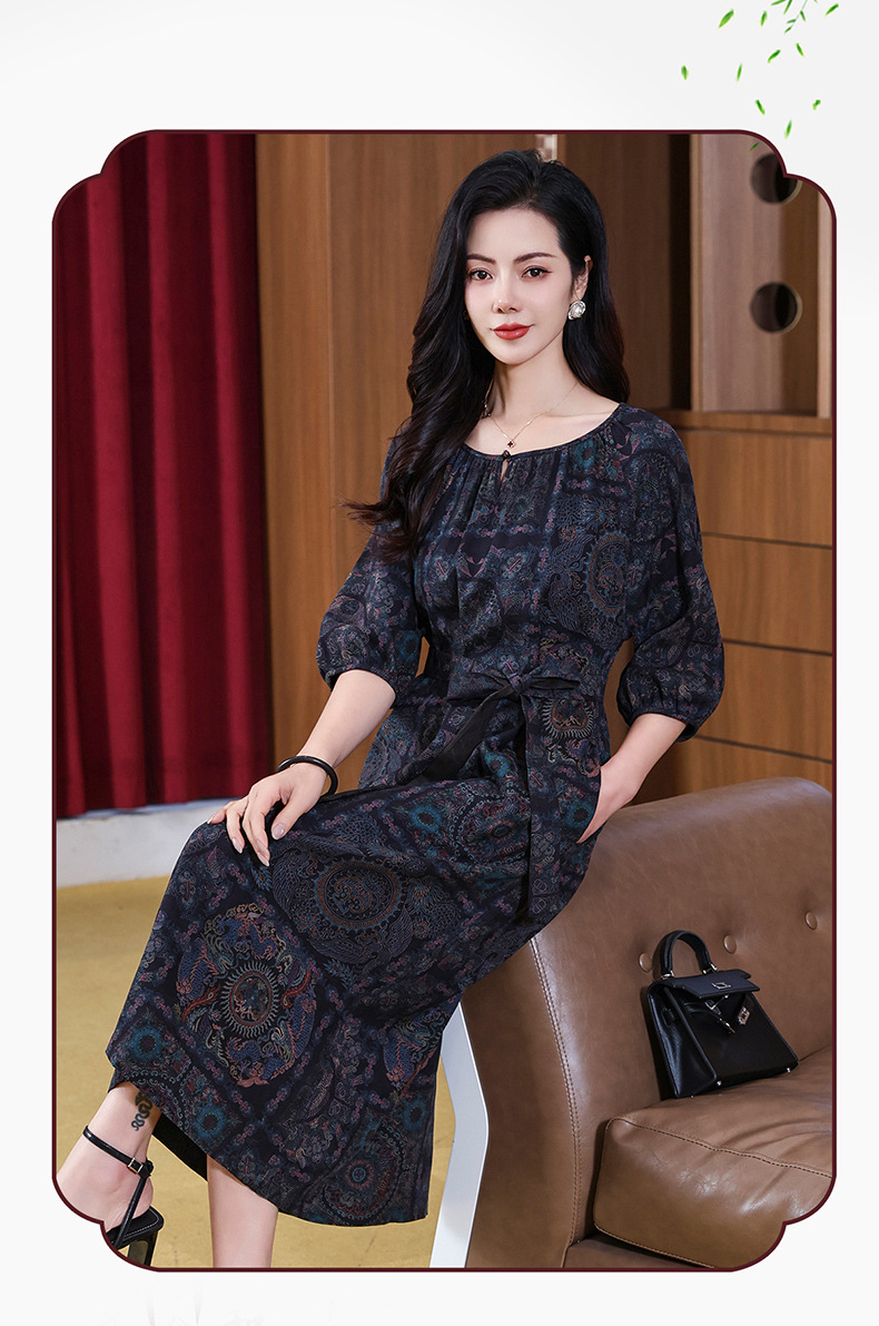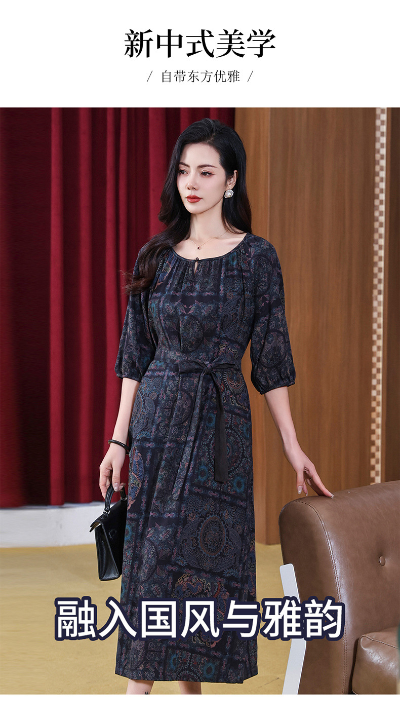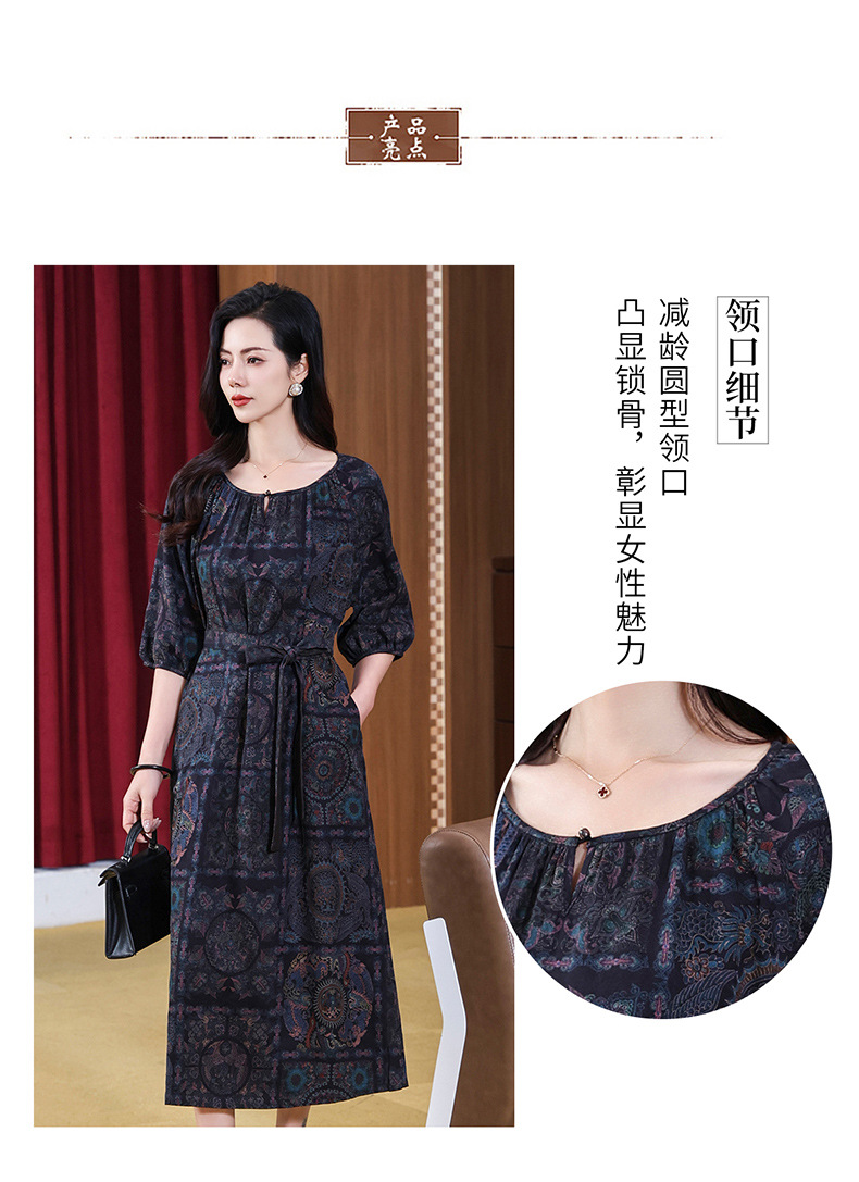 KQ-221880花罗香云纱真丝连衣裙女中长款夏季时尚气质新中式显瘦桑蚕丝裙子