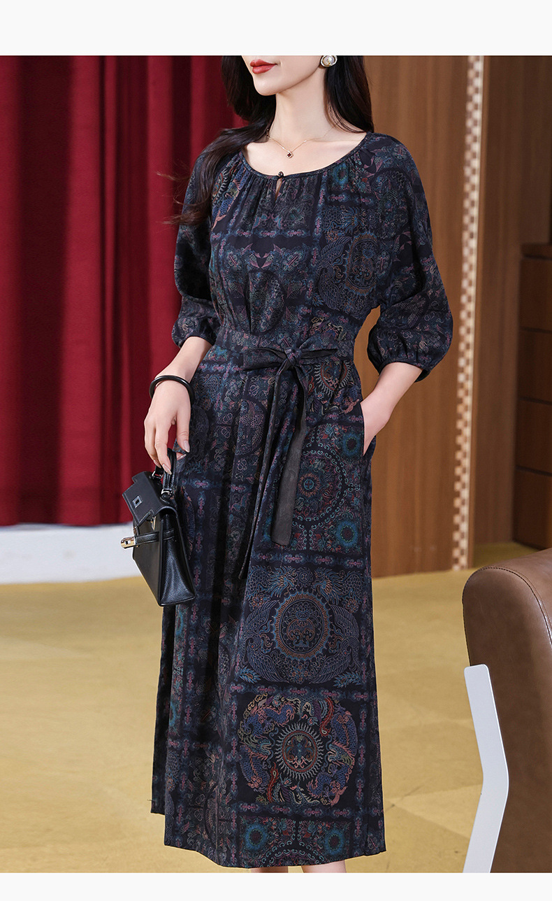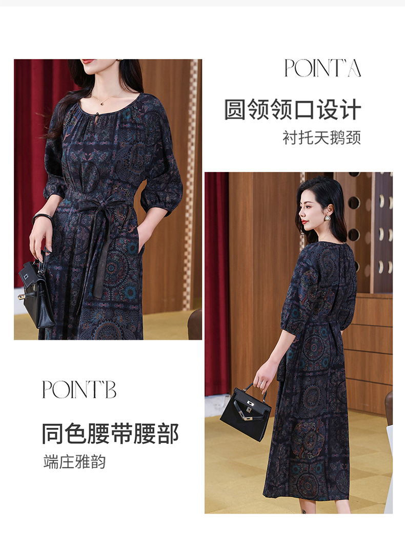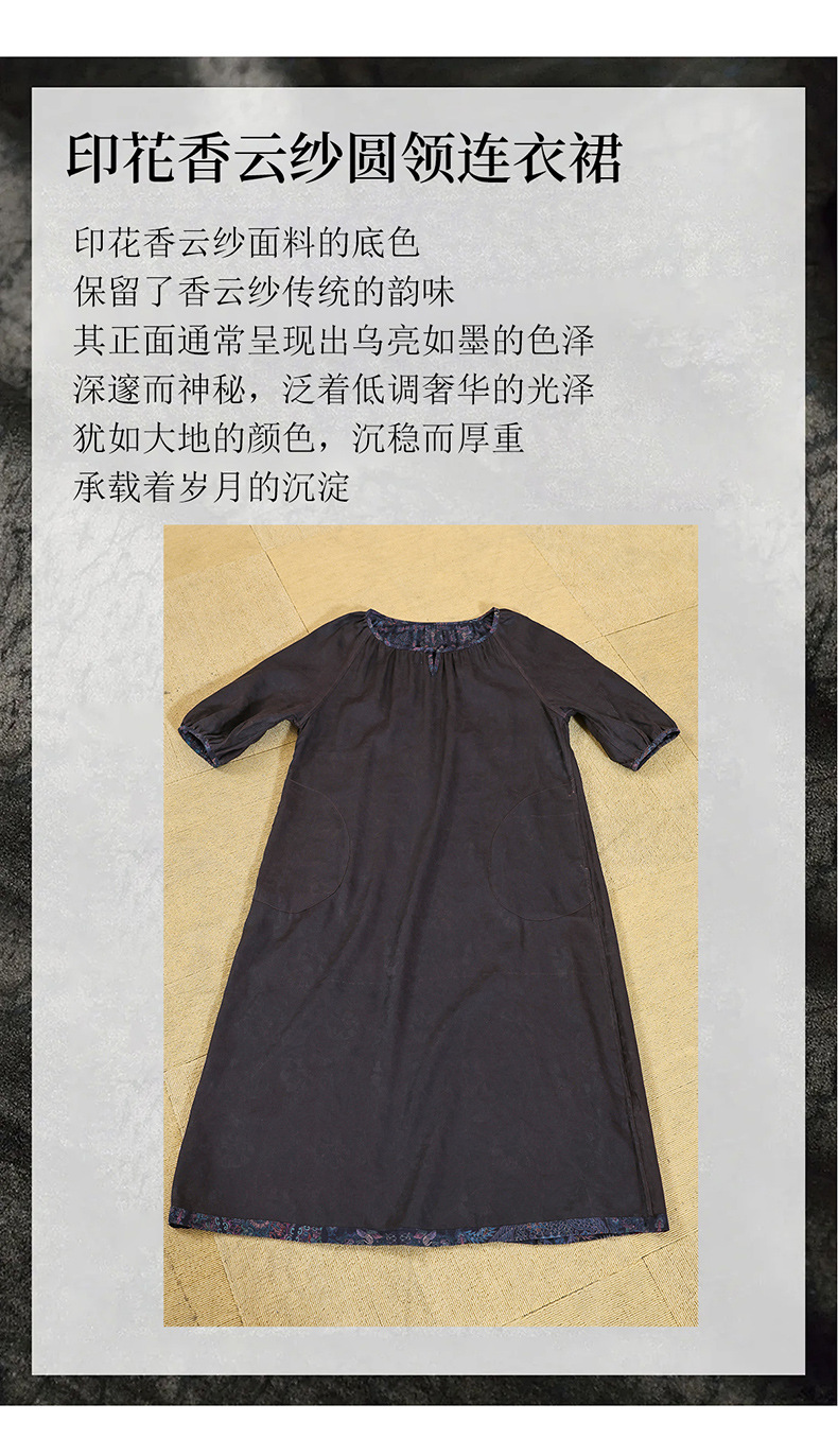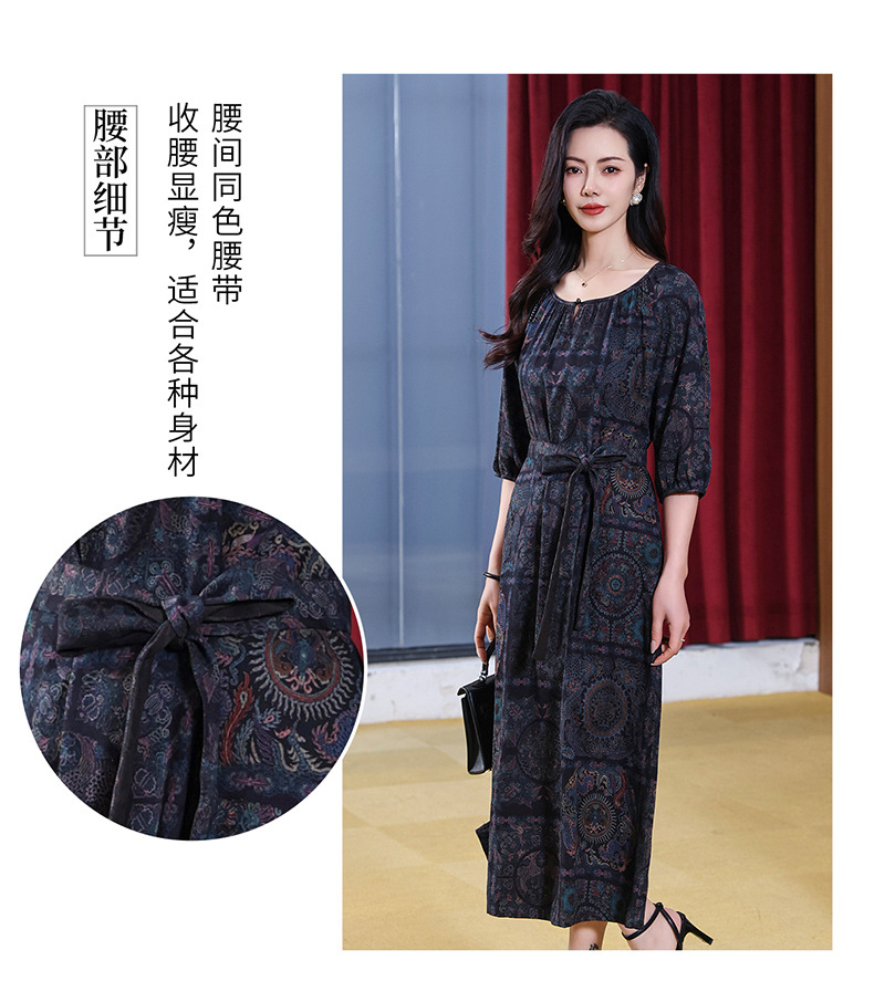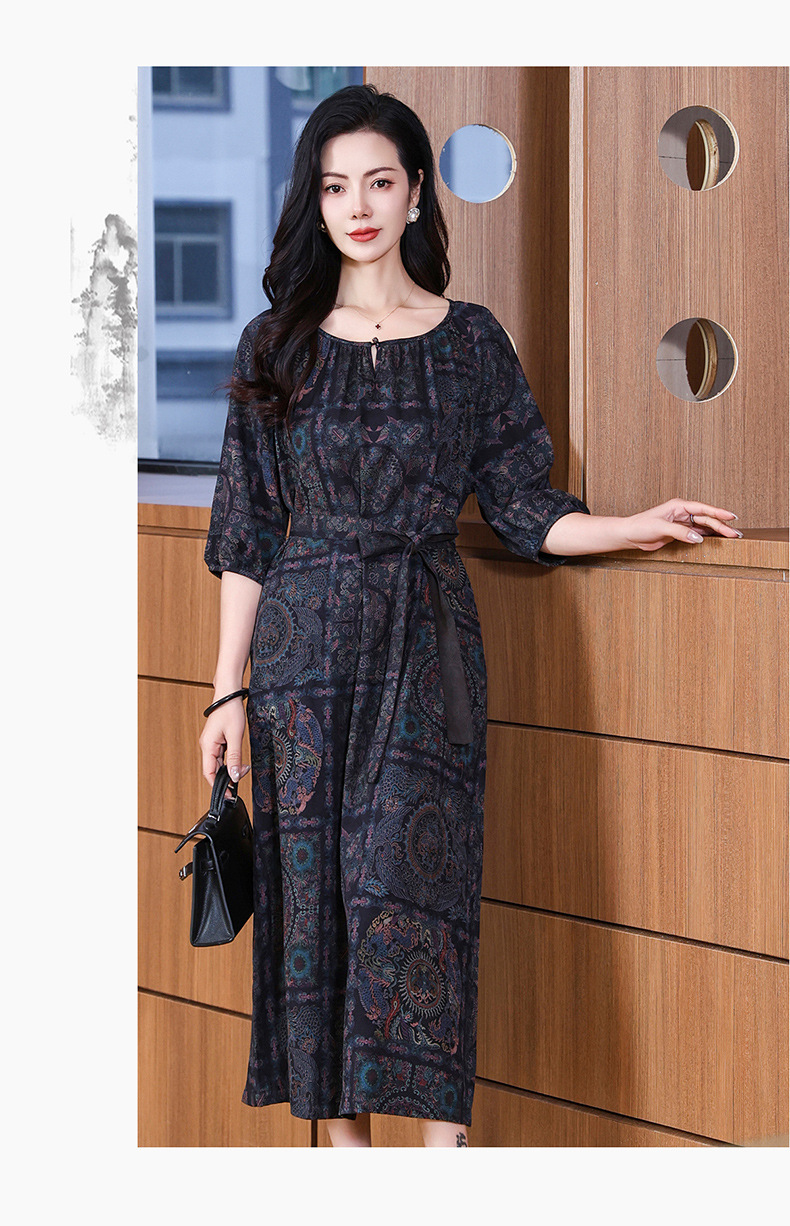 KQ-221880花罗香云纱真丝连衣裙女中长款夏季时尚气质新中式显瘦桑蚕丝裙子
