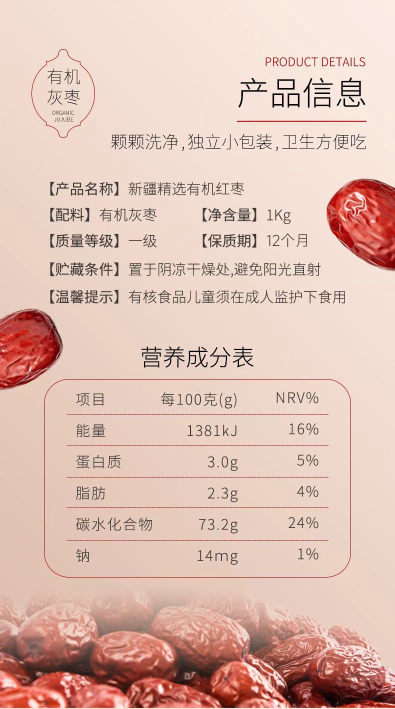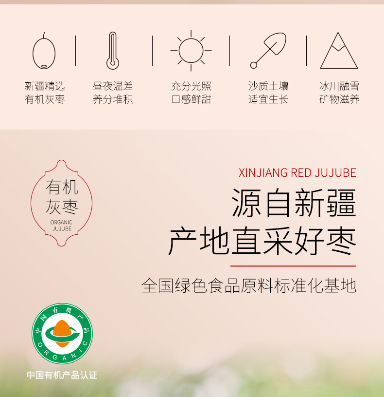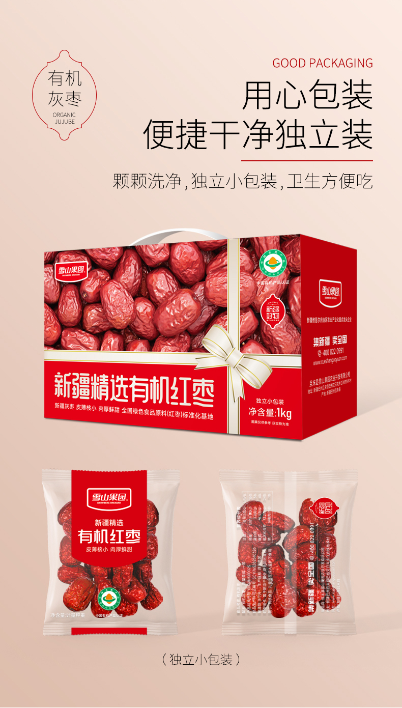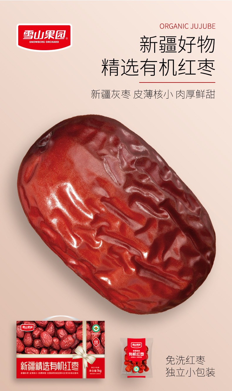 雪山果园 新疆有机红枣礼盒装 1000g/箱 圆润饱满,肉厚核小,不打蜡,不熏染,树上自然吊干,独立小包装