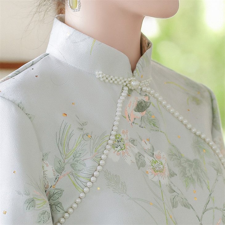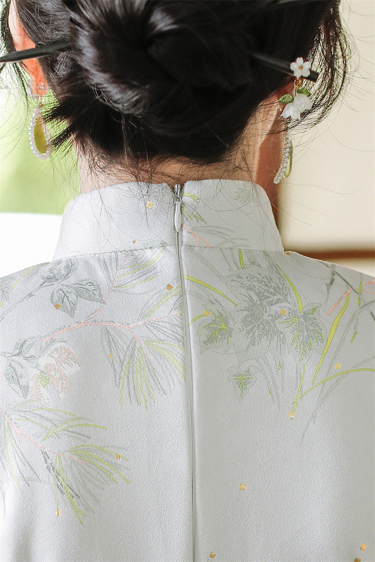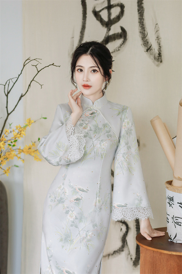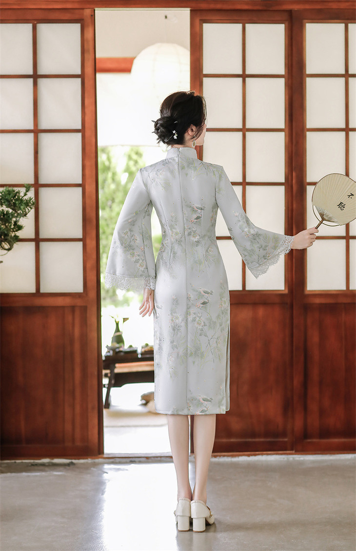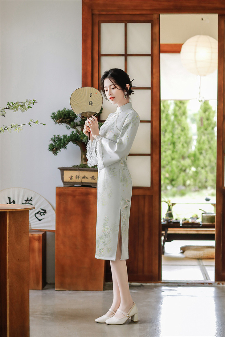 麂皮绒倒大袖中长款旗袍2022秋季新款时尚改良年轻少女长袖旗袍裙AQX-35