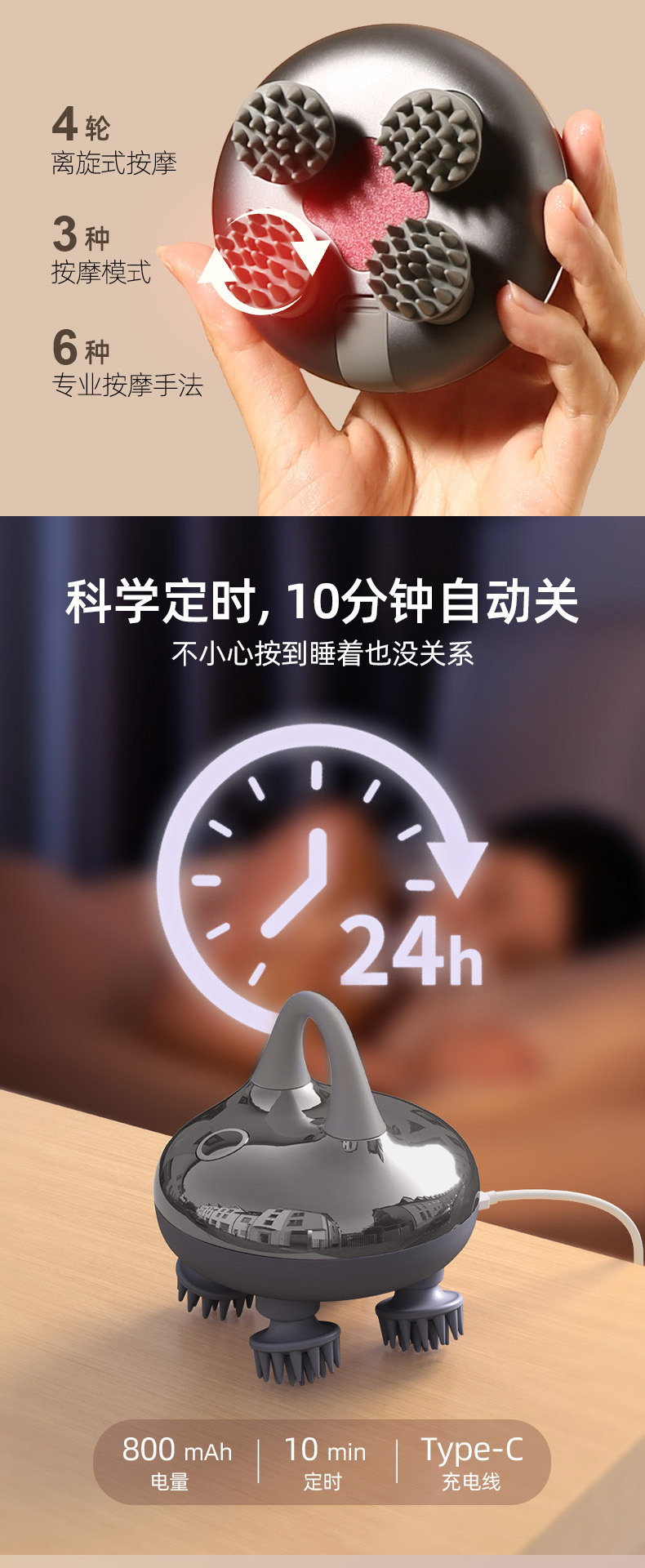 攀高头部按摩器H3灰色智能按摩缓解疲劳