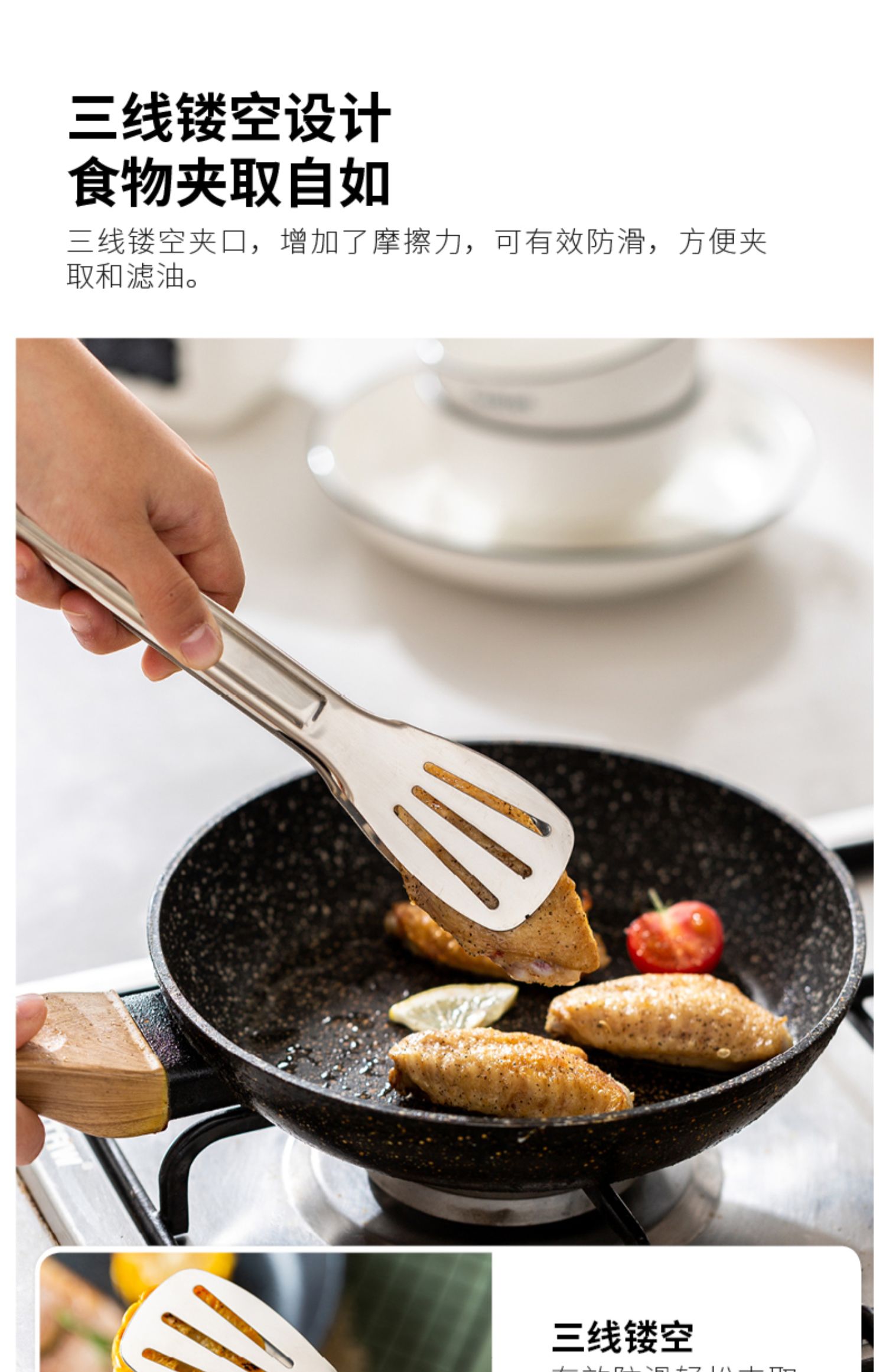 摩登主妇不锈钢食品夹子厨房牛排夹烤肉夹子烧烤夹面包夹防烫家用