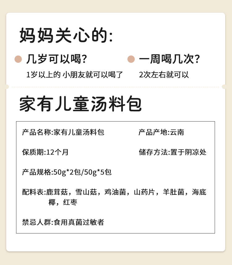 【儿童成长菌菇汤】在菌屋 家有儿童汤料包50g*5包/盒 自然温养配方 鲜甜营养