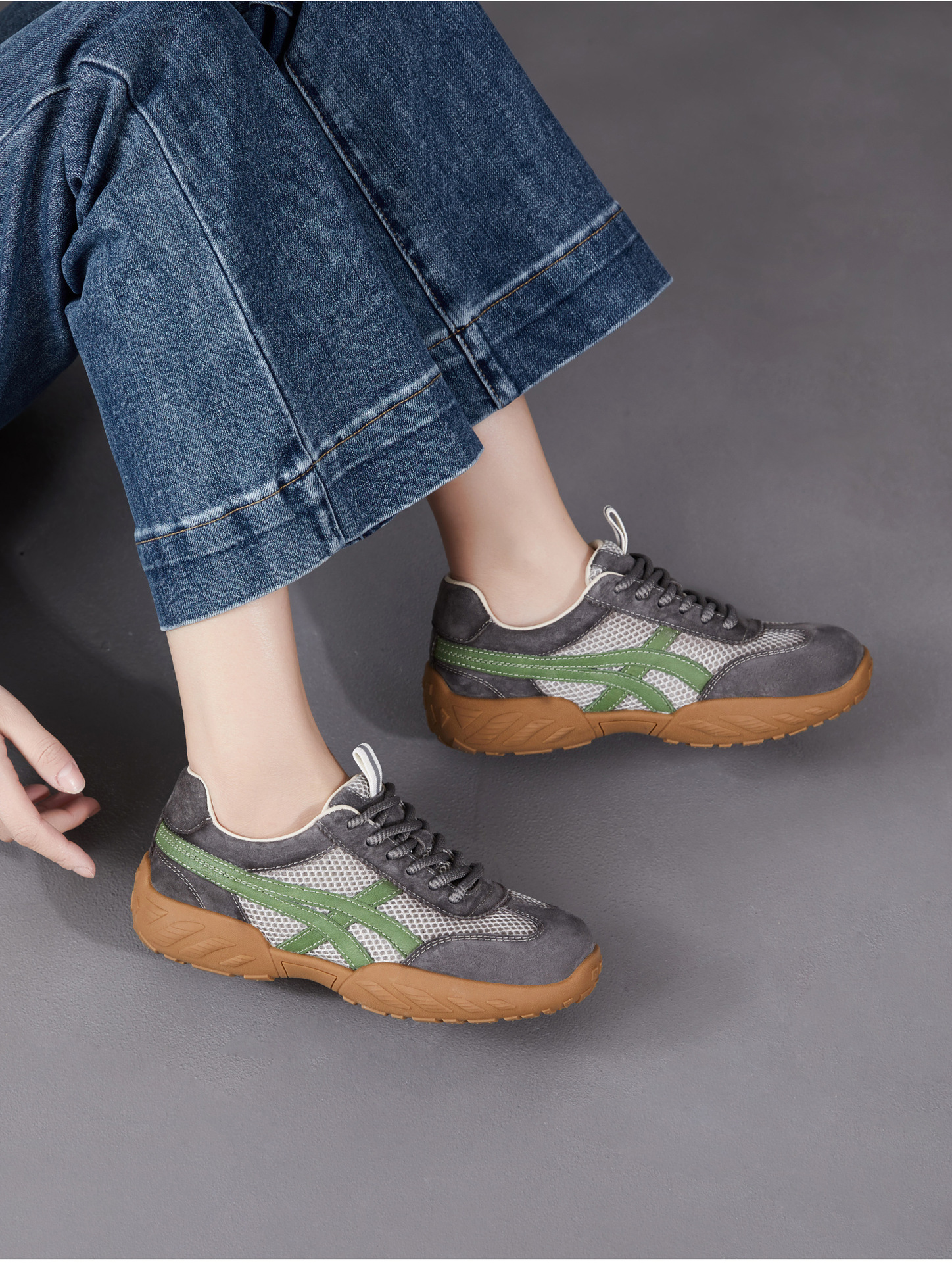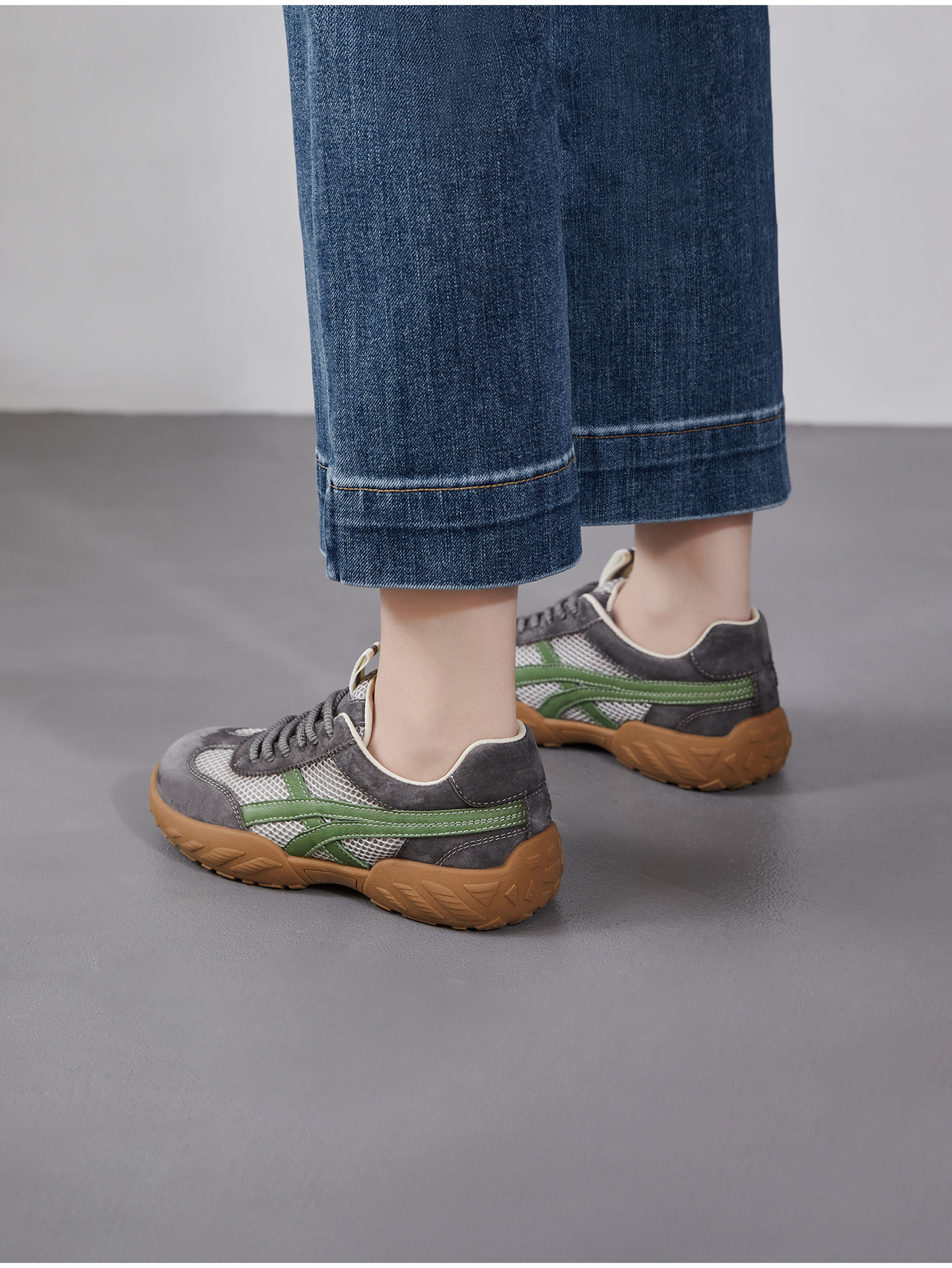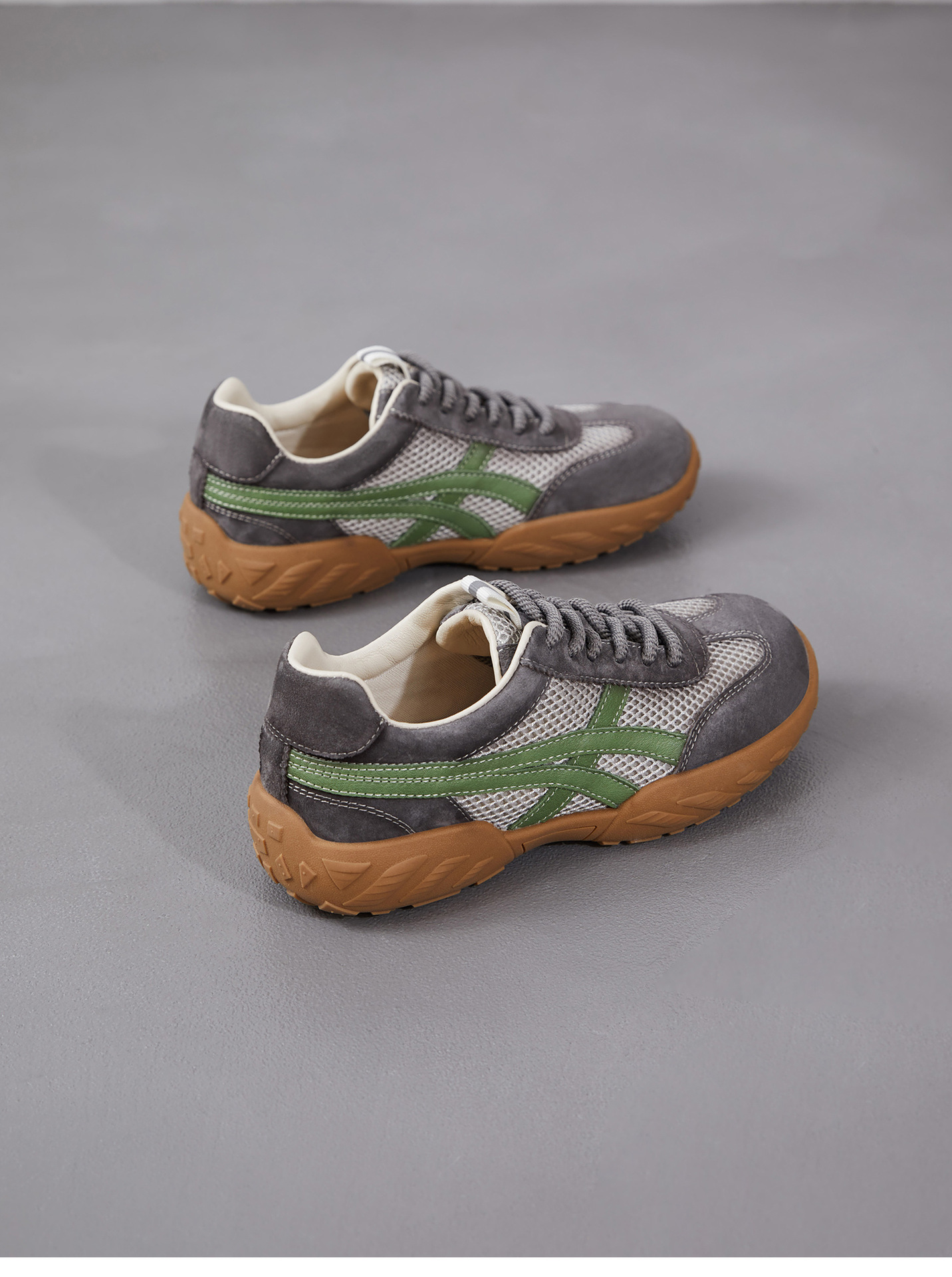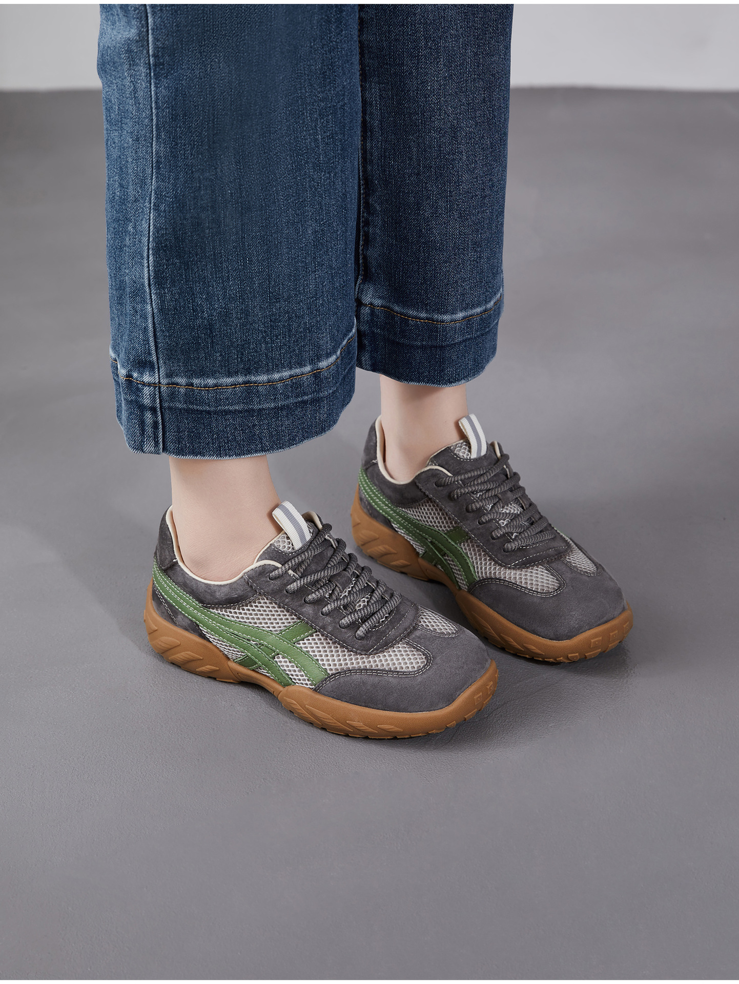 雀说 复古德训鞋女透气网面拼色阿甘鞋系带休闲运动单鞋ZM269067