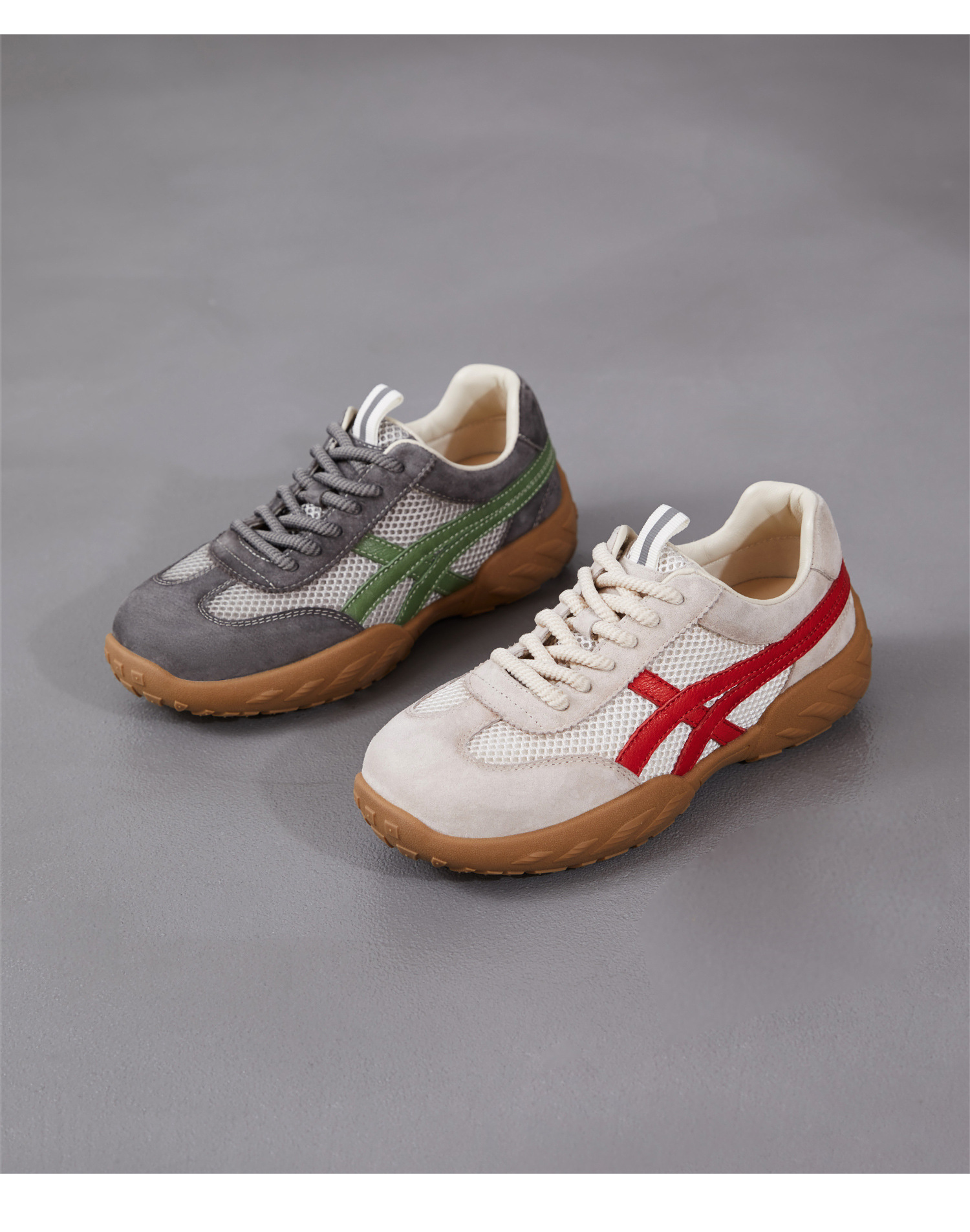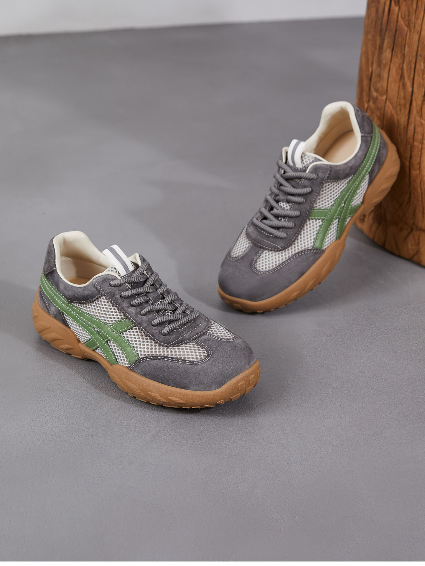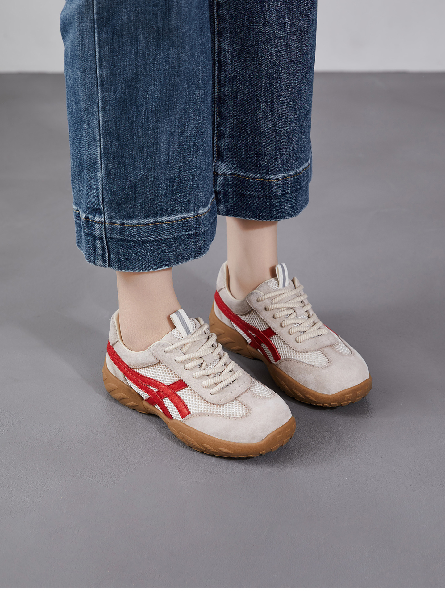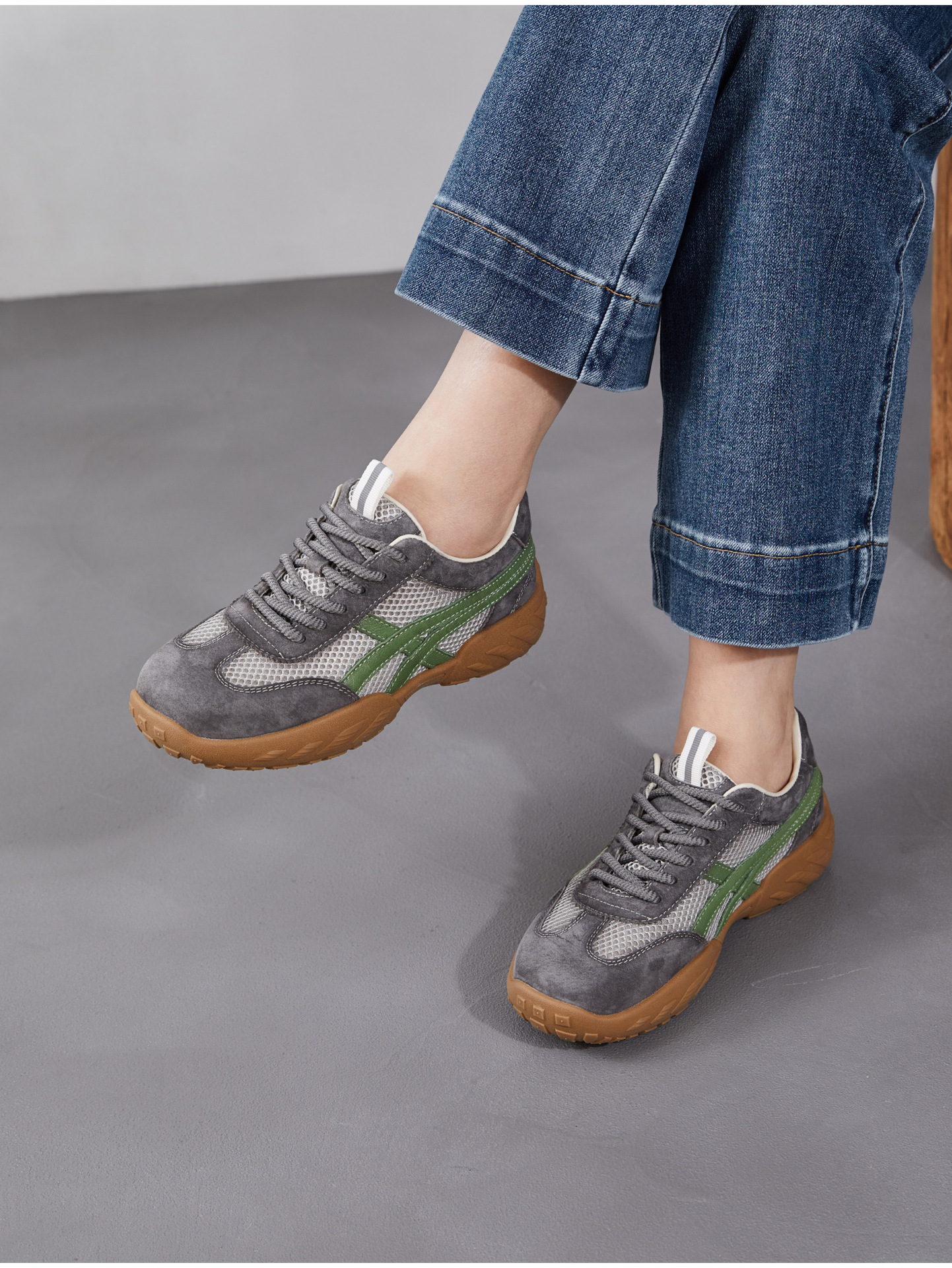 雀说 复古德训鞋女透气网面拼色阿甘鞋系带休闲运动单鞋ZM269067