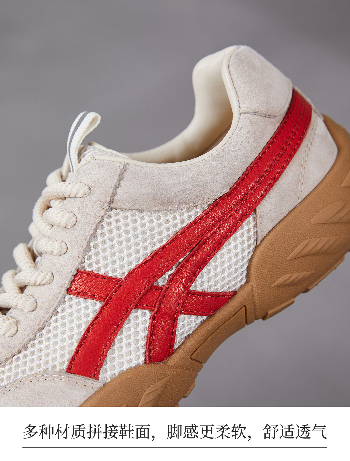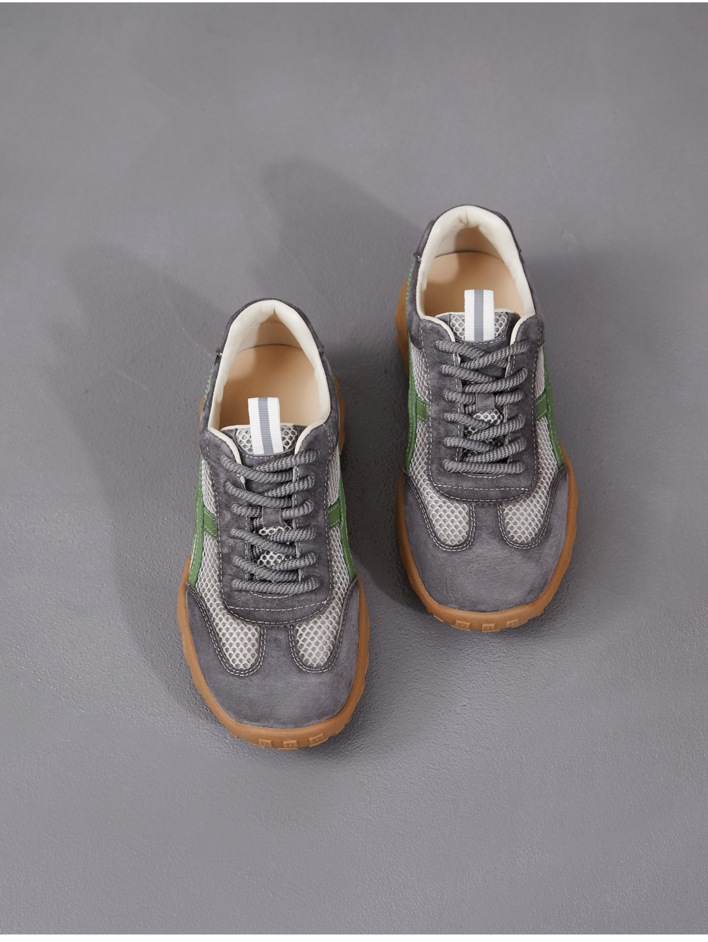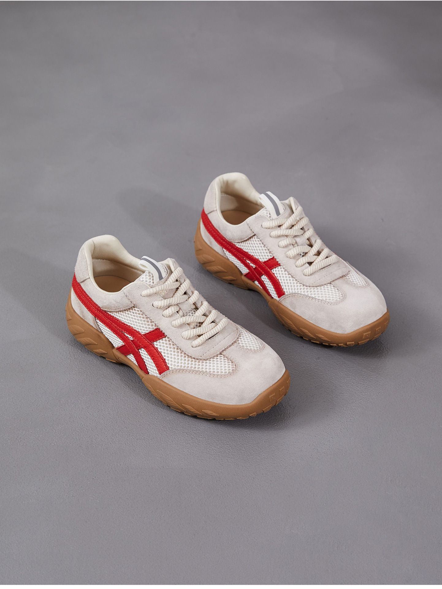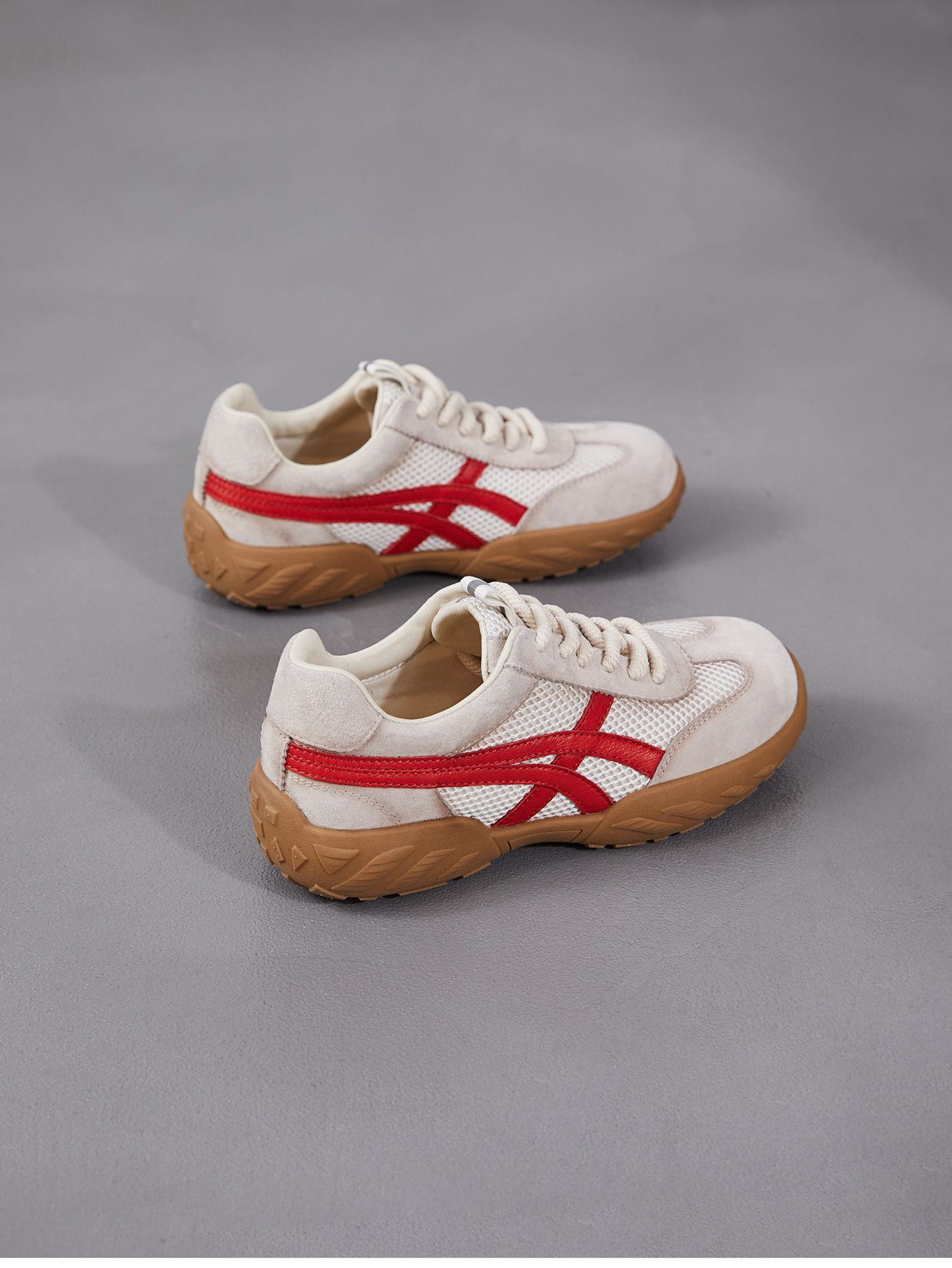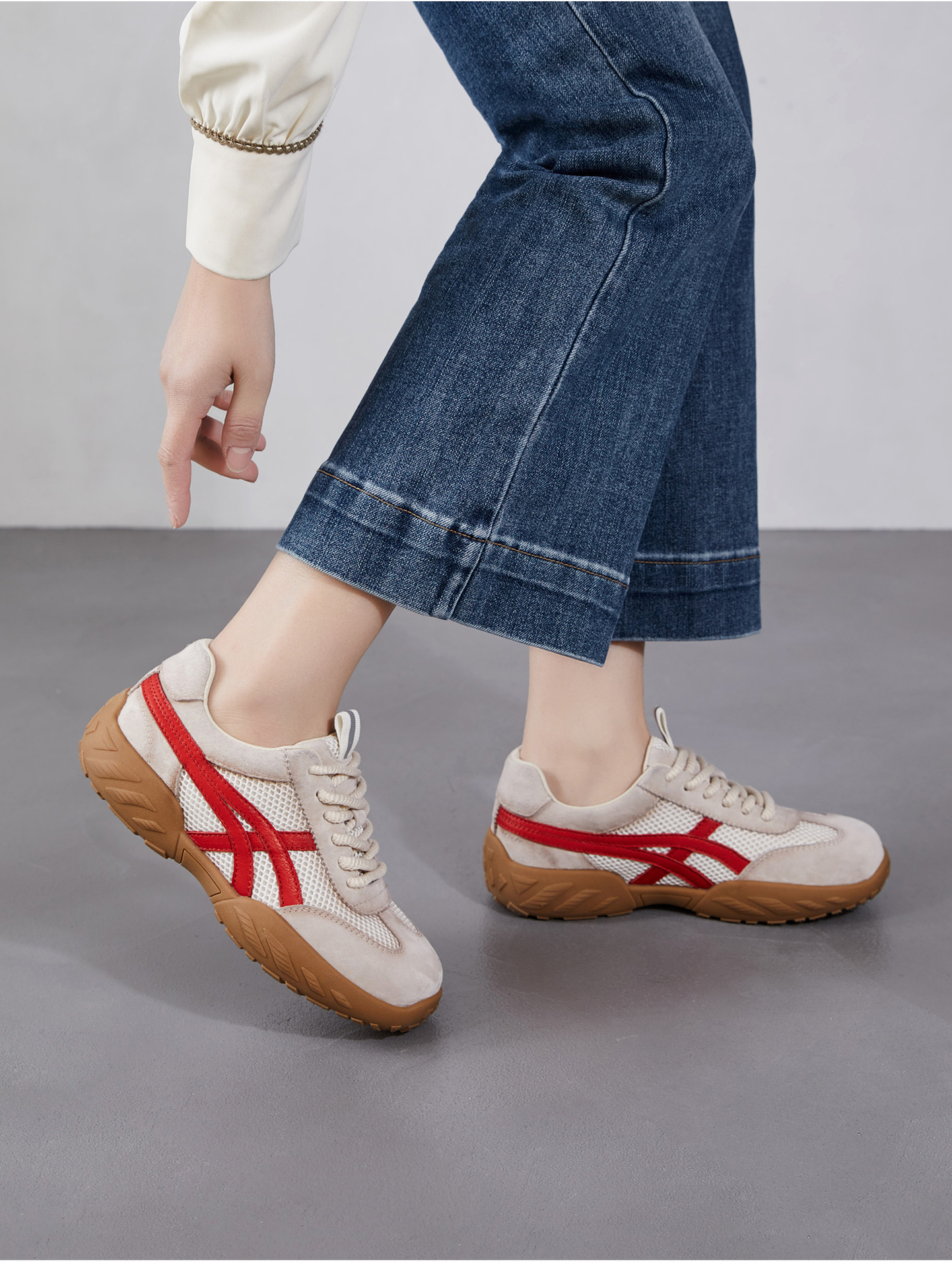 雀说 复古德训鞋女透气网面拼色阿甘鞋系带休闲运动单鞋ZM269067