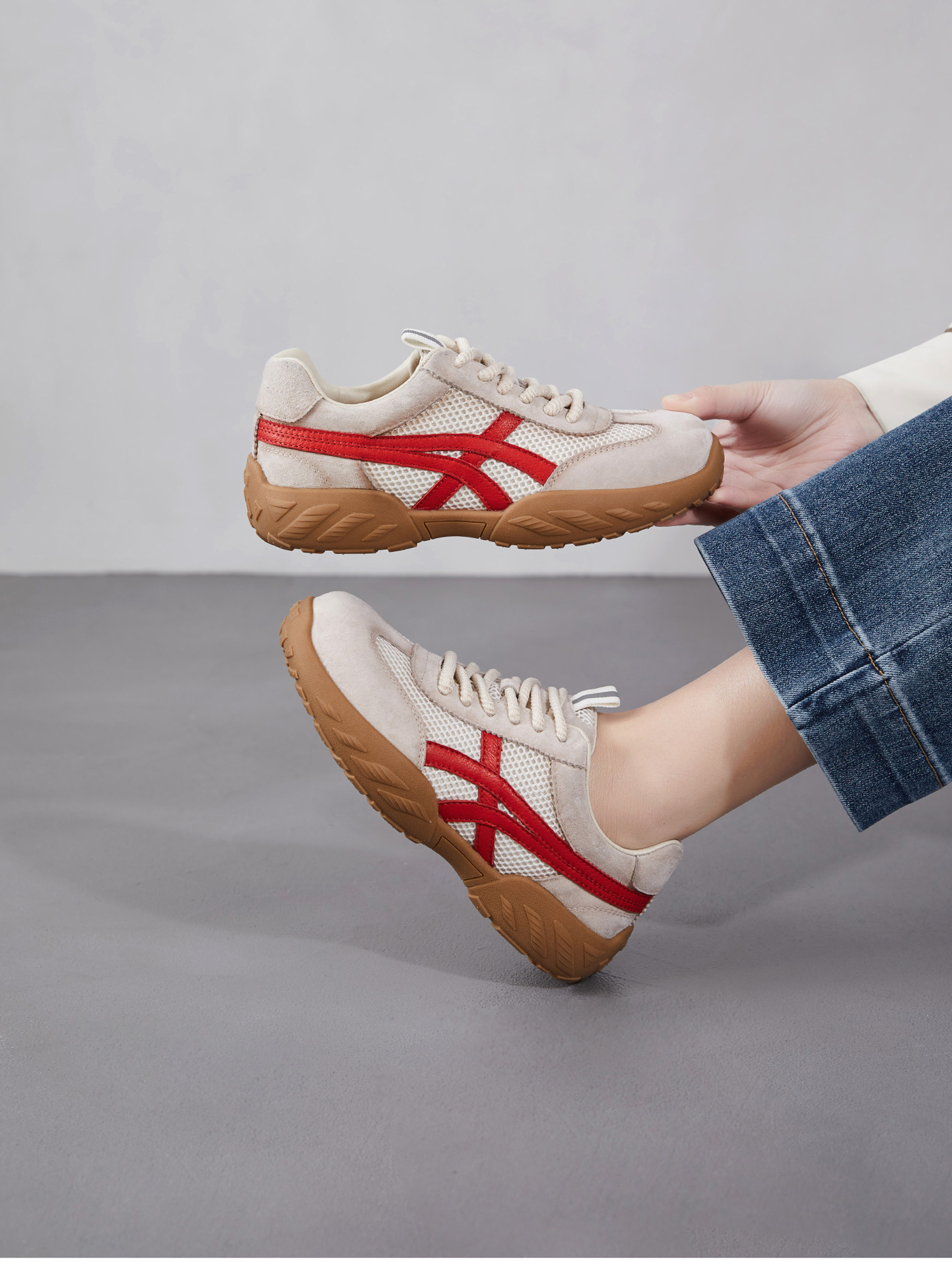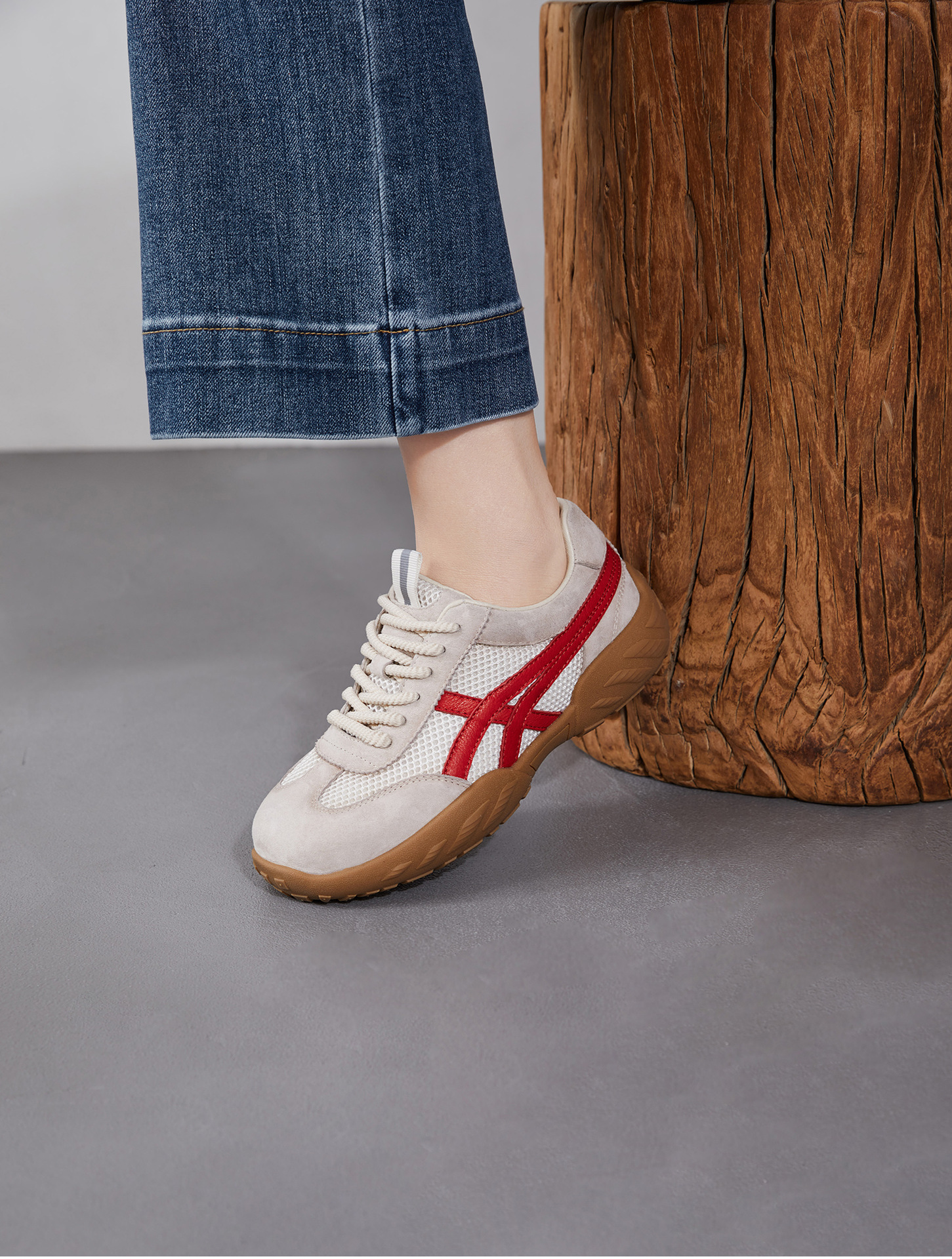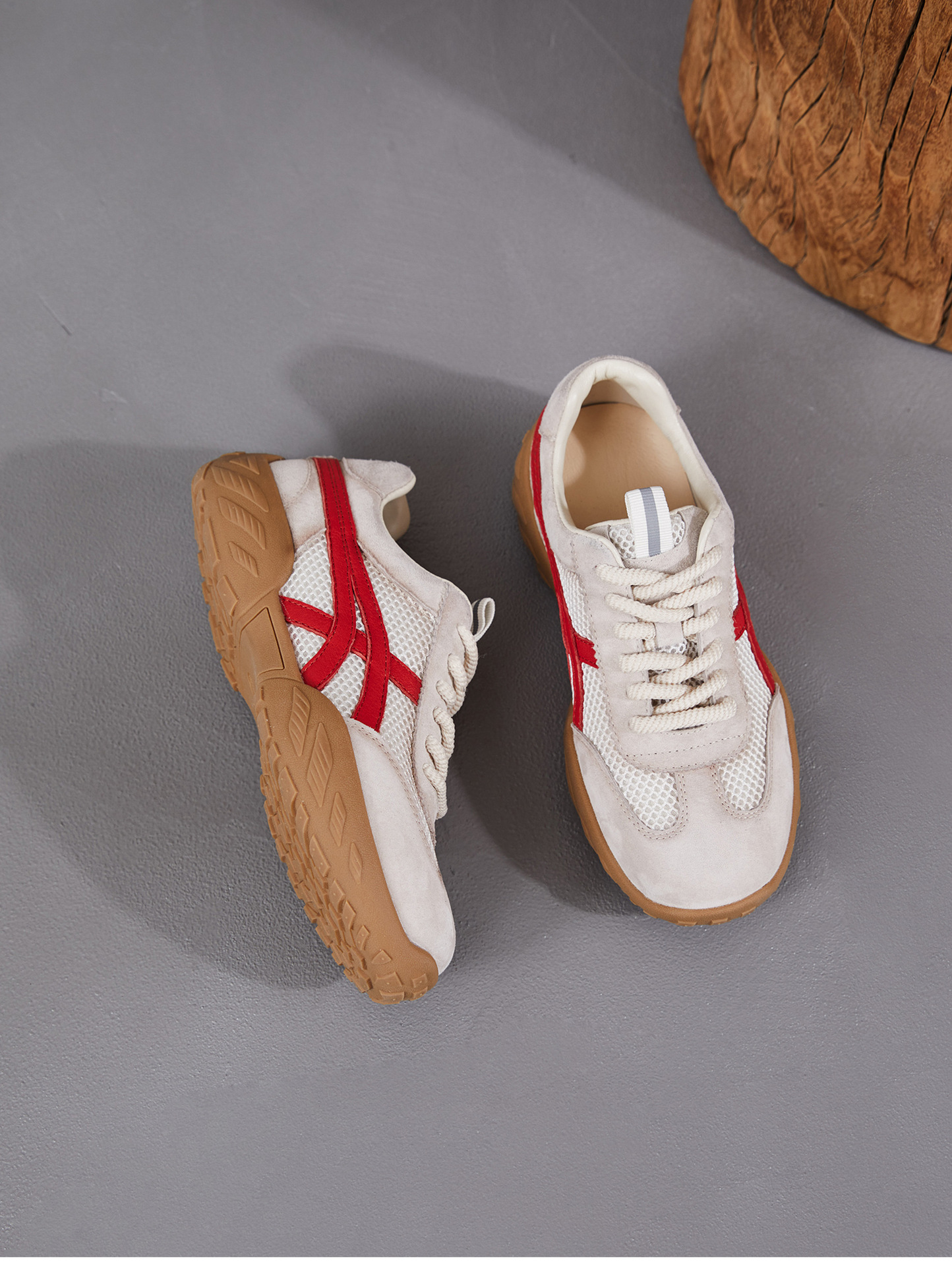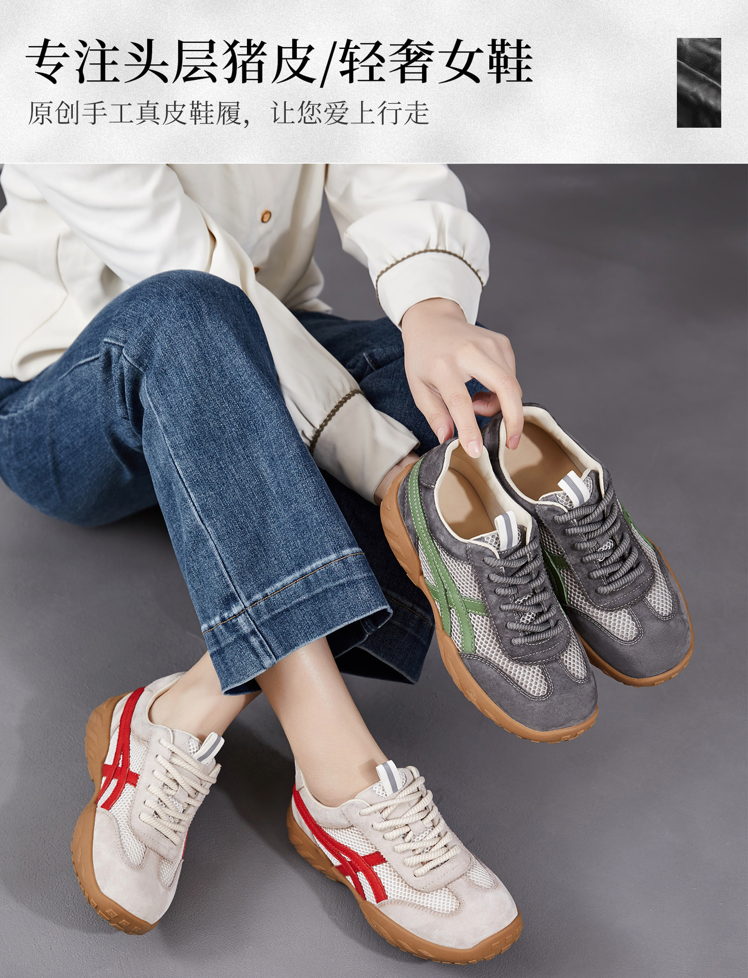 雀说 复古德训鞋女透气网面拼色阿甘鞋系带休闲运动单鞋ZM269067