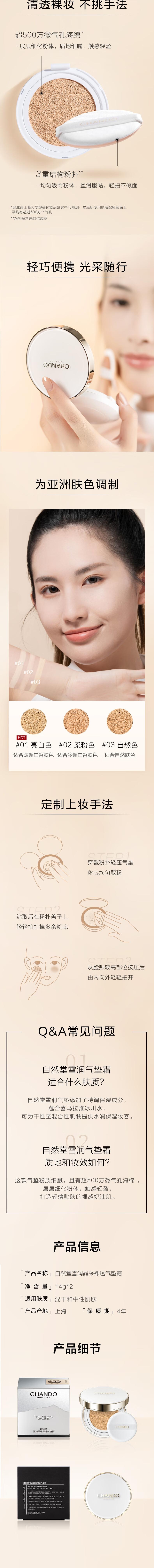 自然堂 雪润晶采裸透气垫霜组合装#01亮白色2个装 5024816001