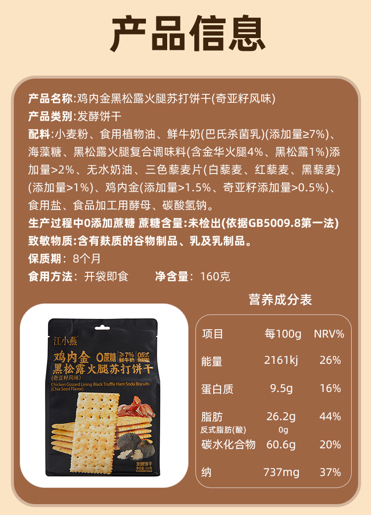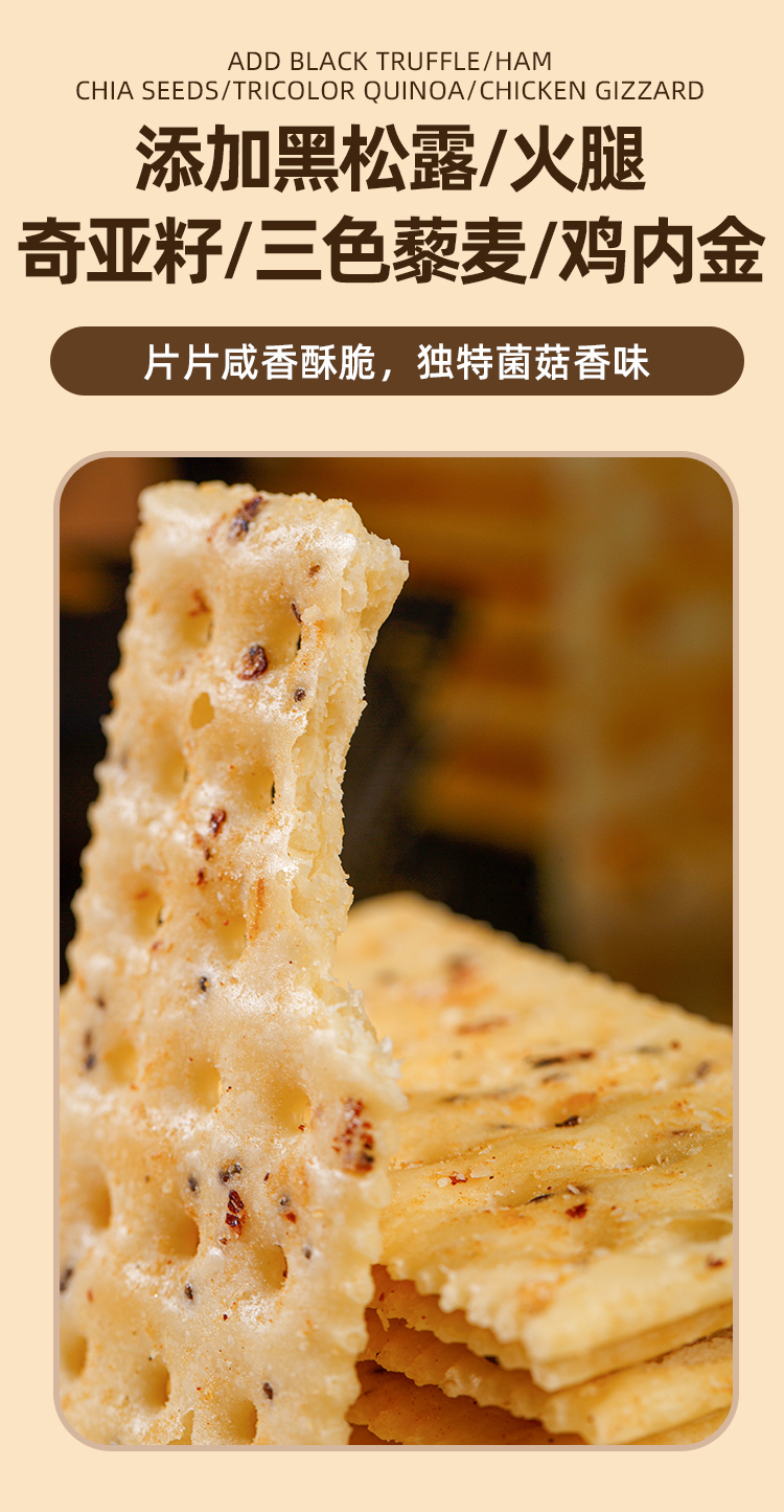 鸡内金苏打饼干 酥脆好吃停不下来 添加黑松露/火腿/奇亚籽/三色藜麦/鸡内金 甄选新西兰进口奶