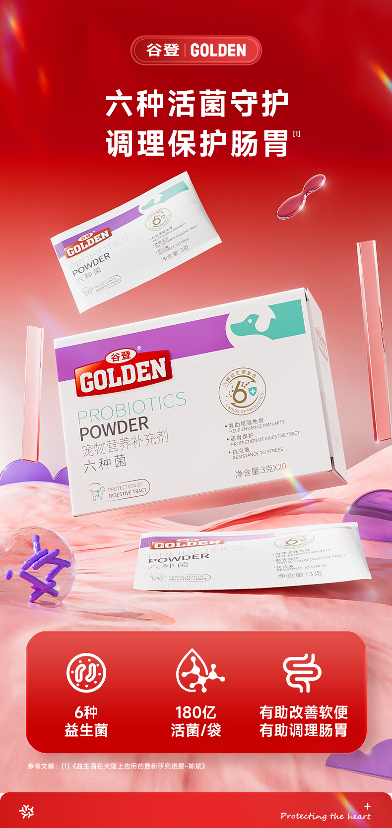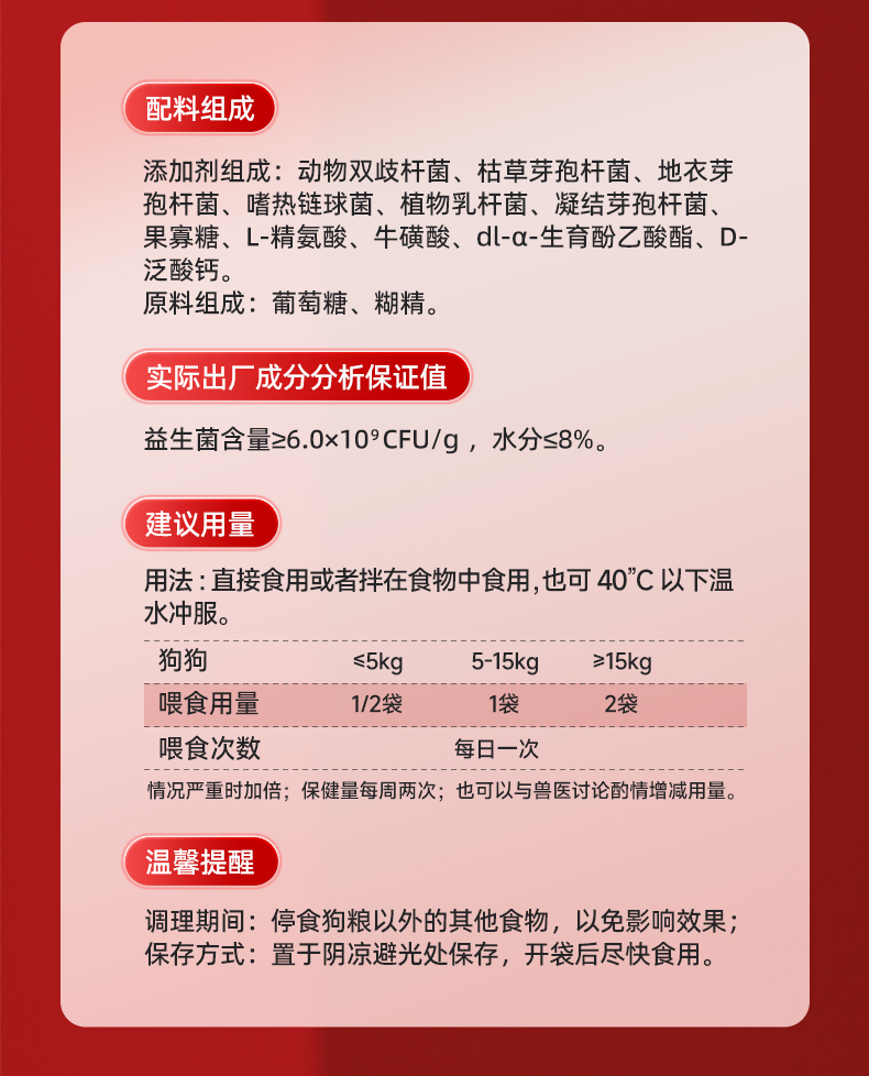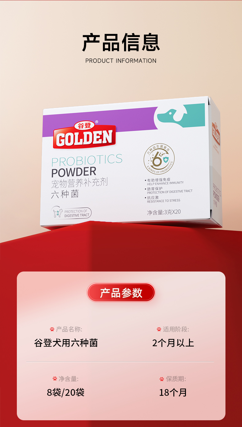 【2盒加送赠品】谷登六种菌(犬用)3g*8袋