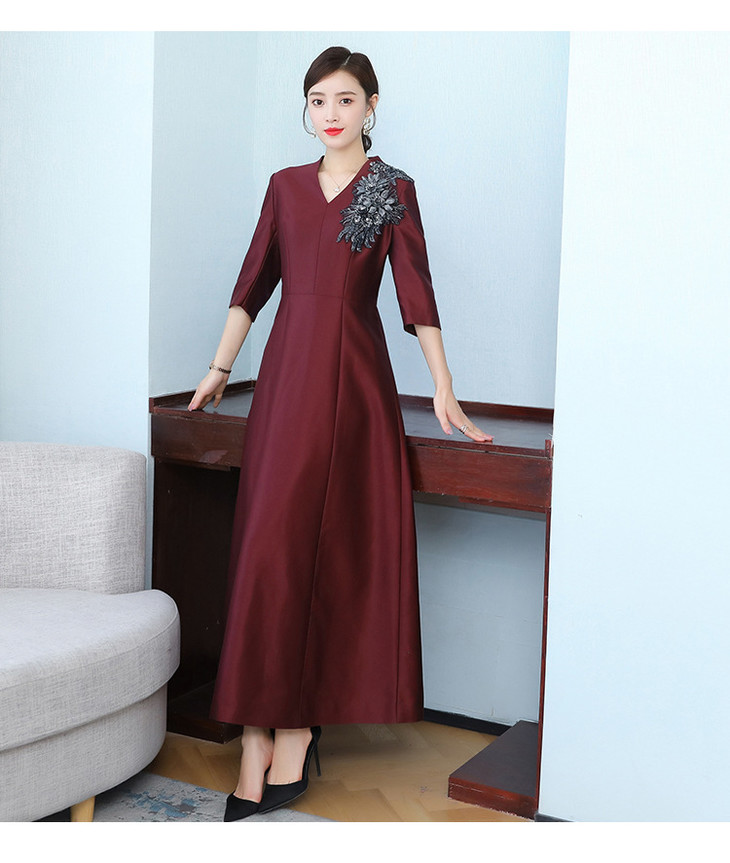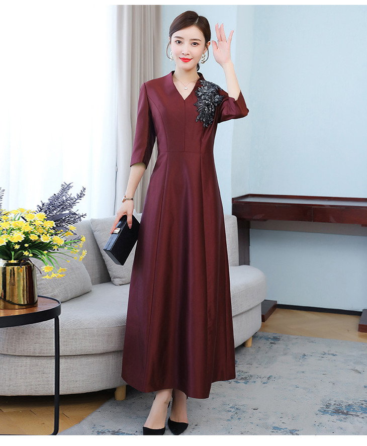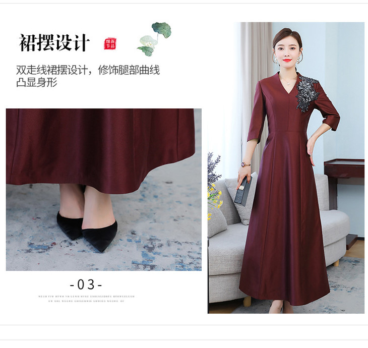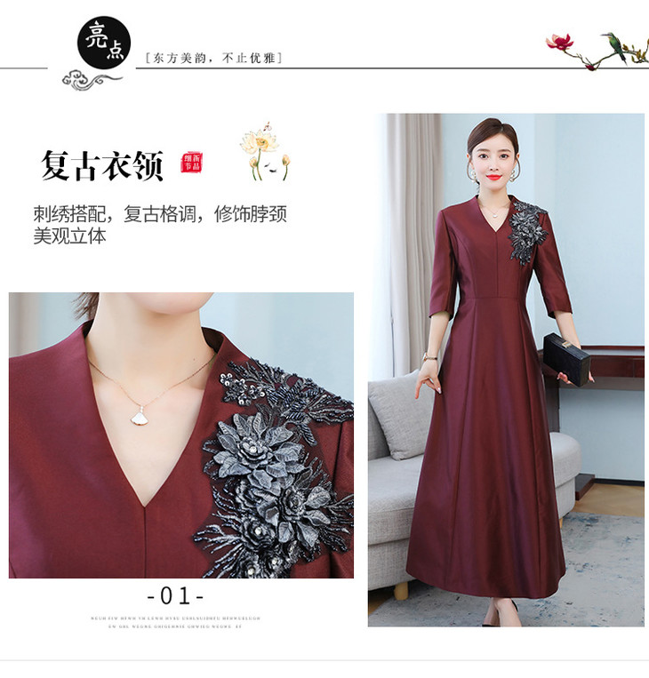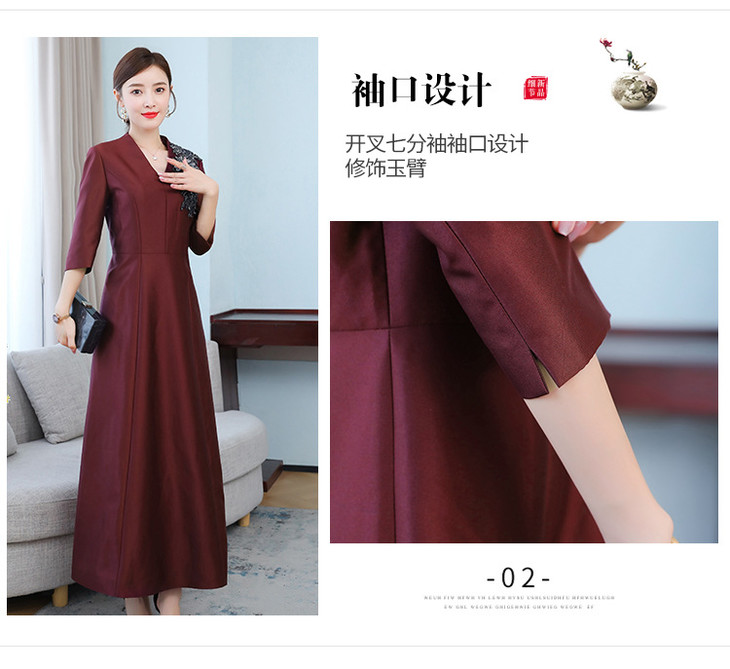 AHM-mdnz5383新款时尚优雅气质收腰显瘦V领七分袖长款连衣裙