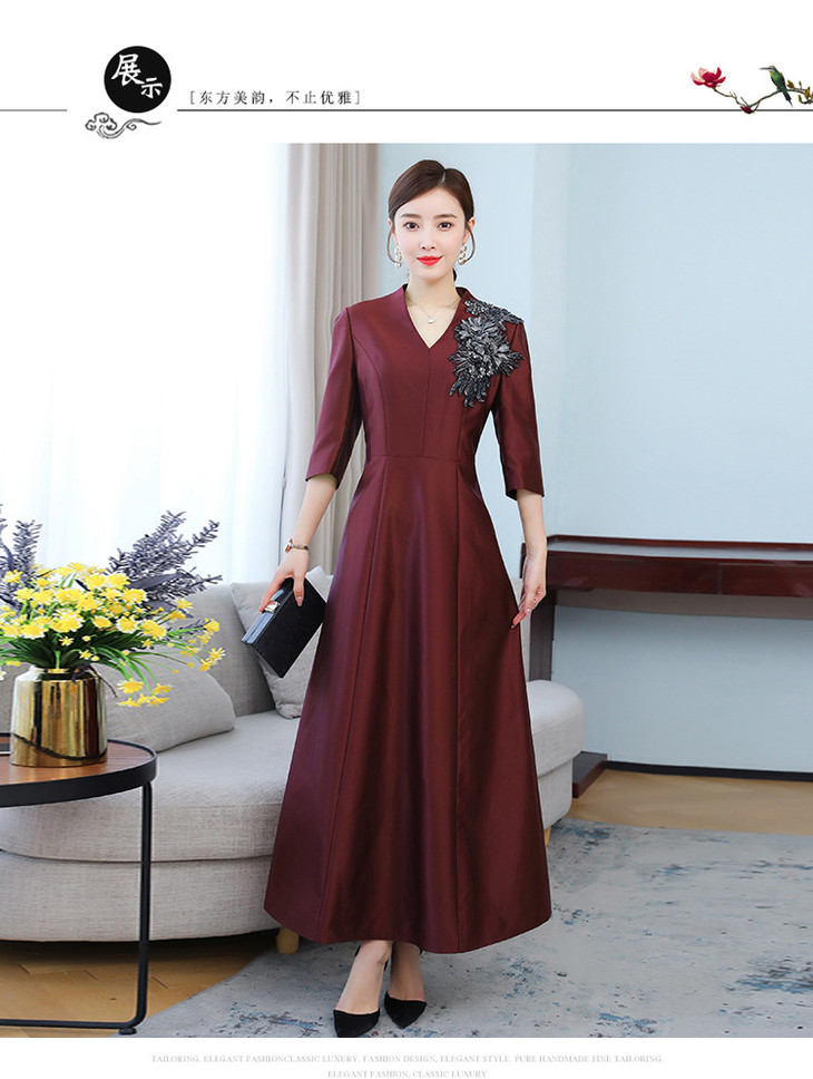 C9004春夏秋冬新款旗袍裙长款旗袍两件套表演礼服