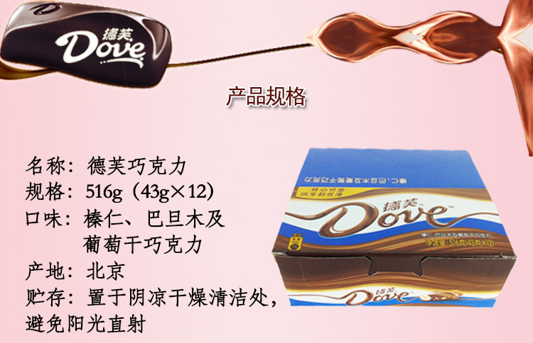 【百汇到家】德芙榛仁巴旦木及葡萄干巧克力43g