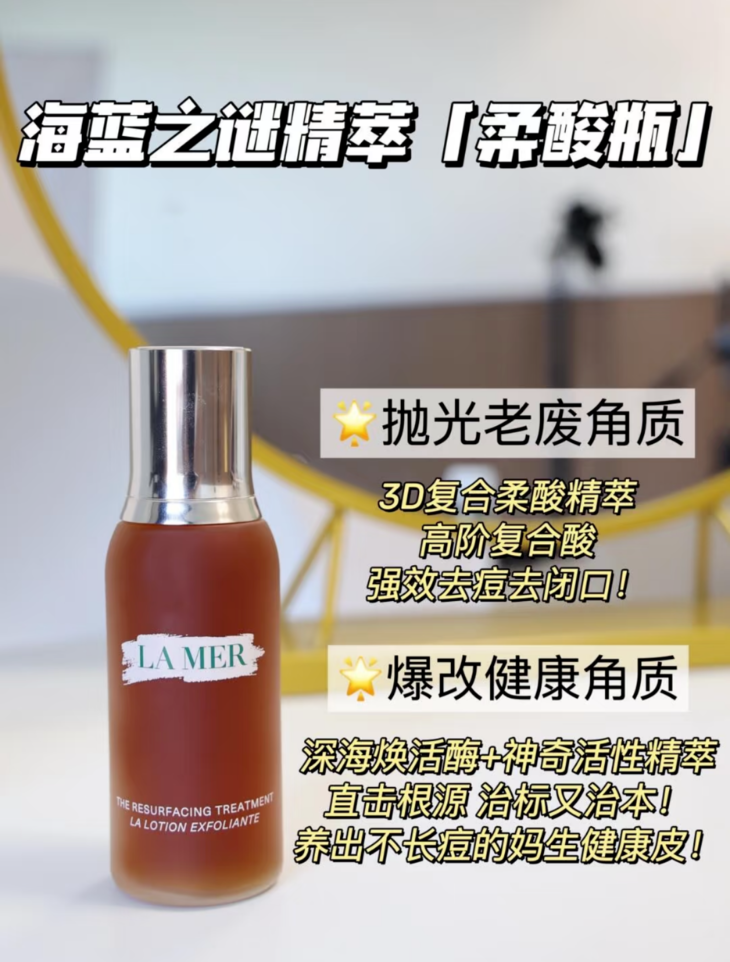 👑LA MER 海蓝之谜柔酸肌底液 100ml 💎调理肌肤,开启专用柔酸焕肤 💦【细腻抛光】:超微抛光焕活粒子,深层净彻肌肤浊质,细腻毛孔,平滑肌肤 😘【抗氧焕亮】:酸橙茶精萃,中和自由基,构筑抗氧屏障保护盾,全面焕亮肤色 🌟【饱满高光】:神奇活性精萃,日夜激活肌肤抗老之源ATP提升2倍,淡化干纹细纹 🌈主打:柔和刷酸、平闭口、祛痘痘、去角质,肌肤问题救星 ✨水感精华质地,清透水润好推开,轻拍吸收不粘腻,可以湿敷或拍打吸收 💥无需建立耐受,敏感肌可以冲!