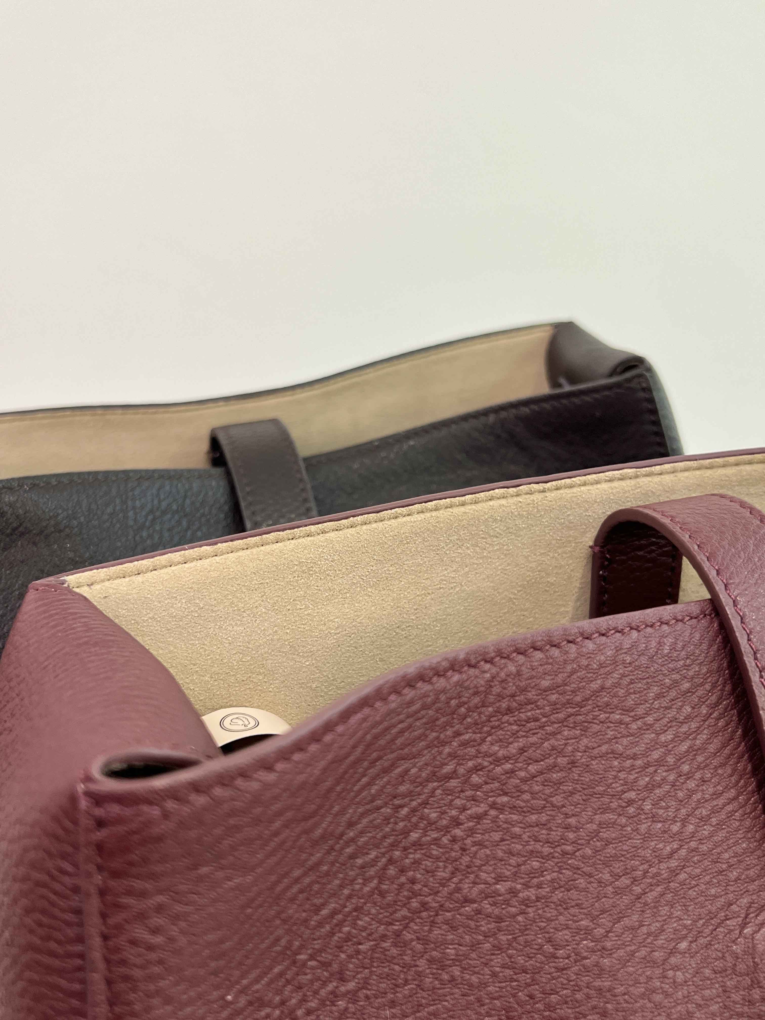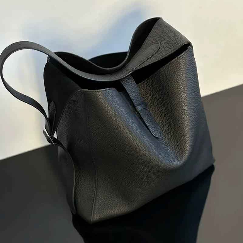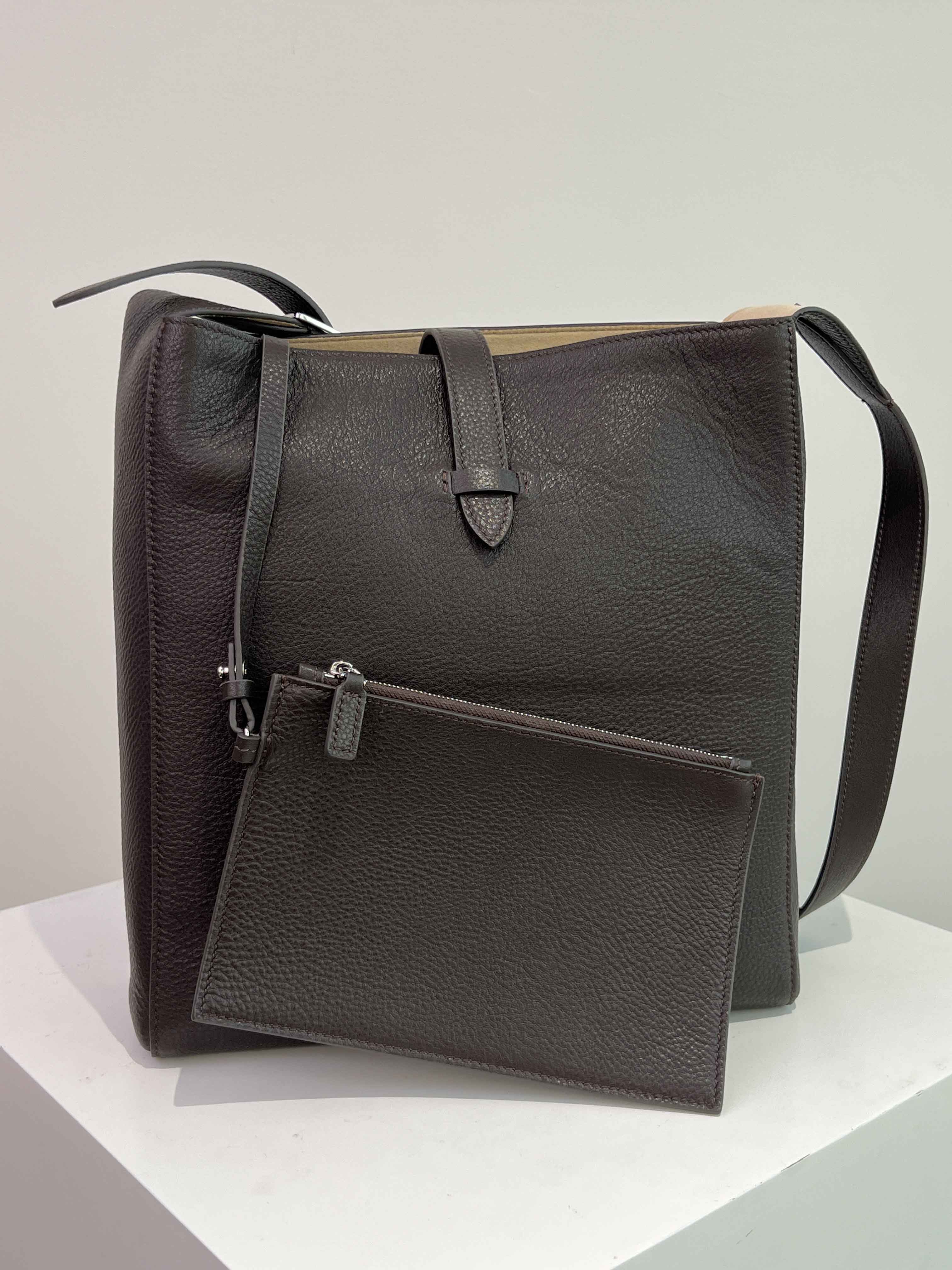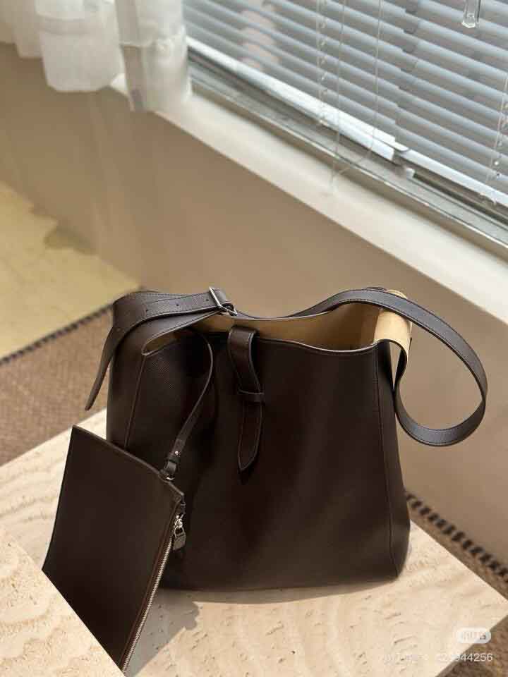 子母袋款式,内里有一个可拆卸的拉链袋,结构简单没有多余的五金点缀