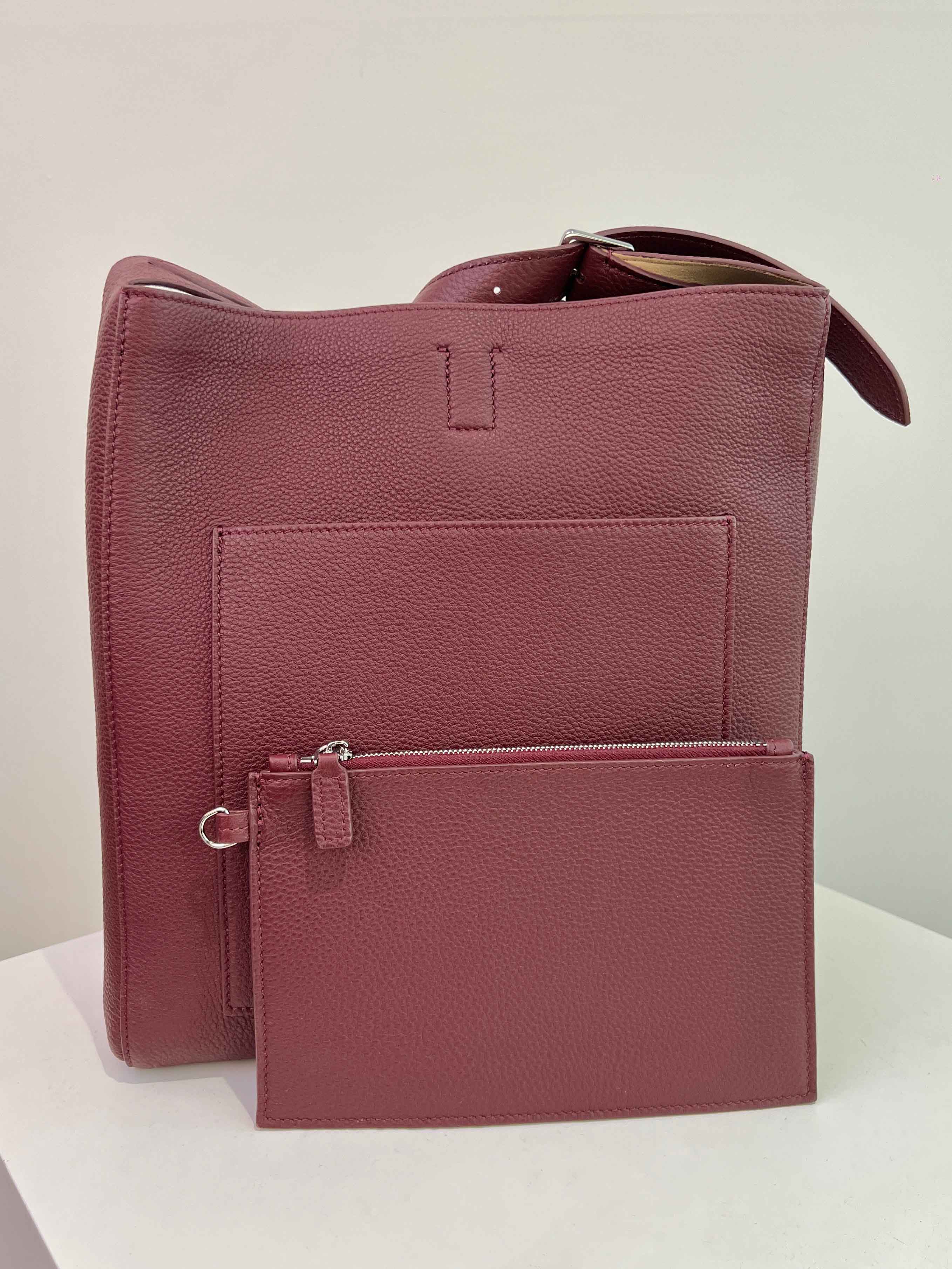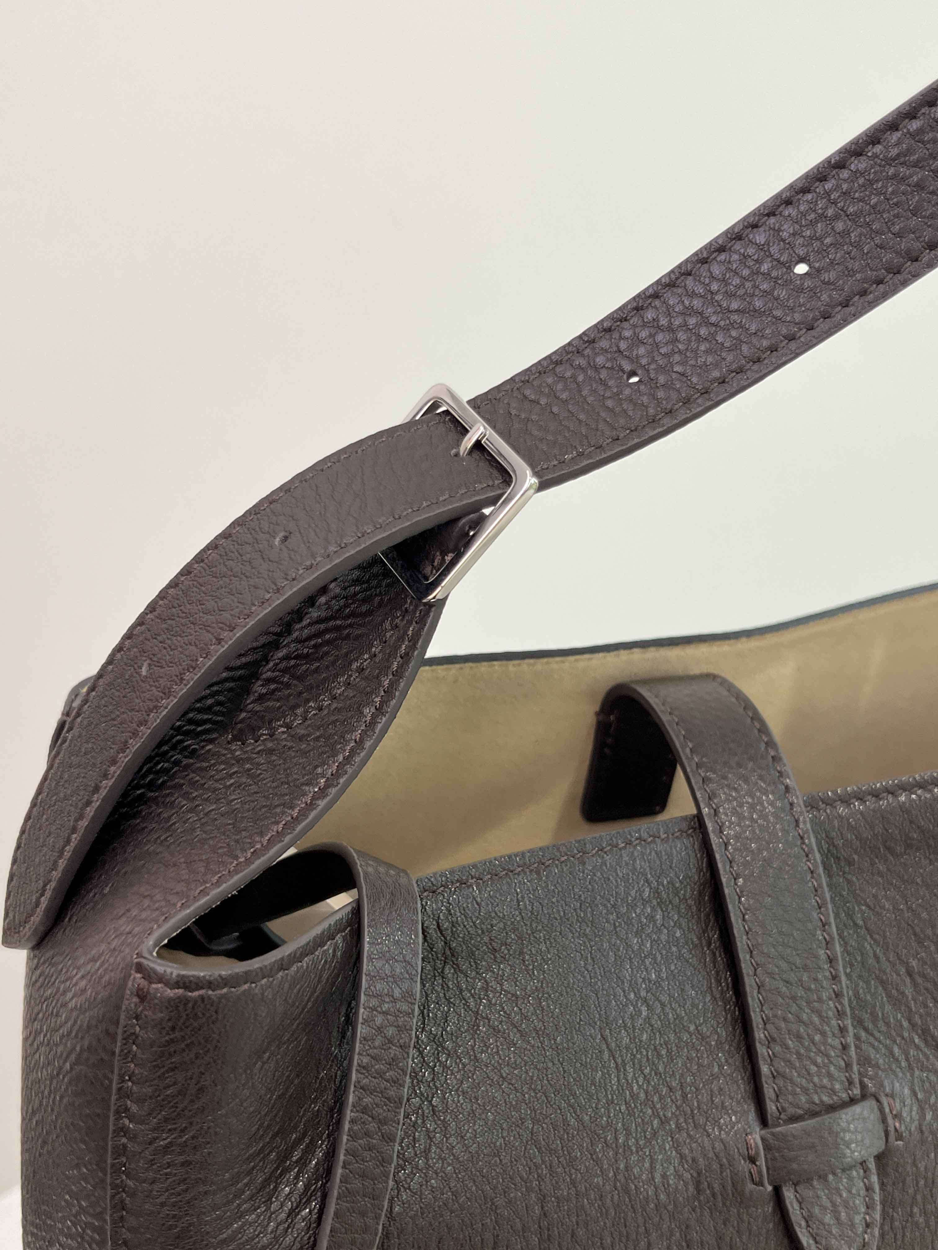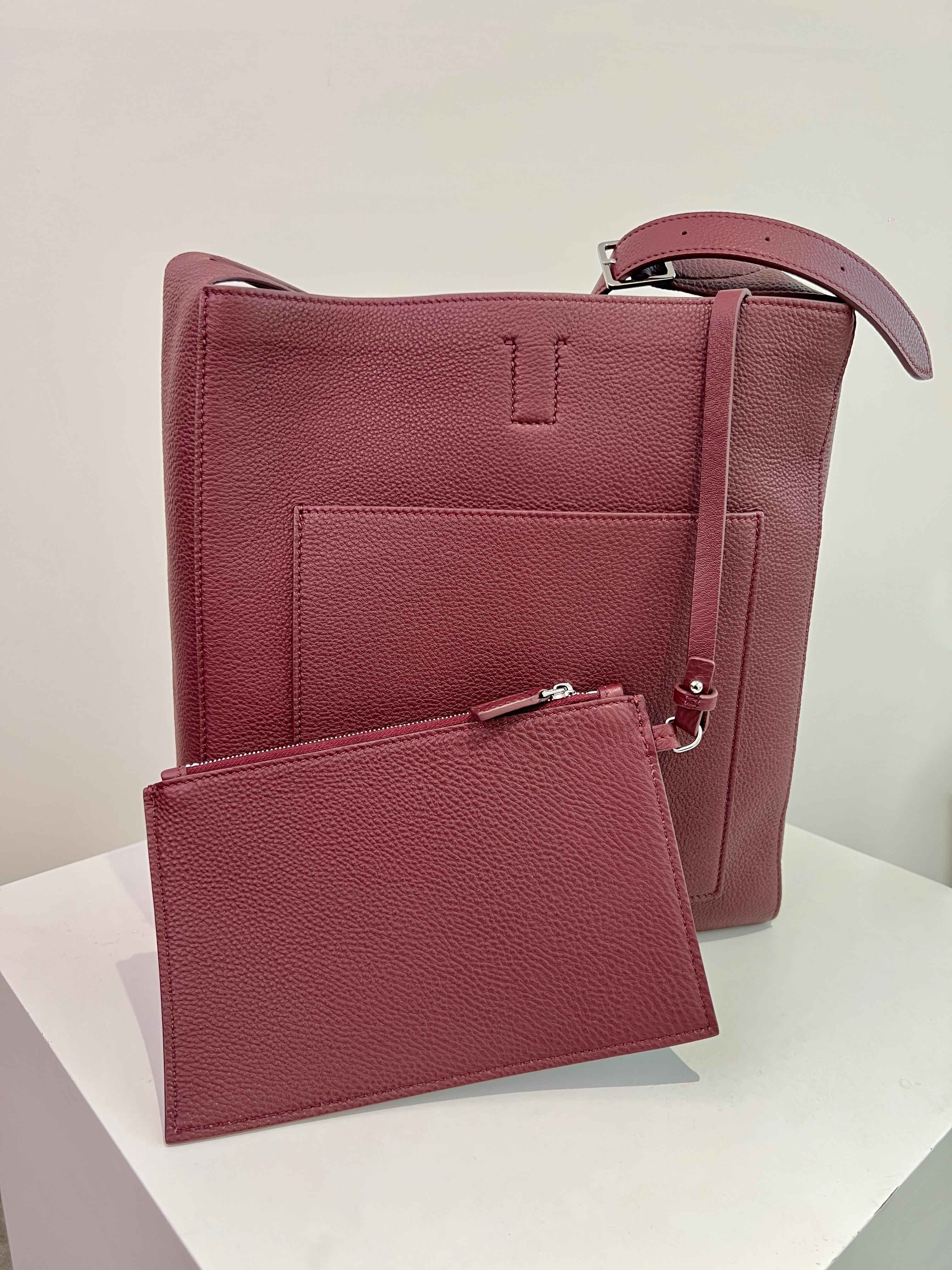 子母袋款式,内里有一个可拆卸的拉链袋,结构简单没有多余的五金点缀