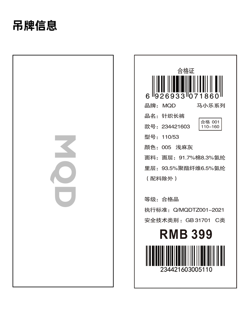 【秒3】【MQD】女童冬季潮酷大口袋伞兵裤型针织长裤
