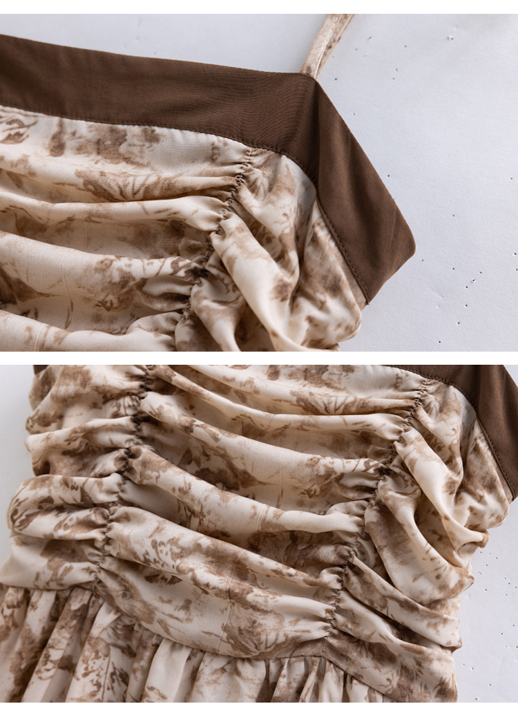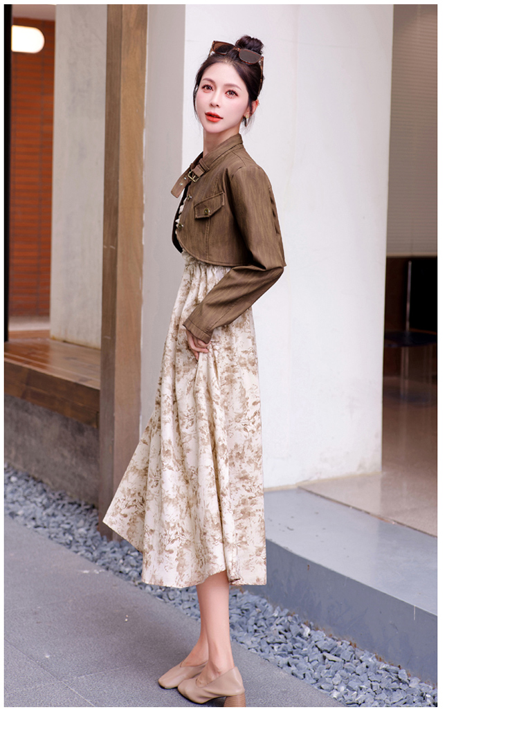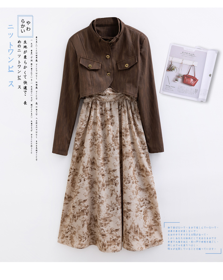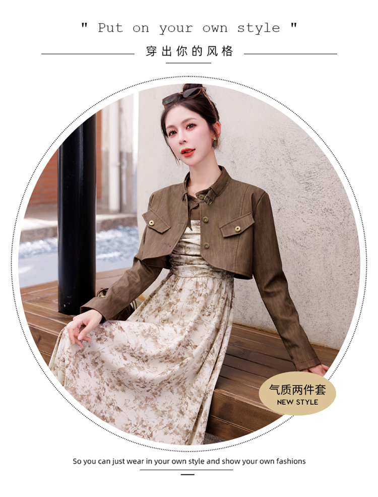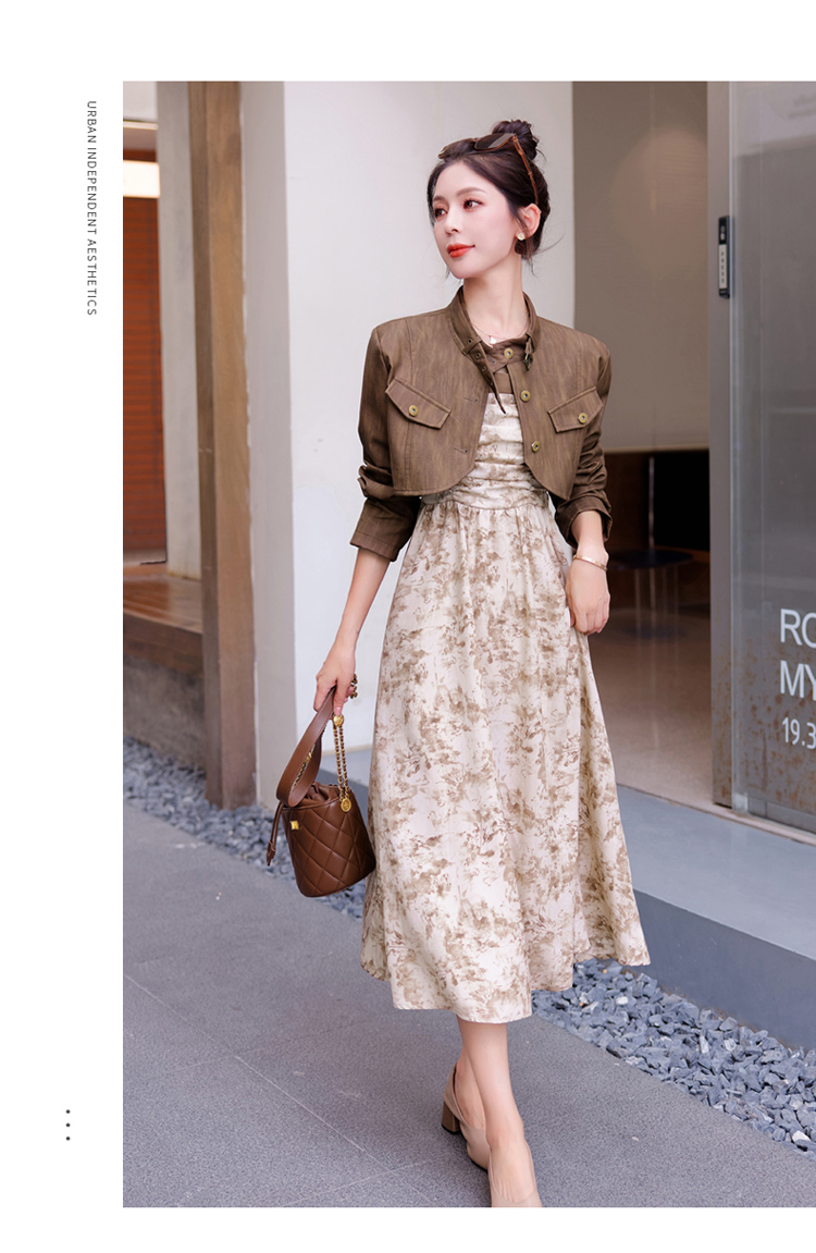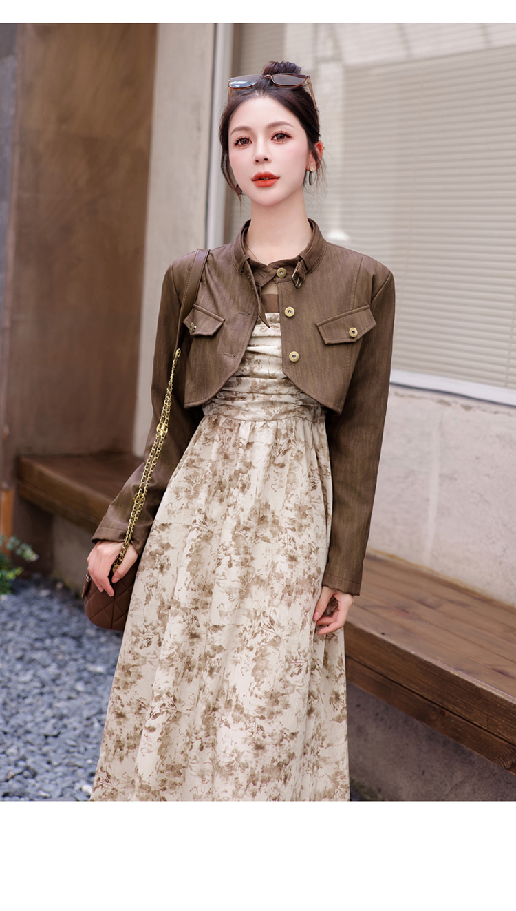 秋季新款,百搭皮衣外套+水墨画吊带连衣裙两件套HR-YJLY8011