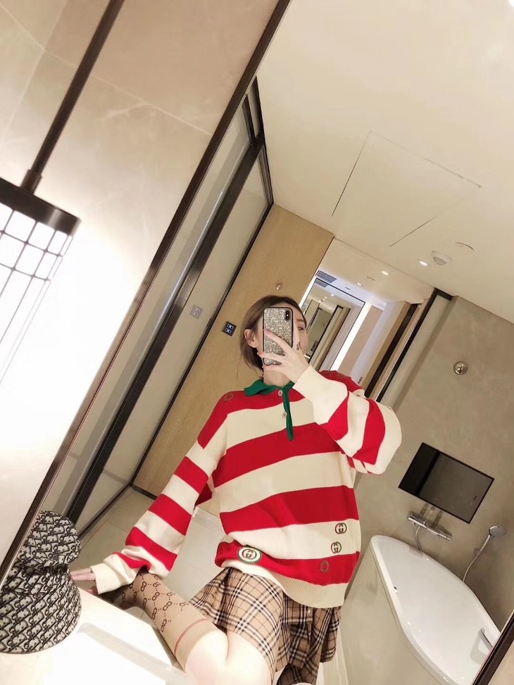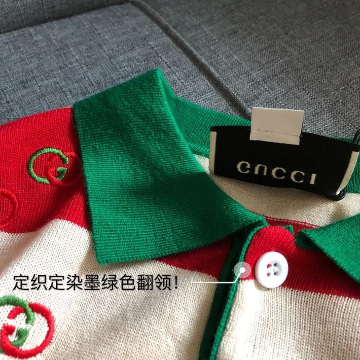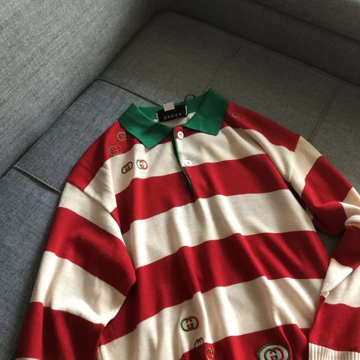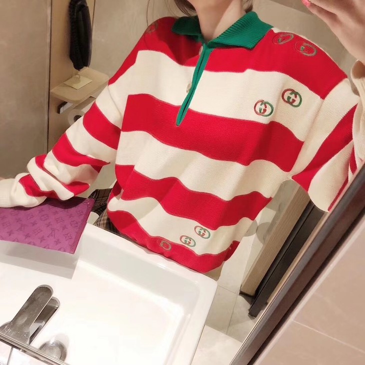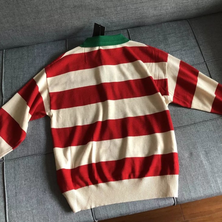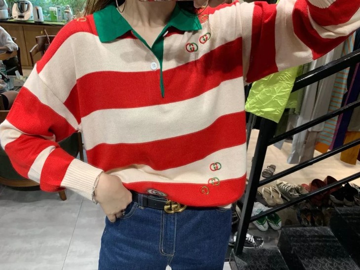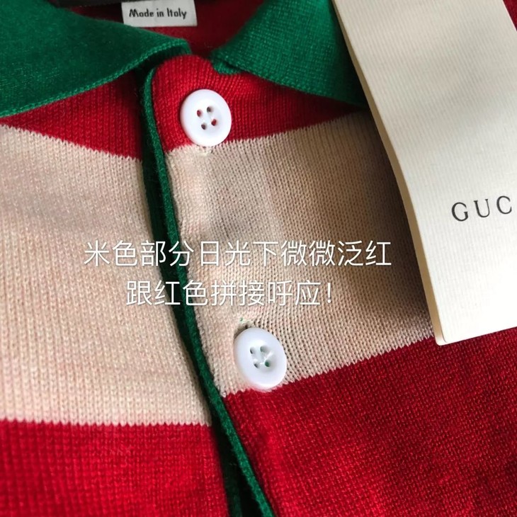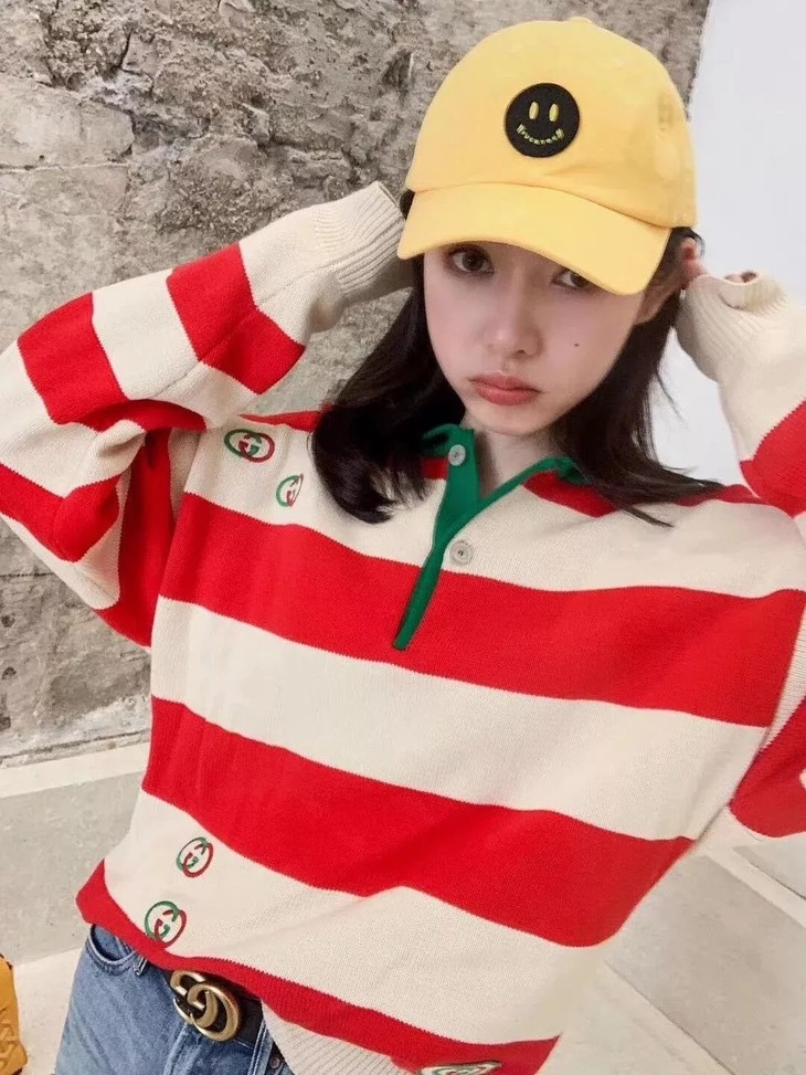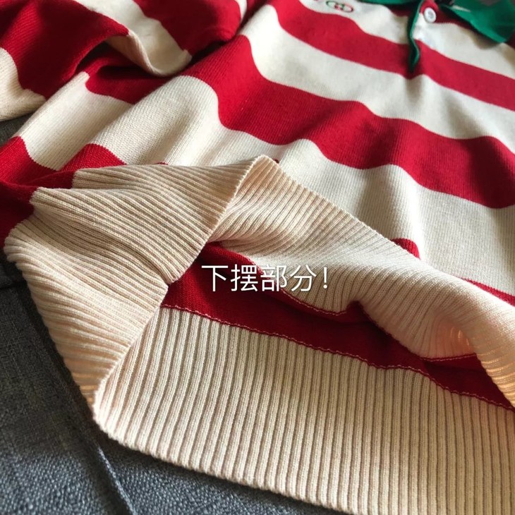 吸睛!宋妍霏机场同款!众多潮人、明星上身!G家撞色红色条纹绿领POLO针织衫毛衣!