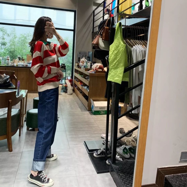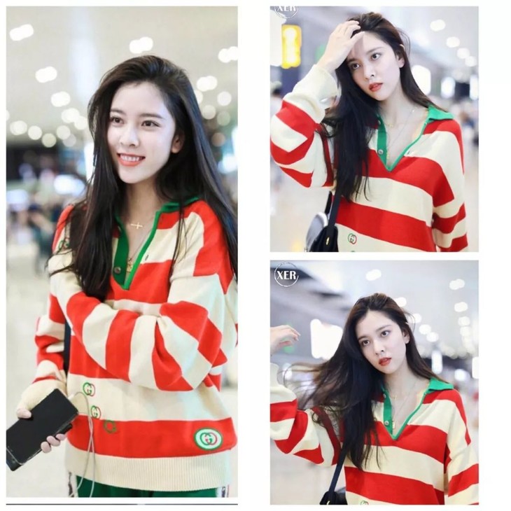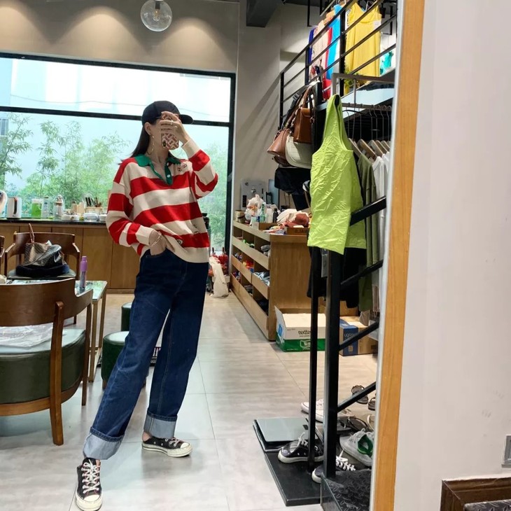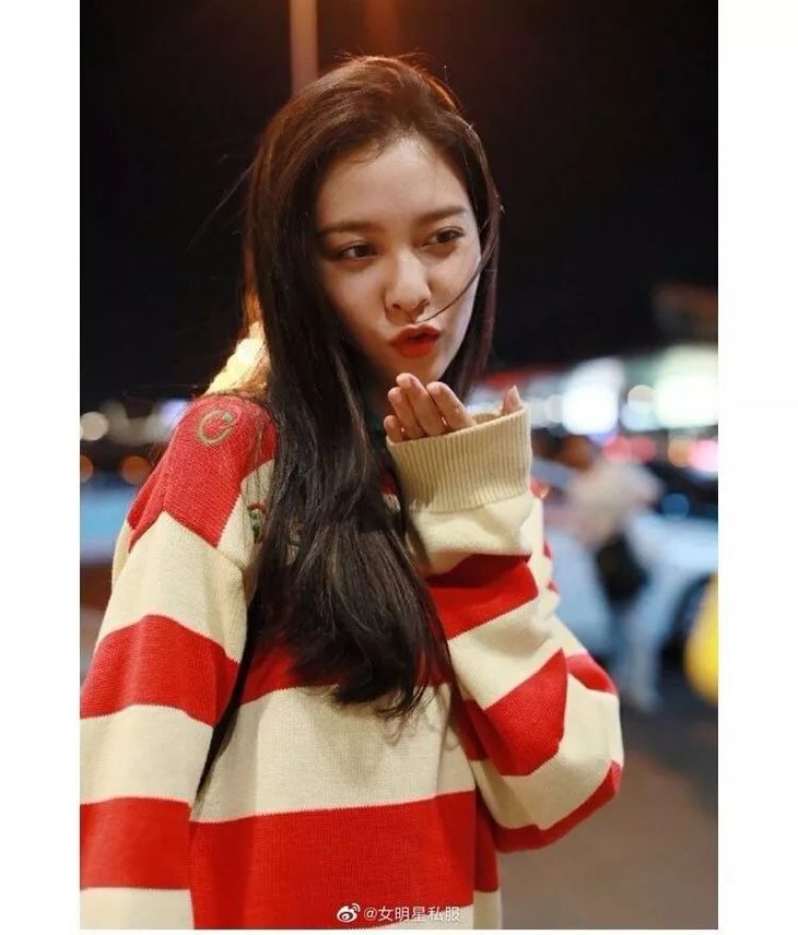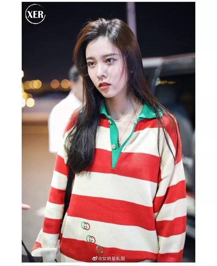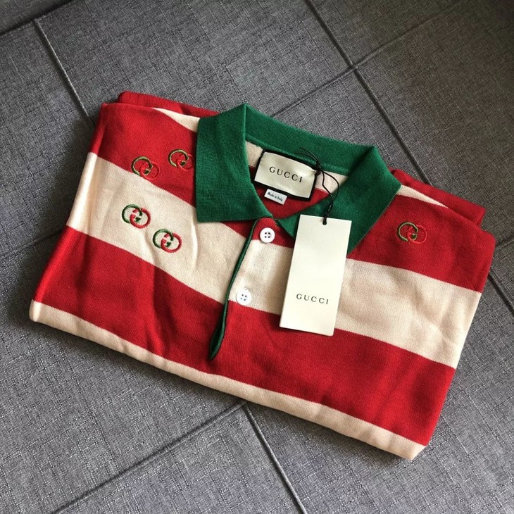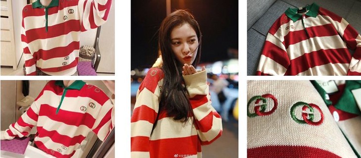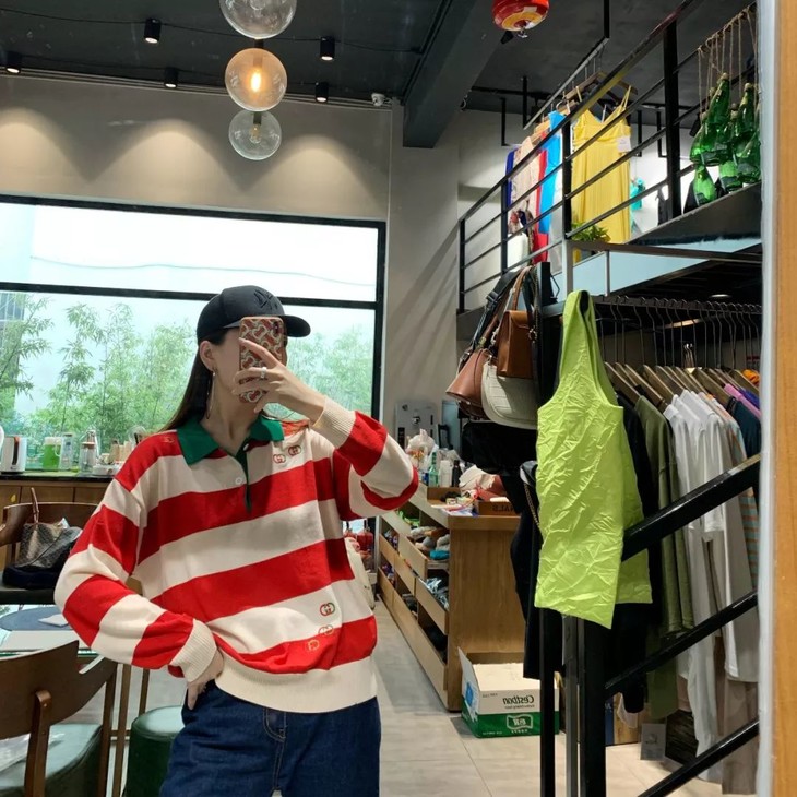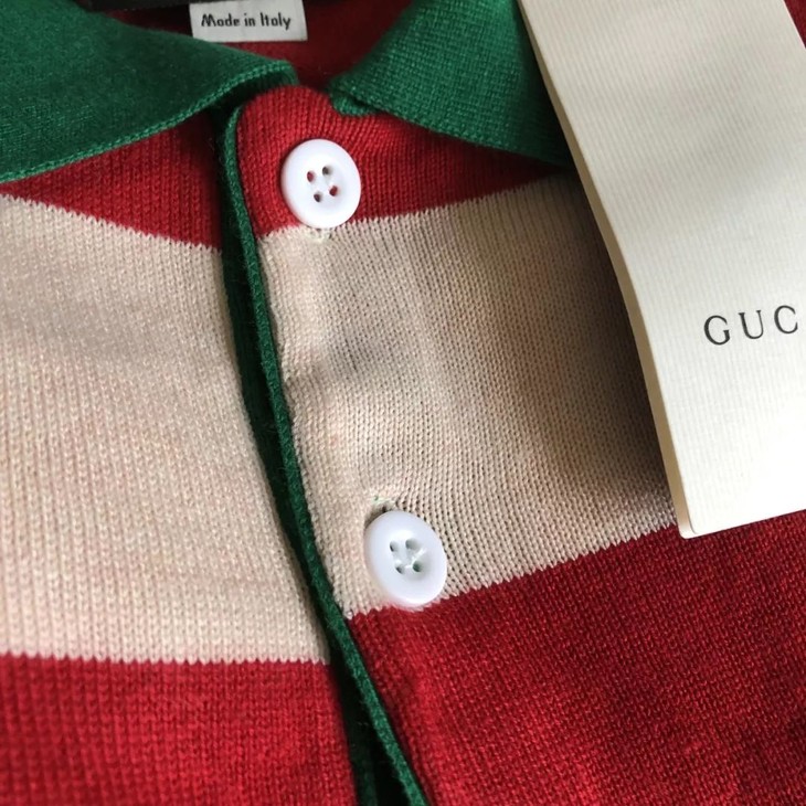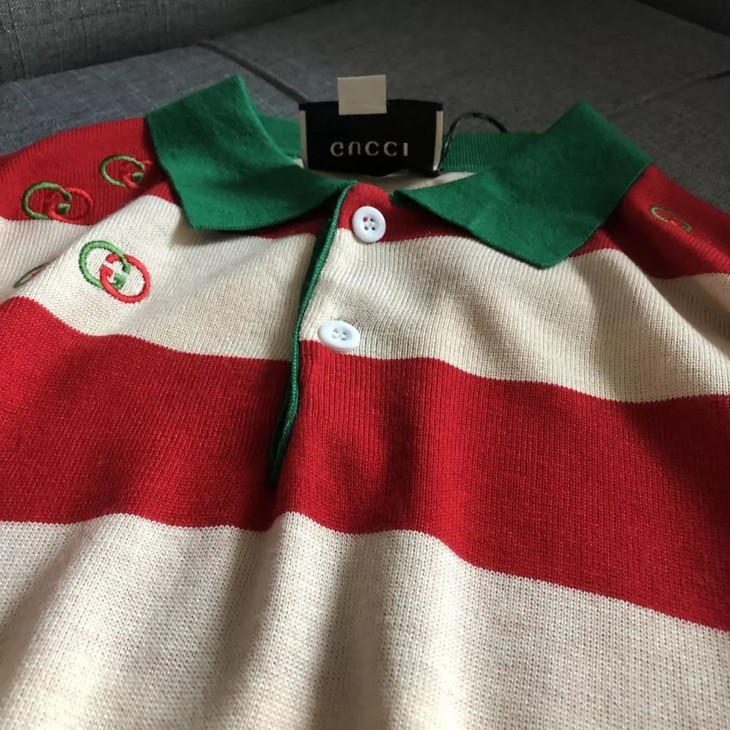 吸睛!宋妍霏机场同款!众多潮人、明星上身!G家撞色红色条纹绿领POLO针织衫毛衣!