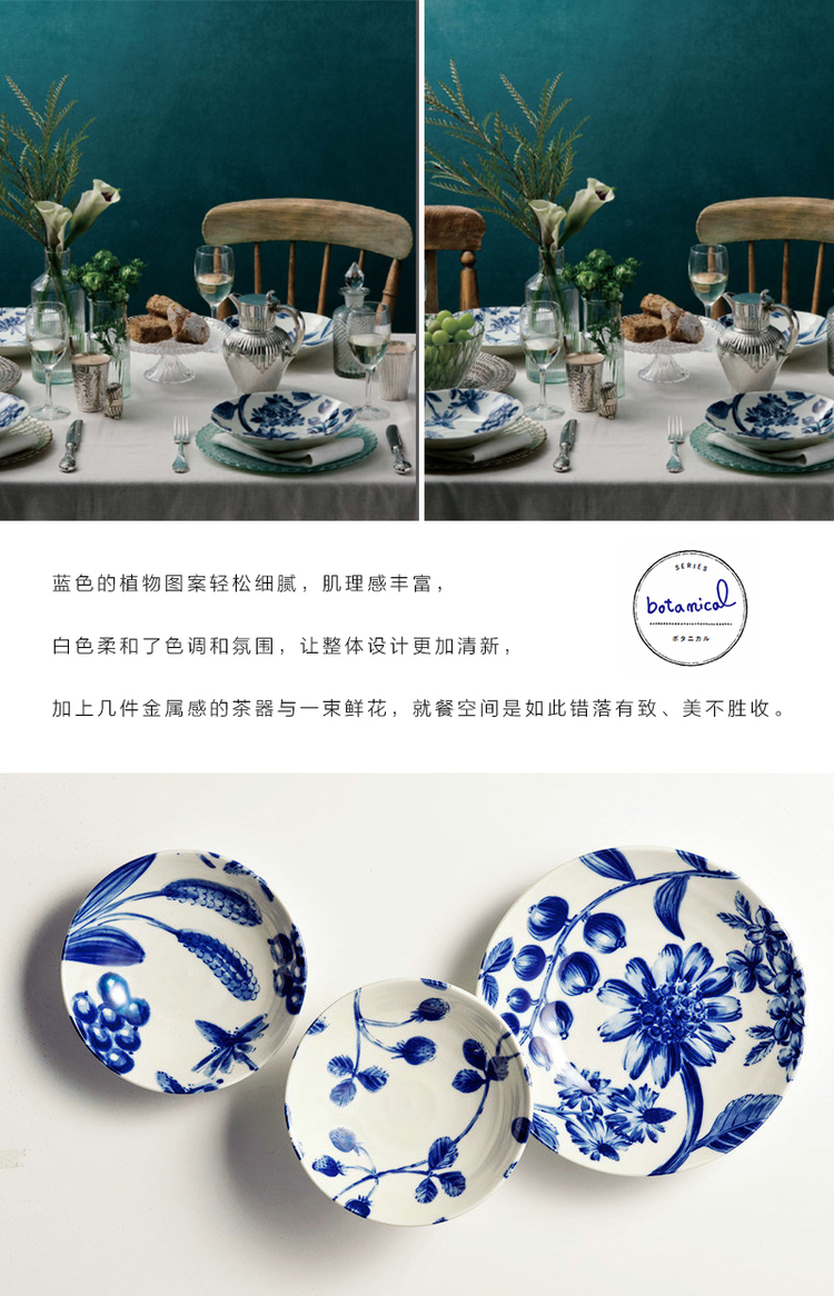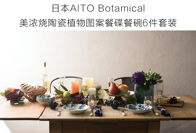 日本原产AITO Botamical美浓烧陶瓷餐盘餐碗碟子 6件套装