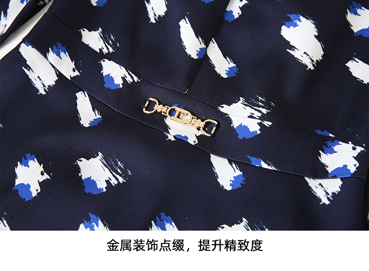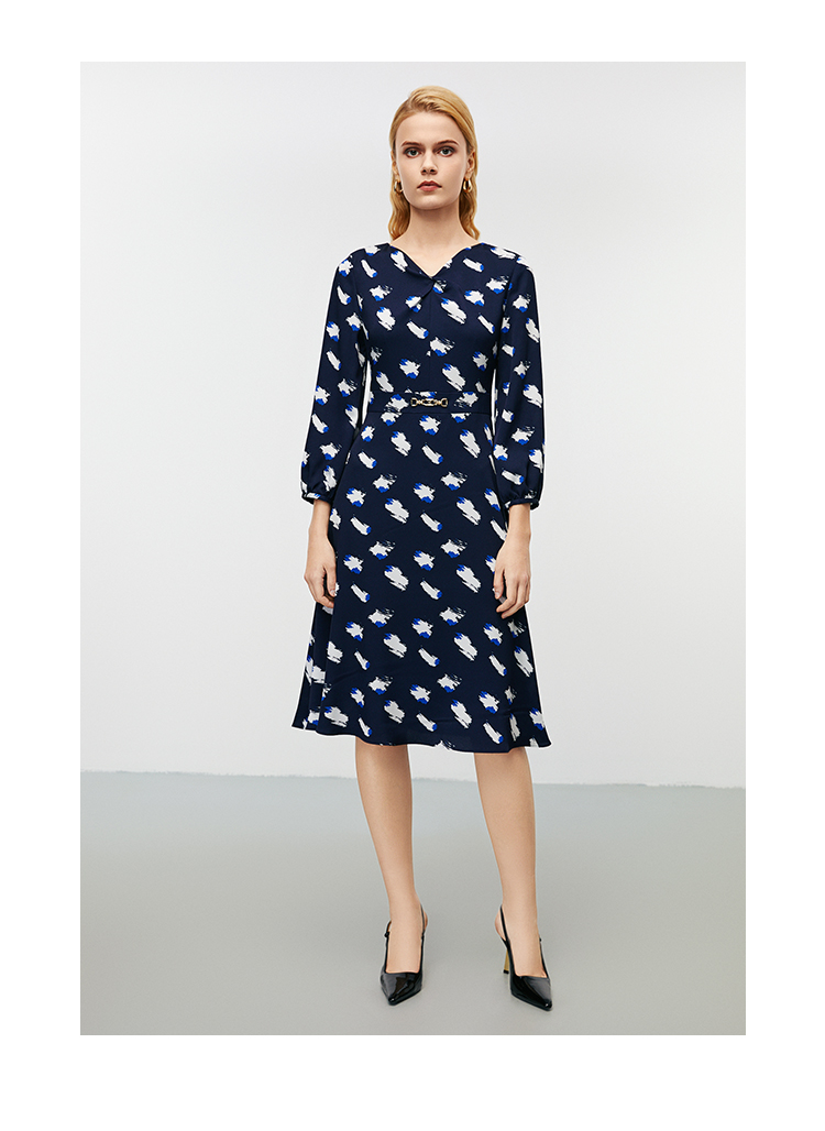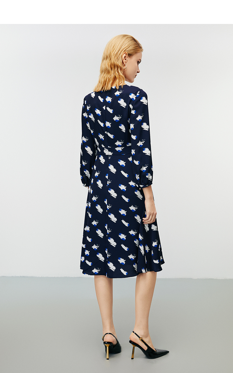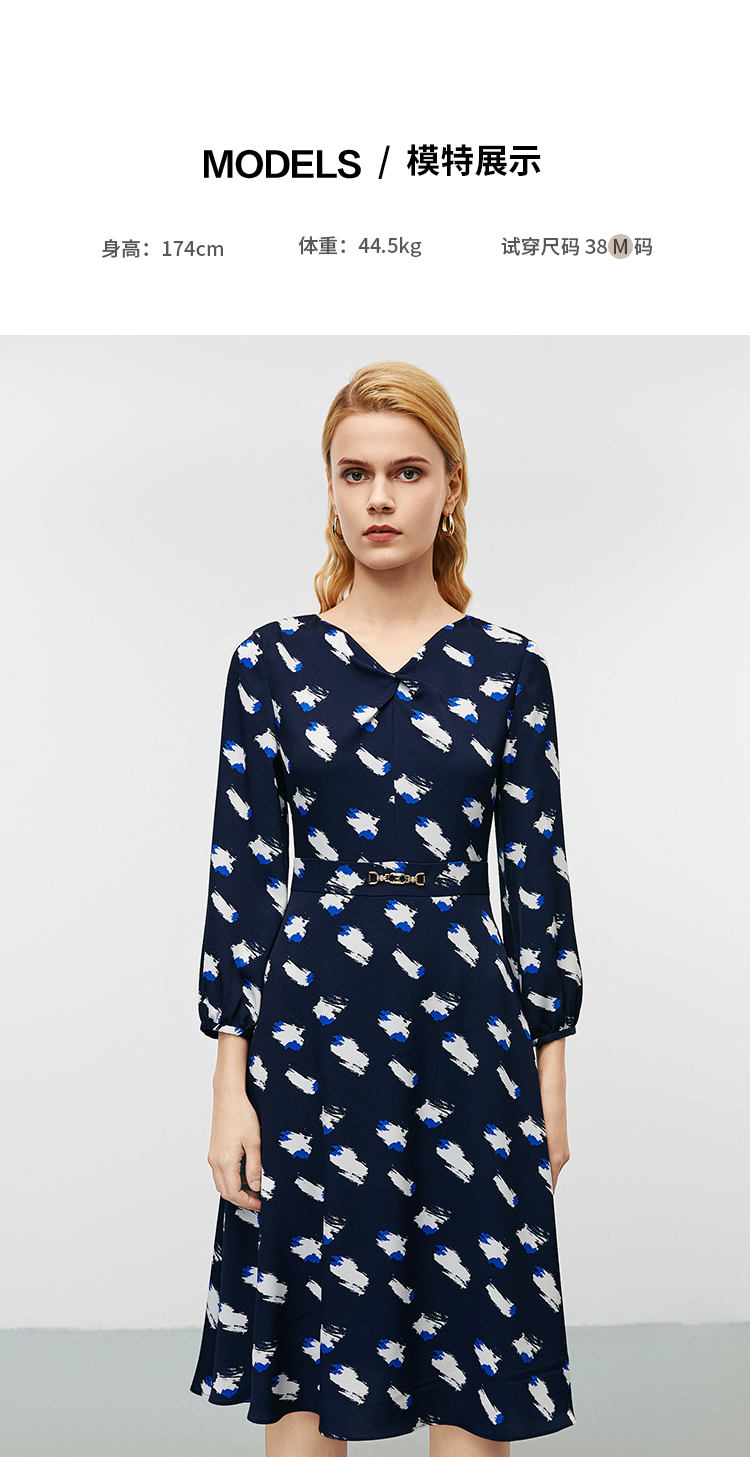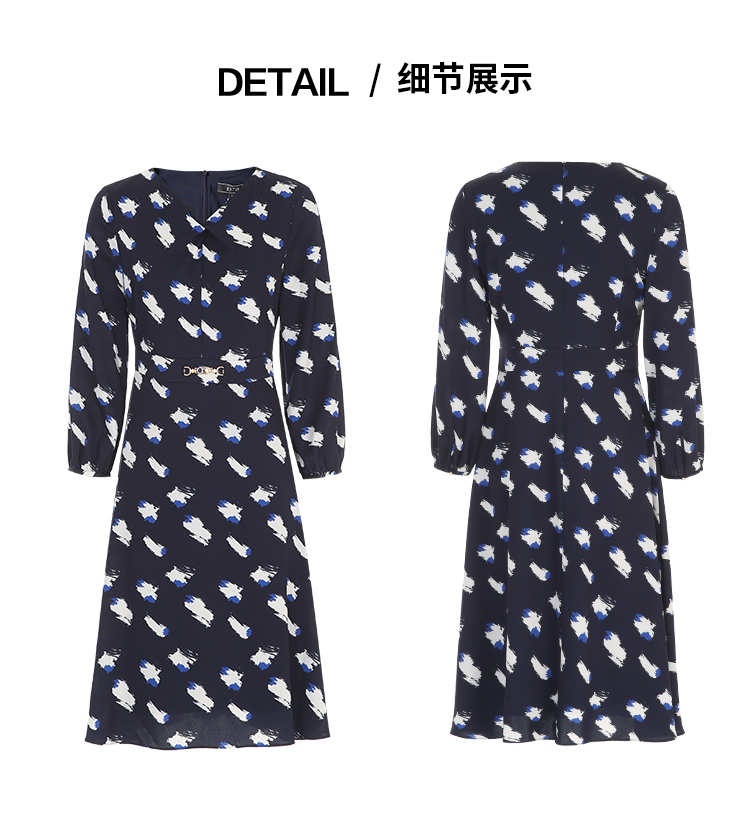 EITIE爱特爱收腰设计V领气质通勤印花连衣裙秋季新款7907629
