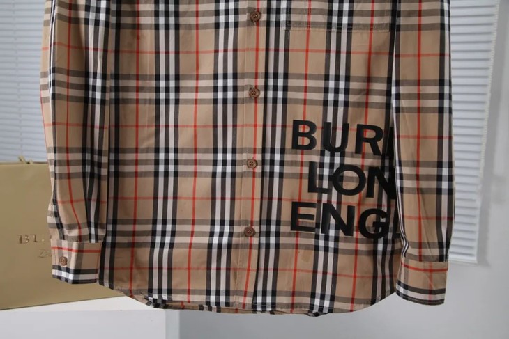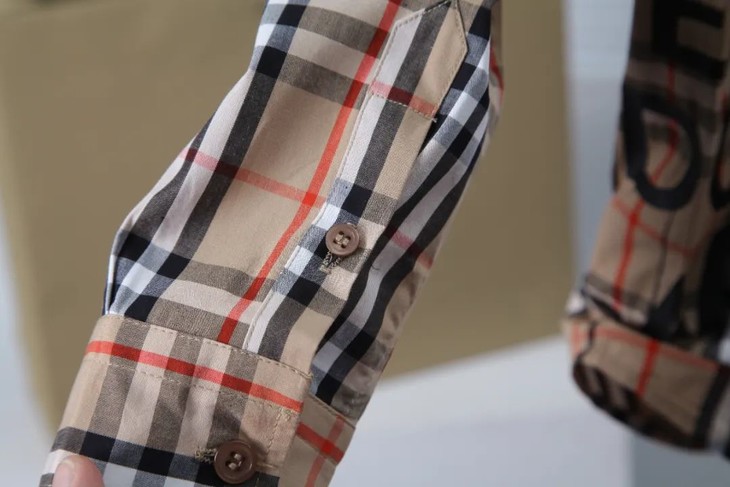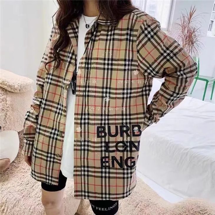 八宝莉商务风棉质格纹宽松长袖衬衫
